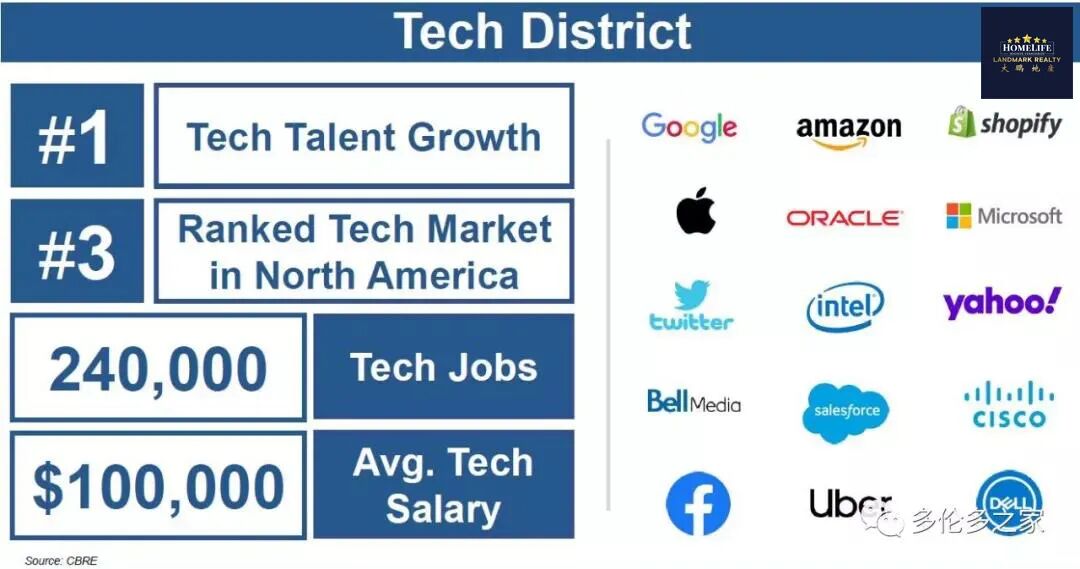 根据全球最大的商业地产服务公司CBRE的权威研究表明,2019年加拿大的多伦多列为北美科技人才增长的第三大城市,领先于华盛顿和纽约。而且多伦多在过去的5年里增加了8万多技术类职位,其中很多在多伦多市中心的科技区。