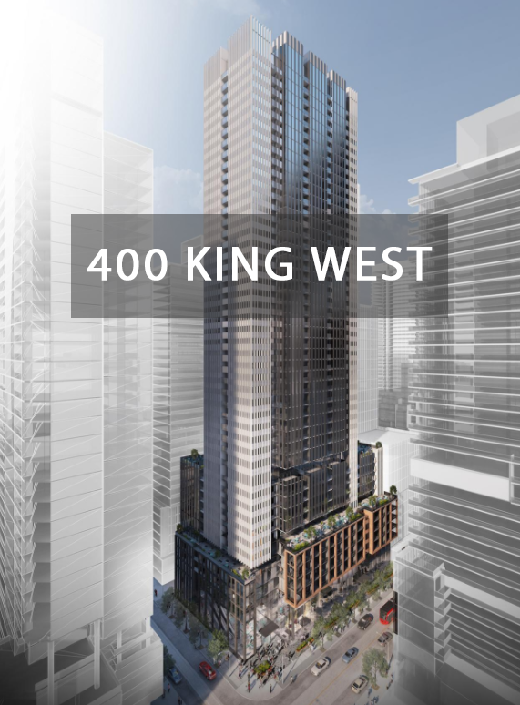 400 King West 位于多伦多市中心5大核心区的中心 - 金融区、科技区、时尚区、娱乐区和金融南区。周围国际大牌公司林立 - 谷歌、微软、亚马逊、雅虎、多伦多证券交易所、Cisco、wework等等。