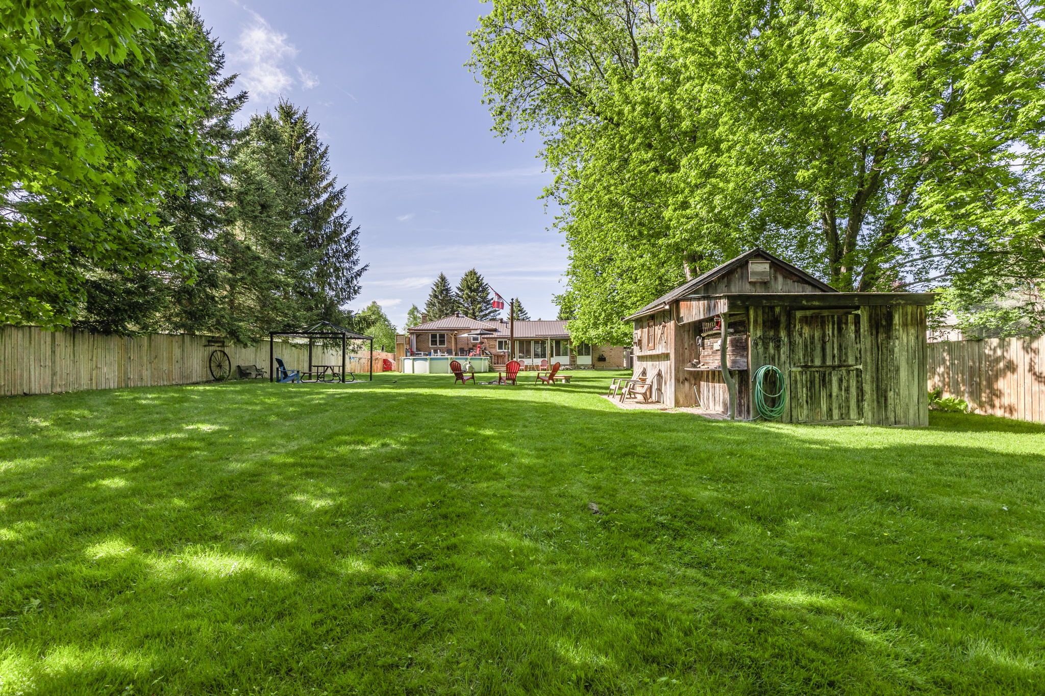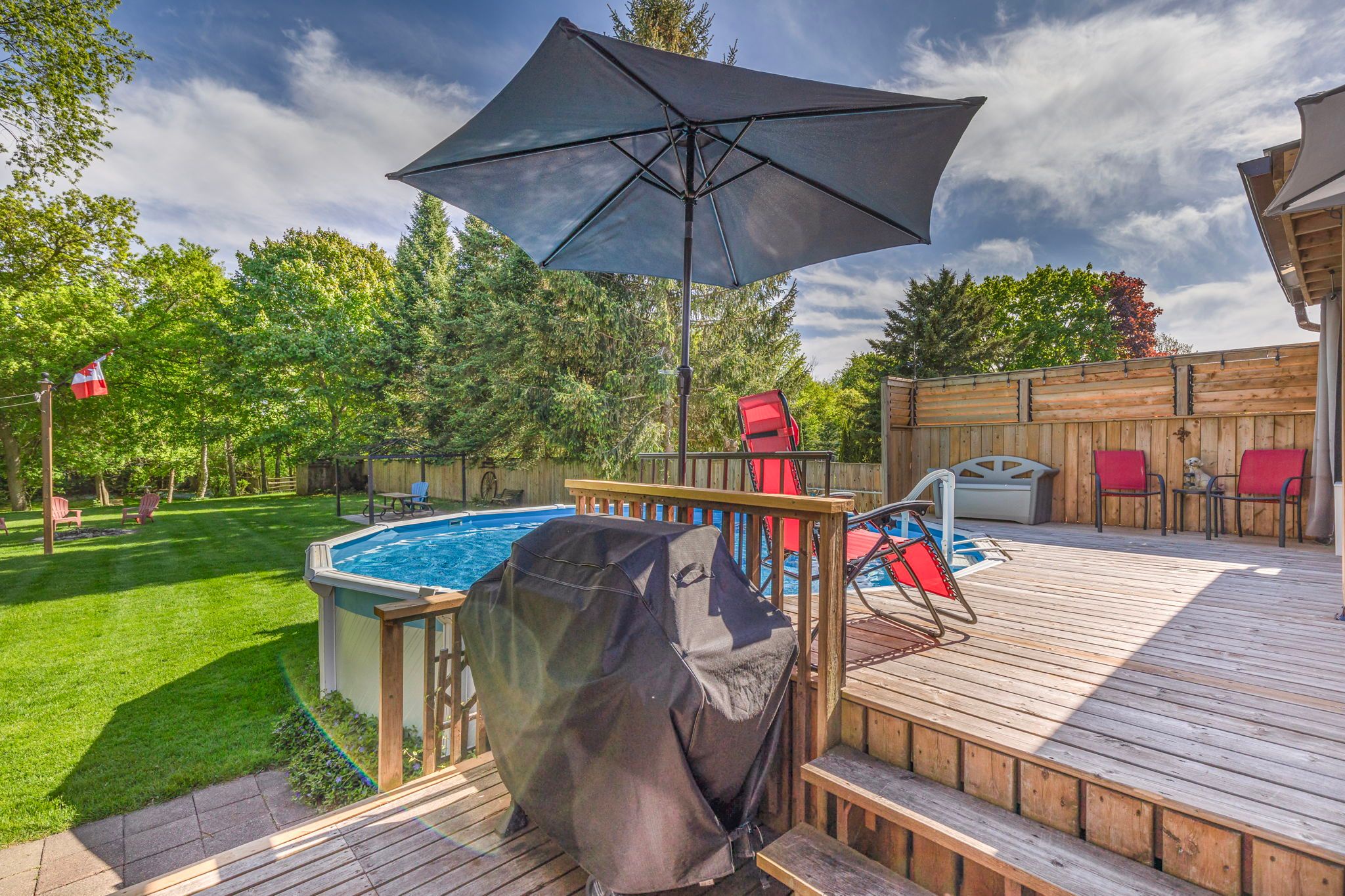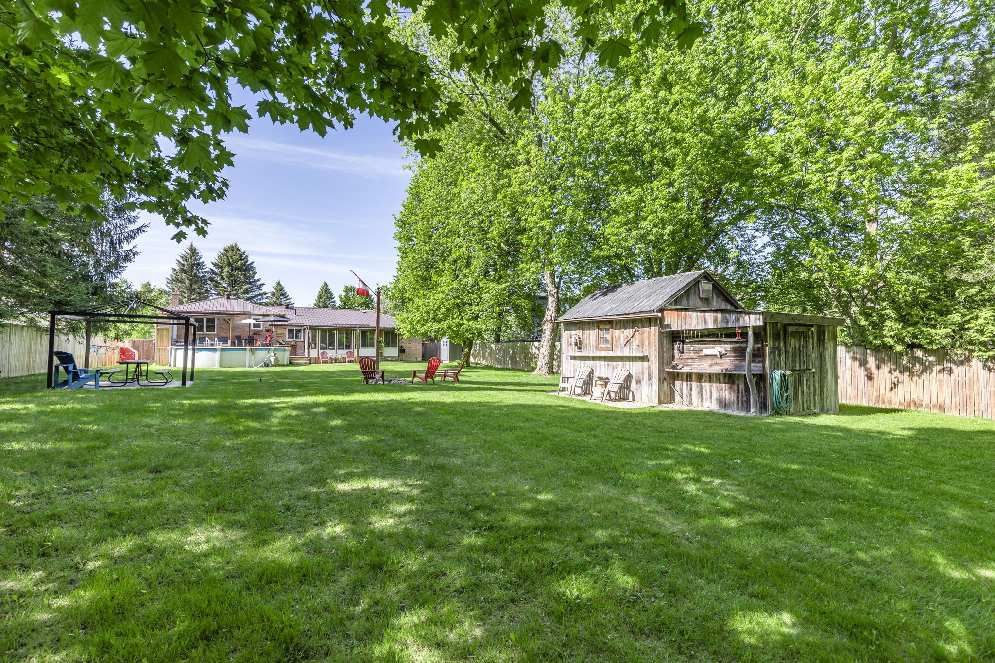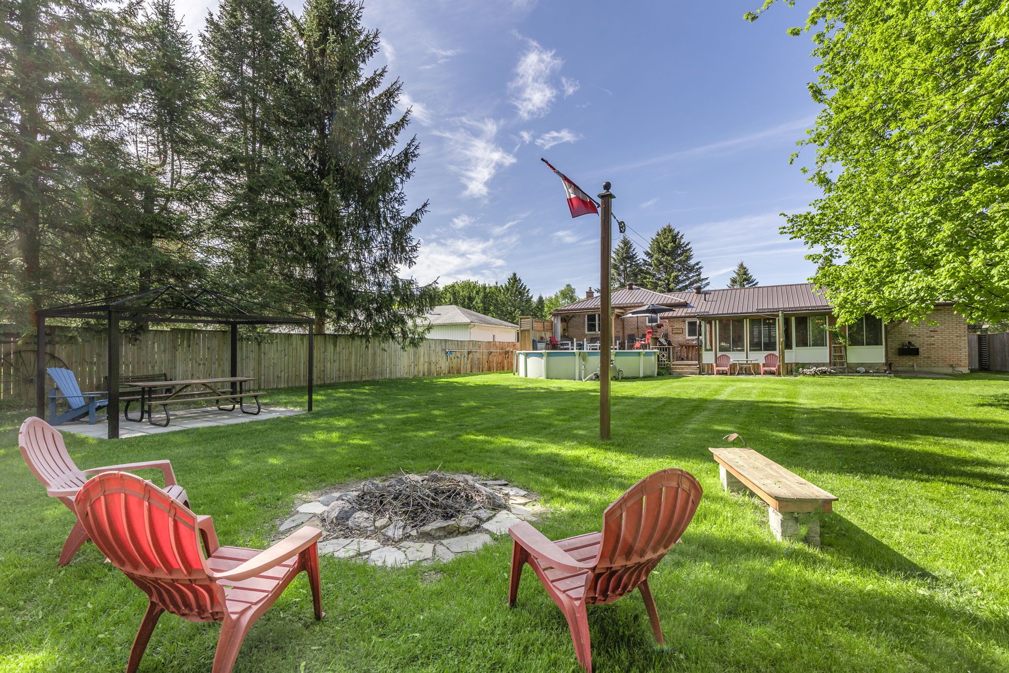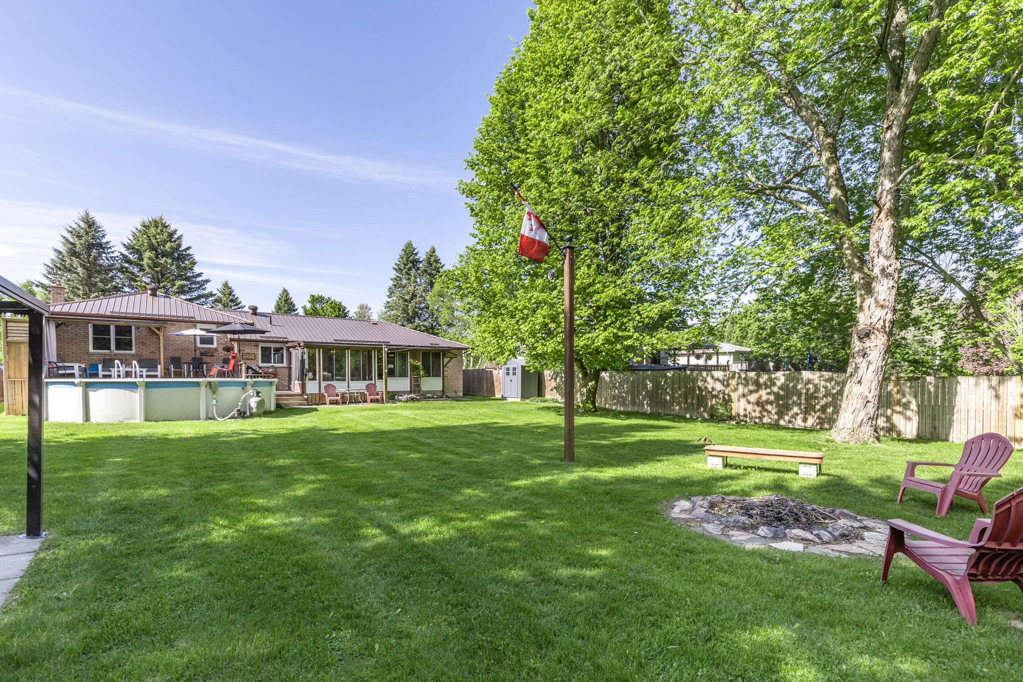 If you are looking for a backyard retreat where your home feels like you're away for the weekend, then this is it! Make this 3 bedroom sidesplit your Monday-Friday home & your Weekend get away all in one. This 97'x356' private, fully fenced & treed lot offers an above ground pool & deck, large mature trees, a stream running through the back of the lot, gazebo for shade, a clothes line; a firepit to sit & enjoy in the evenings. This renovated house offers hickory floors through the main & upper levels. Open concept is great for having guests with the living rm & modern kitchen opened up & a w/out to the sunroom, more living space with an electric fireplace & w/outs to this amazing backyard. 3 bdrms with the Primary offering a 2 pc ensuite & an amazing view to wake up to every morning. A few steps down the family room is rustic & spacious with a gas fireplace & closets for storage, great for the growing family. Laundry room has 2 pc washroom which can be converted to a 3 pc. Metal roof in 2014; double car heated garage with insulated doors, a sink, storage & w/out to the sunroom. Lots of parking for 8 cars, quiet part of town that feels like you're in the country. If you want a house & a weekend retreat all in one, this is worth the look!