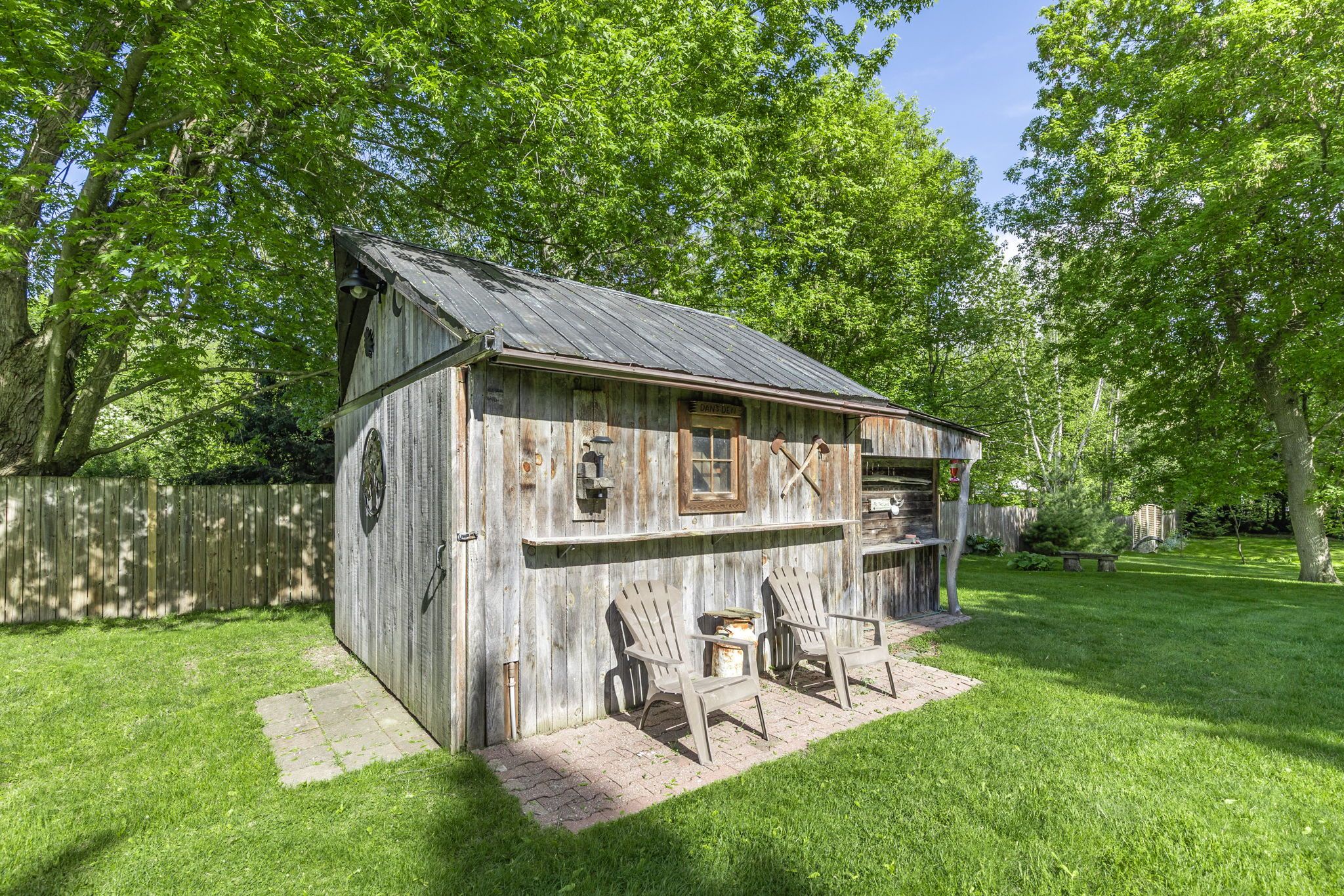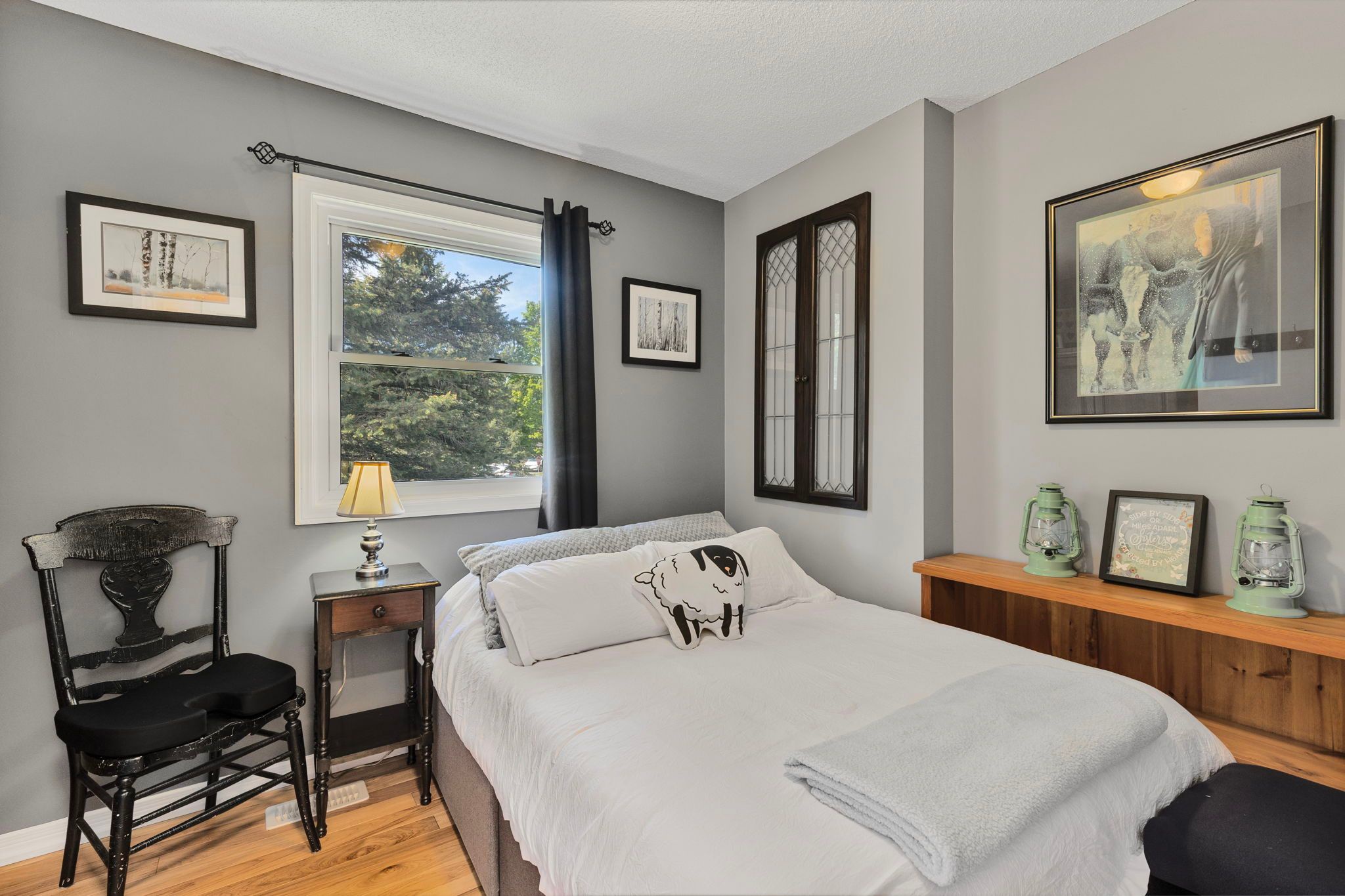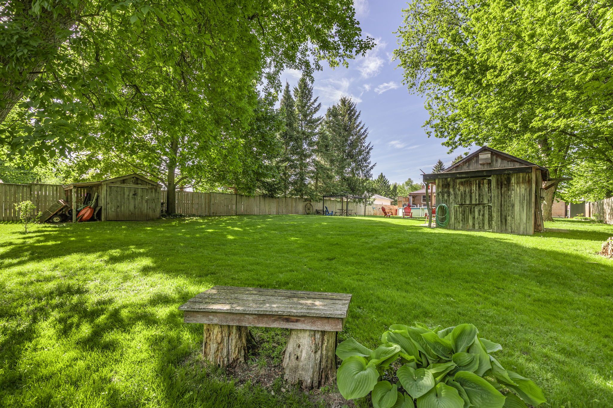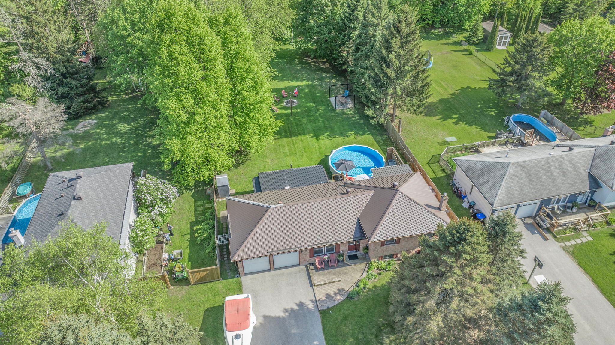 If you are looking for a backyard retreat where your home feels like you're away for the weekend, then this is it! Make this 3 bedroom sidesplit your Monday-Friday home & your Weekend get away all in one. This 97'x356' private, fully fenced & treed lot offers an above ground pool & deck, large mature trees, a stream running through the back of the lot, gazebo for shade, a clothes line; a firepit to sit & enjoy in the evenings. This renovated house offers hickory floors through the main & upper levels. Open concept is great for having guests with the living rm & modern kitchen opened up & a w/out to the sunroom, more living space with an electric fireplace & w/outs to this amazing backyard. 3 bdrms with the Primary offering a 2 pc ensuite & an amazing view to wake up to every morning. A few steps down the family room is rustic & spacious with a gas fireplace & closets for storage, great for the growing family. Laundry room has 2 pc washroom which can be converted to a 3 pc. Metal roof in 2014; double car heated garage with insulated doors, a sink, storage & w/out to the sunroom. Lots of parking for 8 cars, quiet part of town that feels like you're in the country. If you want a house & a weekend retreat all in one, this is worth the look!