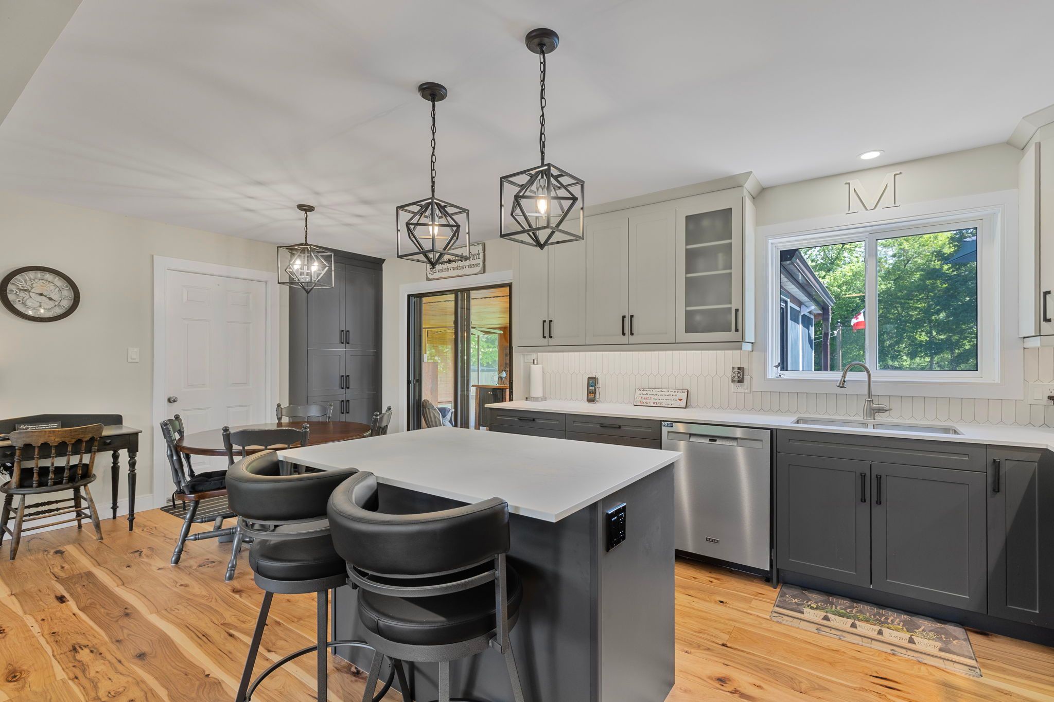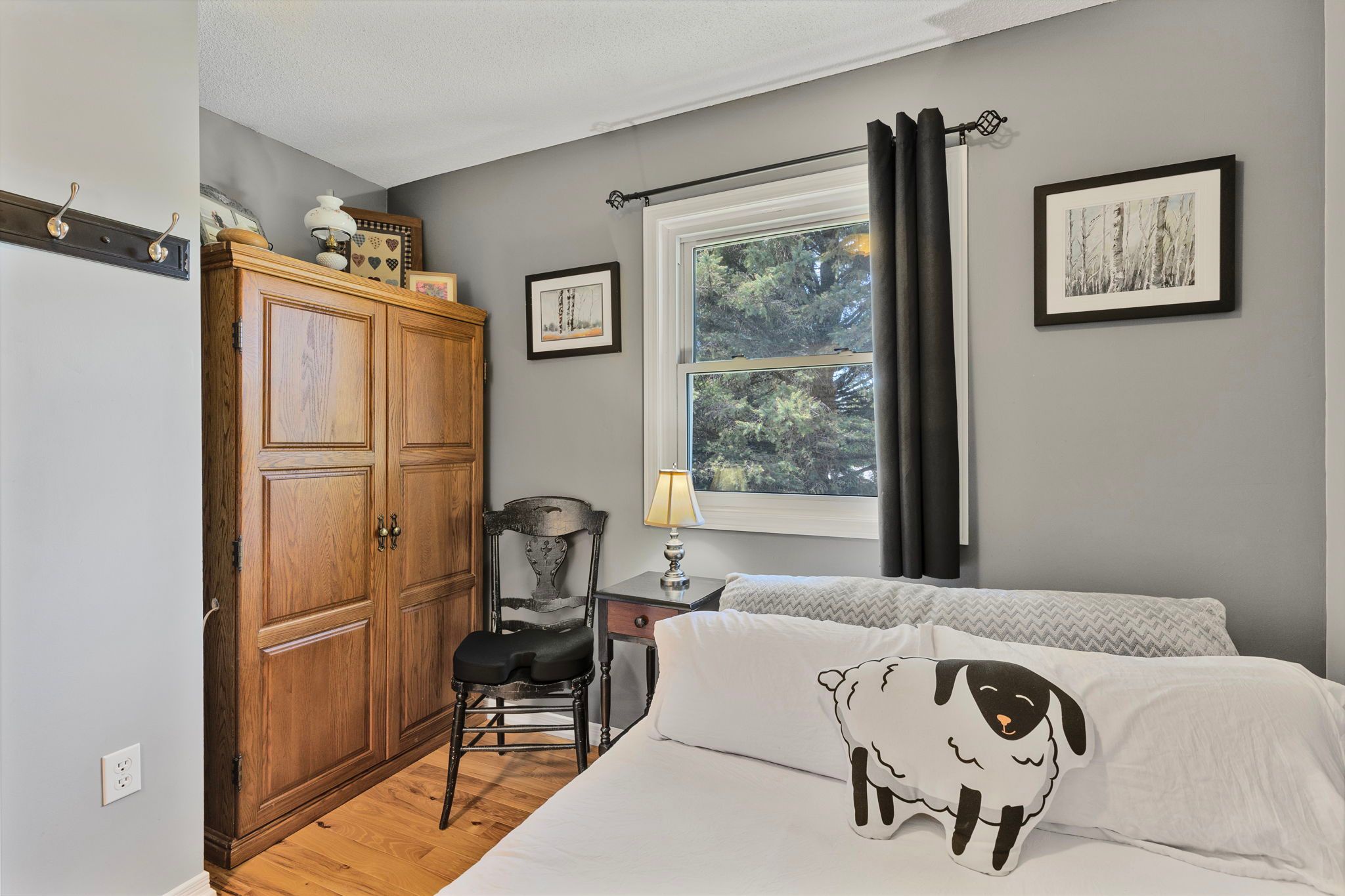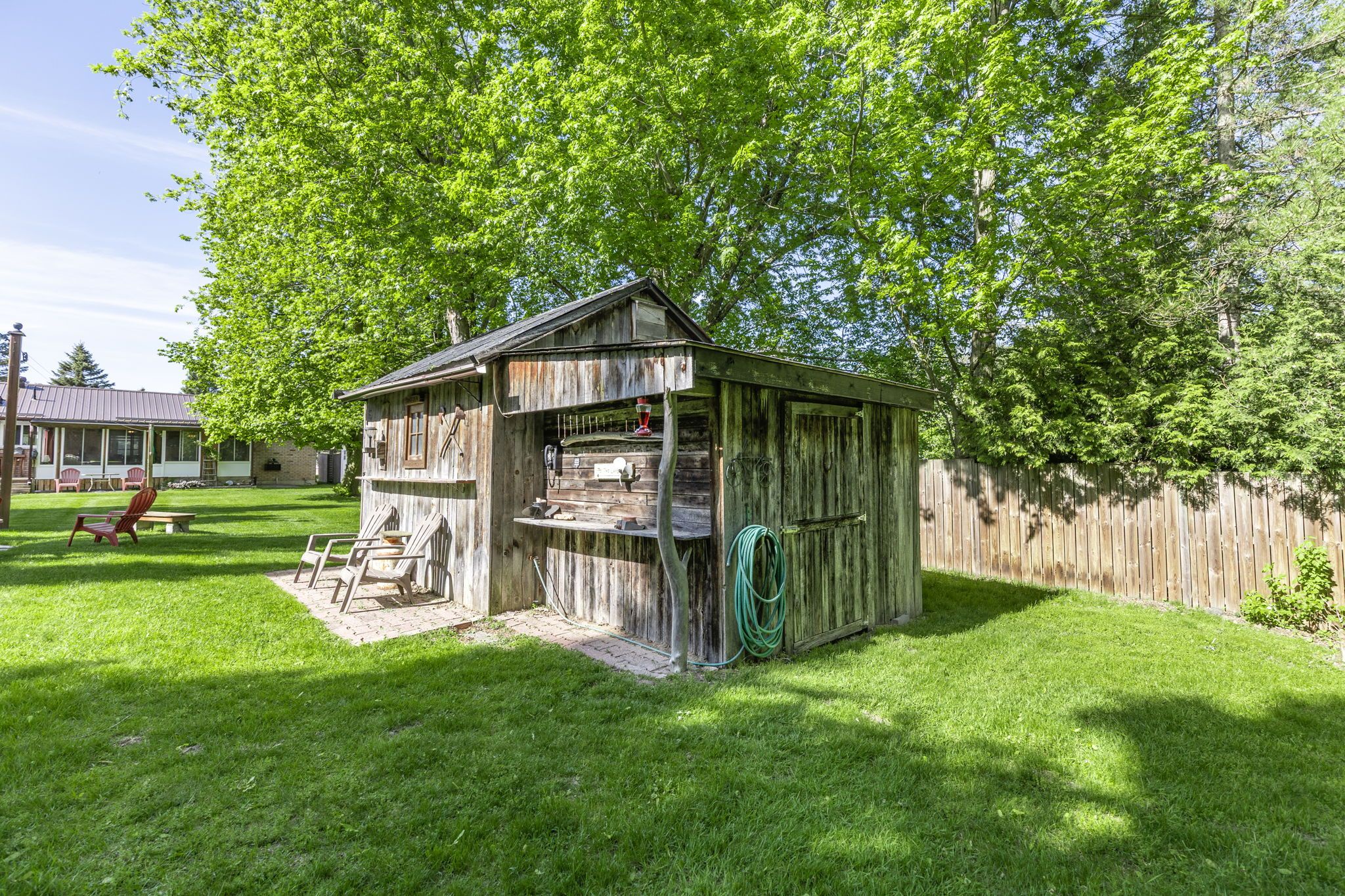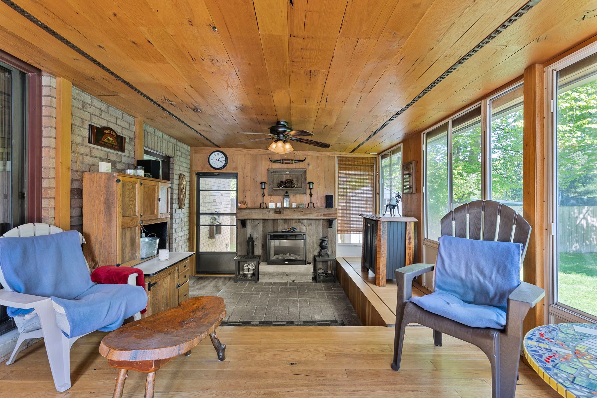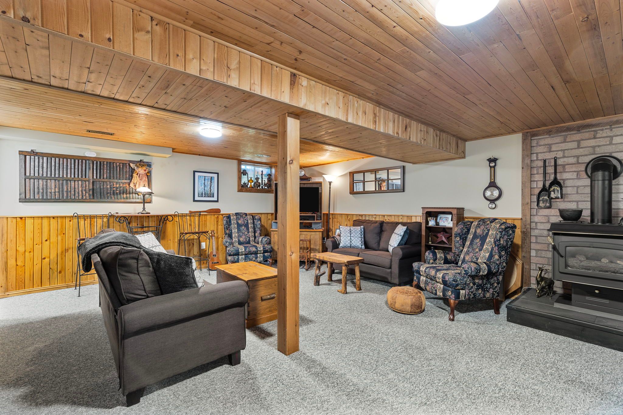 If you are looking for a backyard retreat where your home feels like you're away for the weekend, then this is it! Make this 3 bedroom sidesplit your Monday-Friday home & your Weekend get away all in one. This 97'x356' private, fully fenced & treed lot offers an above ground pool & deck, large mature trees, a stream running through the back of the lot, gazebo for shade, a clothes line; a firepit to sit & enjoy in the evenings. This renovated house offers hickory floors through the main & upper levels. Open concept is great for having guests with the living rm & modern kitchen opened up & a w/out to the sunroom, more living space with an electric fireplace & w/outs to this amazing backyard. 3 bdrms with the Primary offering a 2 pc ensuite & an amazing view to wake up to every morning. A few steps down the family room is rustic & spacious with a gas fireplace & closets for storage, great for the growing family. Laundry room has 2 pc washroom which can be converted to a 3 pc. Metal roof in 2014; double car heated garage with insulated doors, a sink, storage & w/out to the sunroom. Lots of parking for 8 cars, quiet part of town that feels like you're in the country. If you want a house & a weekend retreat all in one, this is worth the look!