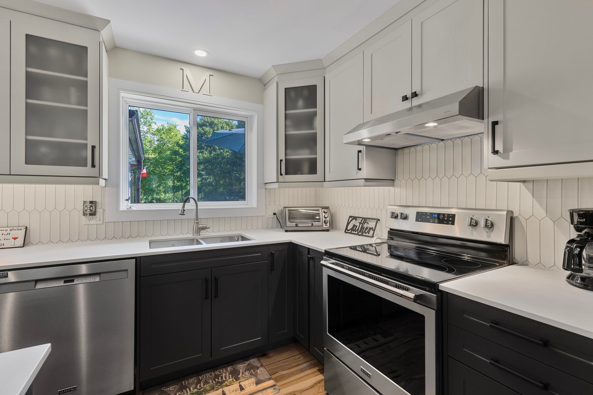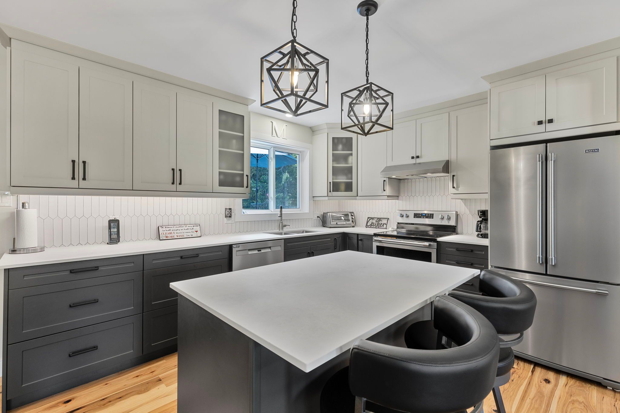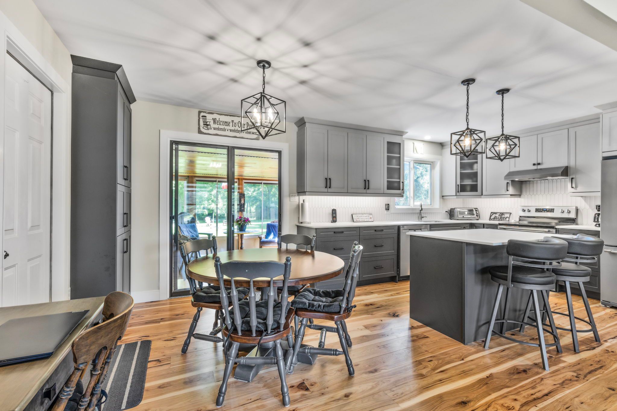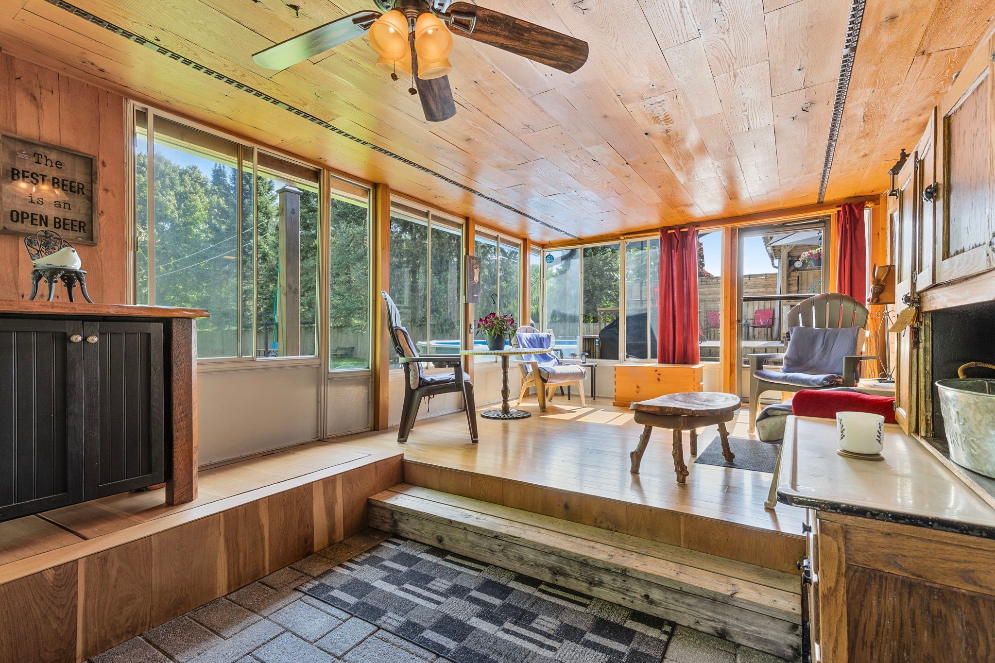 If you are looking for a backyard retreat where your home feels like you're away for the weekend, then this is it! Make this 3 bedroom sidesplit your Monday-Friday home & your Weekend get away all in one. This 97'x356' private, fully fenced & treed lot offers an above ground pool & deck, large mature trees, a stream running through the back of the lot, gazebo for shade, a clothes line; a firepit to sit & enjoy in the evenings. This renovated house offers hickory floors through the main & upper levels. Open concept is great for having guests with the living rm & modern kitchen opened up & a w/out to the sunroom, more living space with an electric fireplace & w/outs to this amazing backyard. 3 bdrms with the Primary offering a 2 pc ensuite & an amazing view to wake up to every morning. A few steps down the family room is rustic & spacious with a gas fireplace & closets for storage, great for the growing family. Laundry room has 2 pc washroom which can be converted to a 3 pc. Metal roof in 2014; double car heated garage with insulated doors, a sink, storage & w/out to the sunroom. Lots of parking for 8 cars, quiet part of town that feels like you're in the country. If you want a house & a weekend retreat all in one, this is worth the look!