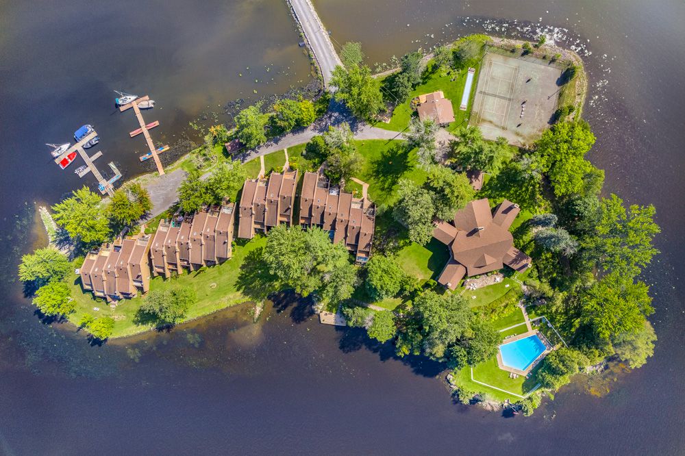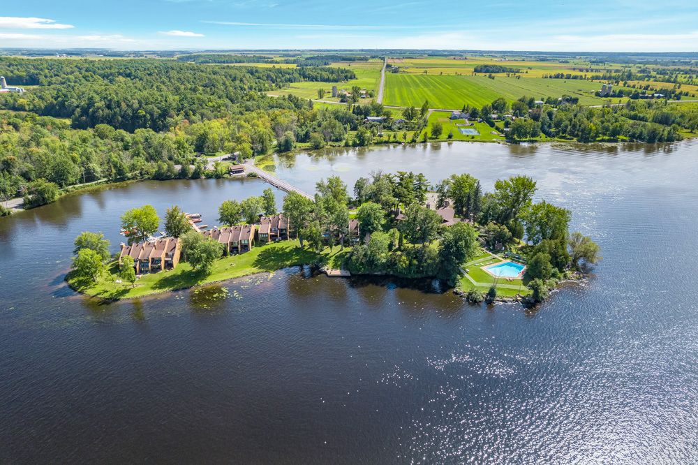 Welcome to Miller Island (Presqu'ile), a captivating resort like retreat on the banks of the Ottawa River, overlooking prestigious Chateau Montebello and the Laurentian mountains, and is one of the regions best kept secrets. A private community of only 21 townhouses which amenities include an in-ground heated pool, tennis court, gym, boat slip and historic Turtle Lodge for entertaining family and friends. This unit was completely renovated in 2023 and offers an open concept main floor with functional kitchen & breakfast bar, dining area, cozy living room with a wood fireplace and powder room. A bright sunroom flooded with natural light and picturesque views of the Laurentian Mountains and Ottawa. The second level has 2 bedrooms with each their own bathroom and the master features a second wood burning fireplace. This unique condo complex is a perfect no maintenance alternative to a cottage for the busy professional. Just 50 minutes to downtown Ottawa.