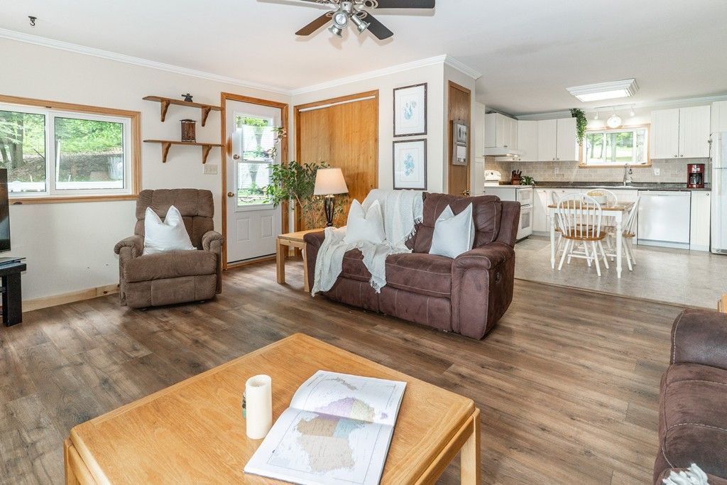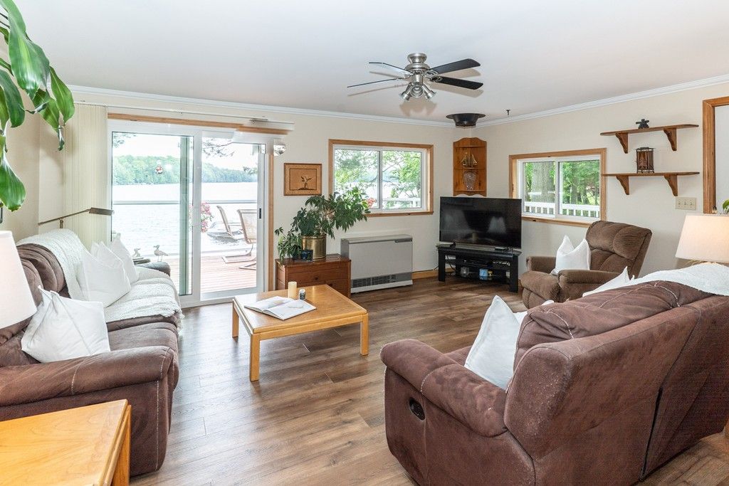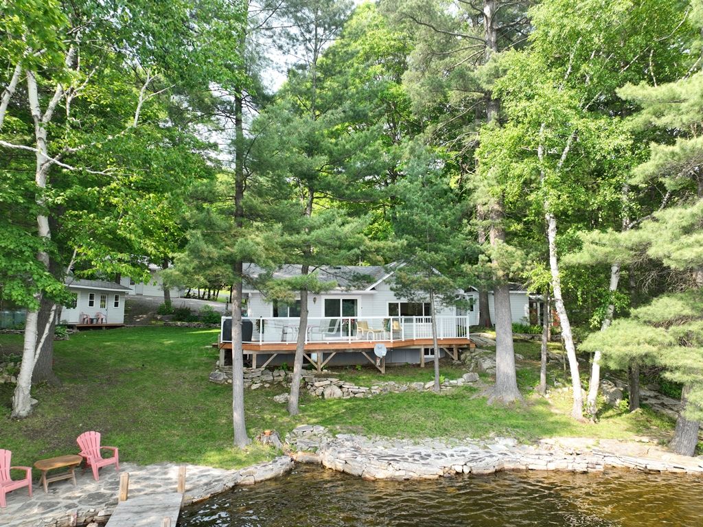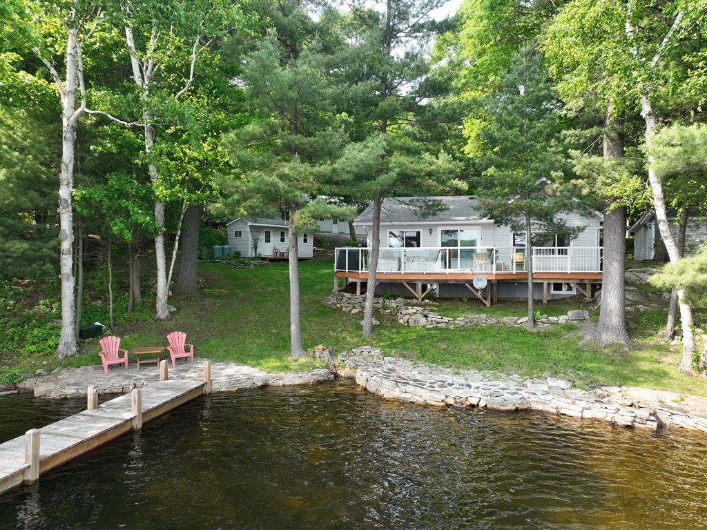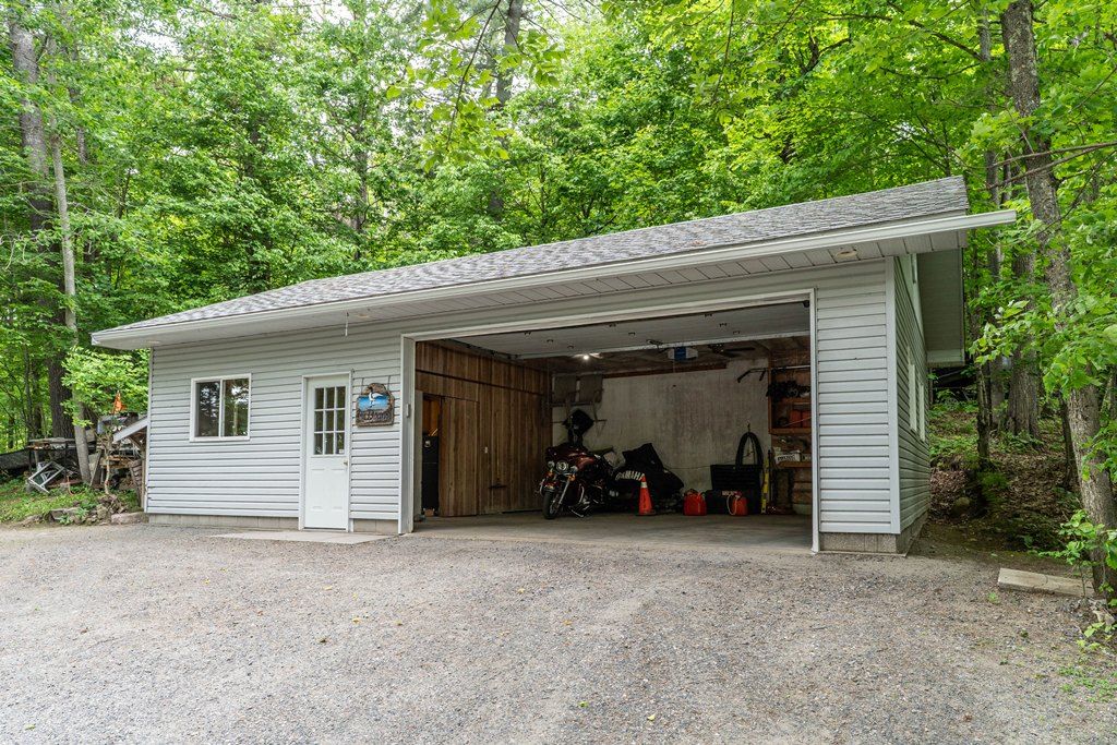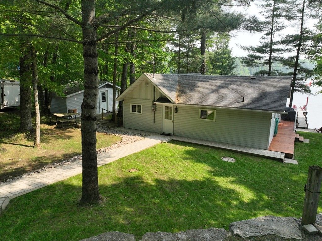 Nestled along the serene shores of a sparkling Kushog Lake in the heart of Algonquin Highlands, this exquisite year round waterfront property offers a rare opportunity to own a piece of paradise. With breathtaking views, modern amenities, and unparalleled access to natures beauty, this home defines luxury living at its finest. Whether you seek tranquility, adventure, or entertainment, this property provides the perfect setting for it all. Featuring 2 bedroom plus and office that could easily be a 3rd bedroom, recently renovated bathroom with main floor laundry, Country kitchen, one floor living with views of the lake from everywhere, large 2 car detached garage with workshop attached, great bunkie and lots of storage sheds. The waterfront is clean with 8ft of water off the end of the dock, Kushog Lake is a 2 lake chain with acres and acres of Crown land to explore. Upgraded Triple pane windows, 200 amp panel upgrade in 2022, Septic replaced in 2009, the home/cottage easy to heat and maintain. Come check it out.
