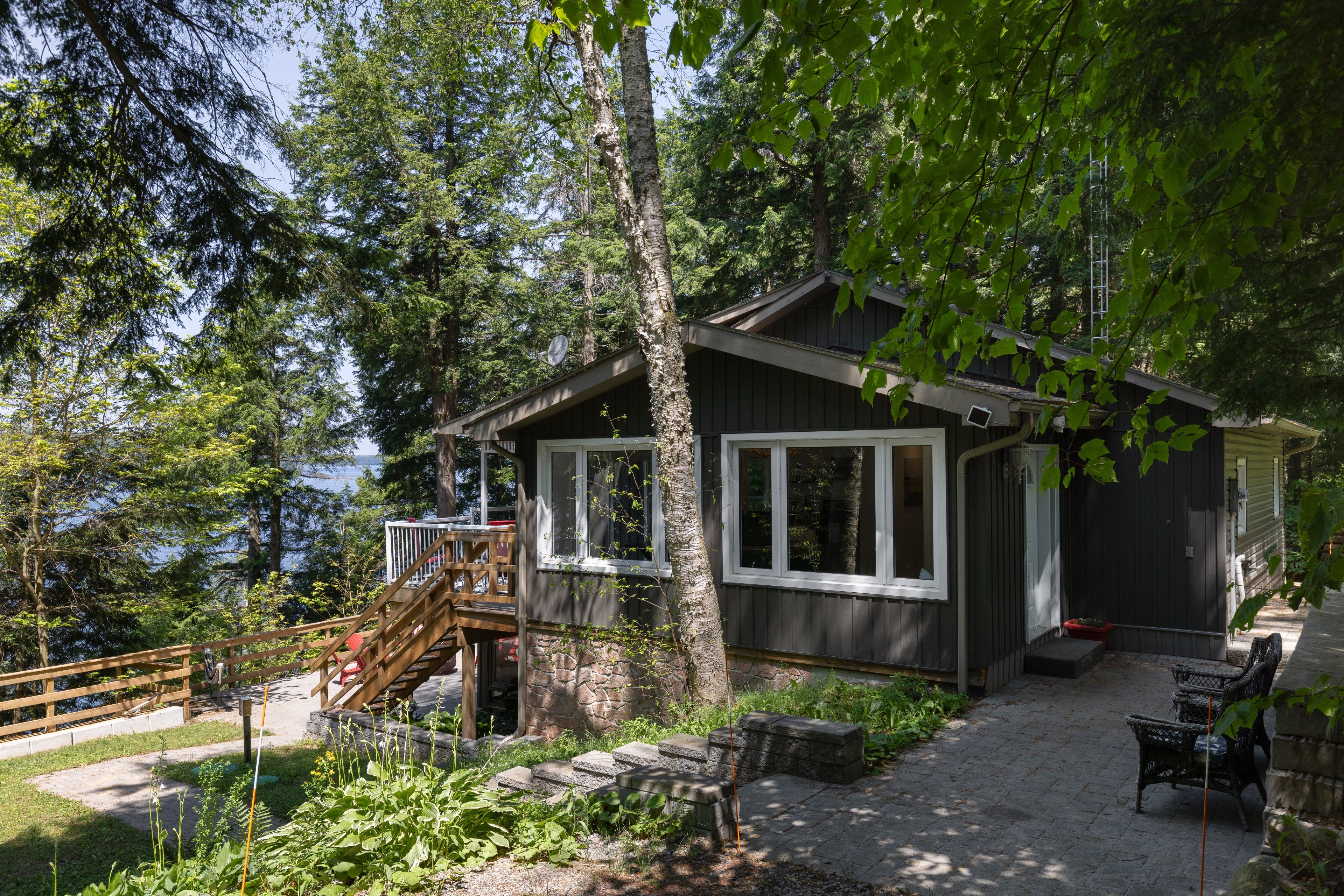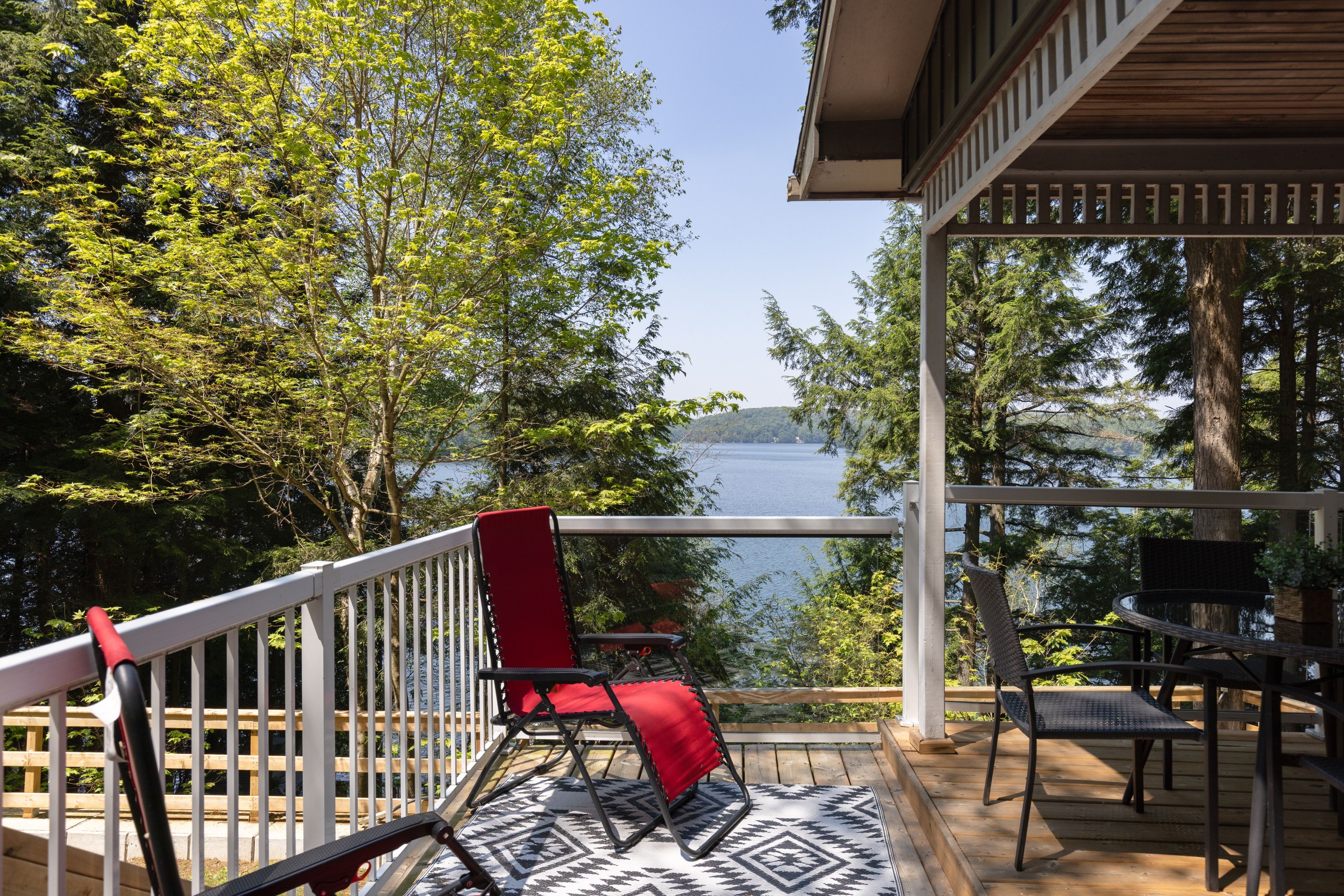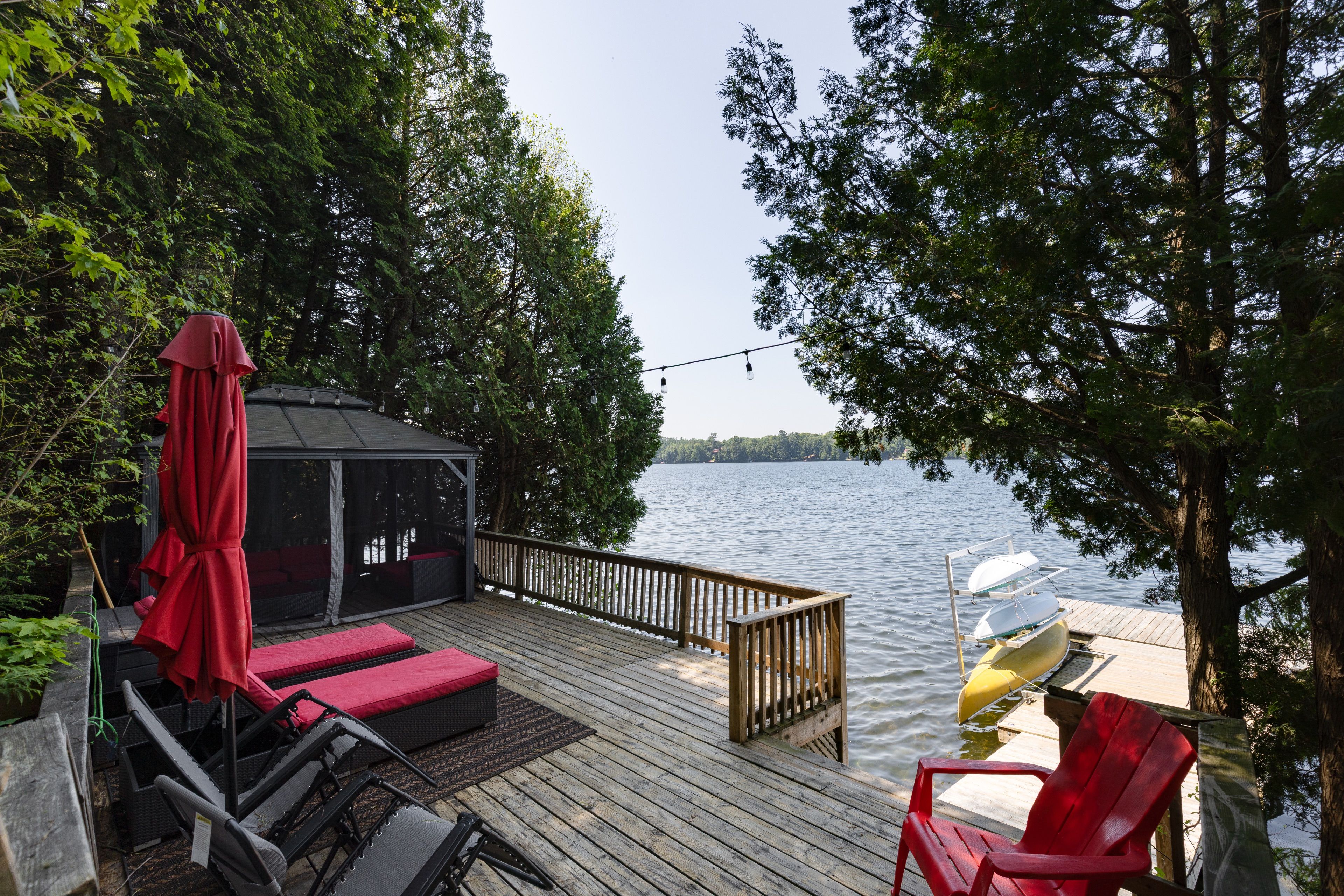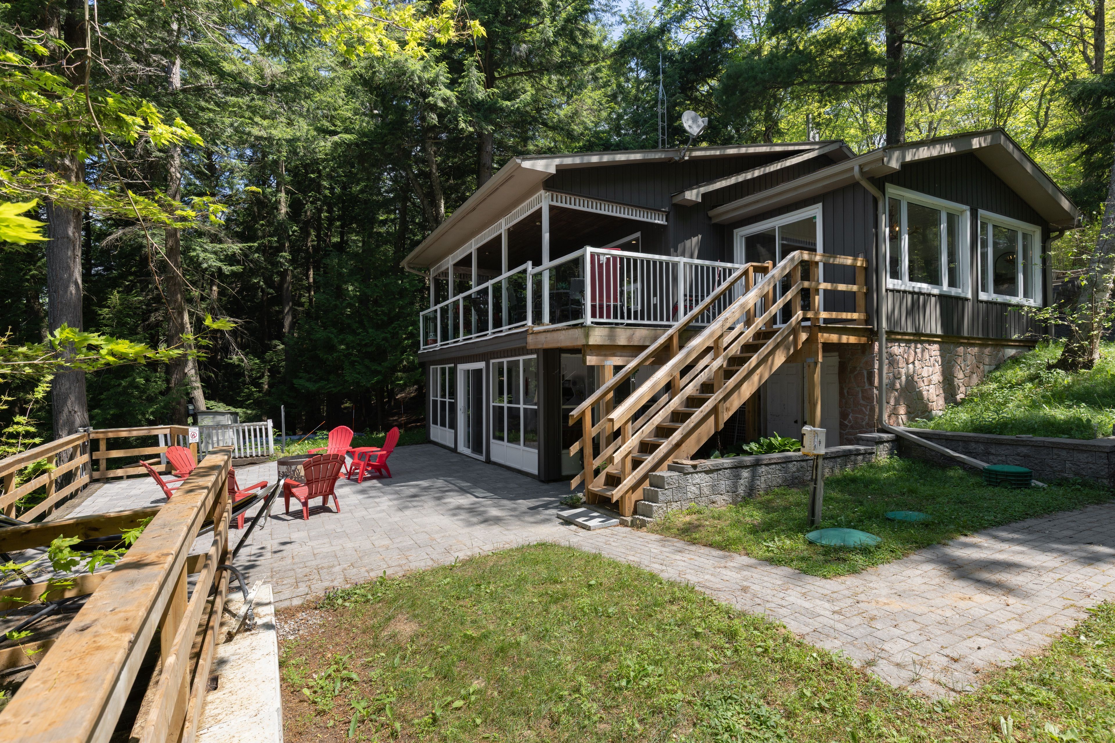 这处私密宅地绿树环绕,宽敞的亲水露台直抵岸线,每分每秒都仿若遁世时光。室内布局行云流水:通透的玄关通向明亮开阔的主层开放式空间,湖景始终一览无余。厨房兼具实用性与亲和力,配备不锈钢电器、充裕备餐区,并与以丙烷壁炉为核心的客厅自然衔接。主层主卧套房连通四件套浴室,既保障主人私密性又便于宾客使用。下层两间客卧舒适隐秘,其中一间配备三件套独卫并直通马斯科卡阳光房——环抱式落地窗将湖景定格,时光在此仿佛放缓流速,正是雨天阅读与深夜桌游的理想空间。下层还设有配备丙烷壁炉的舒适娱乐室及便利的两件套浴室。