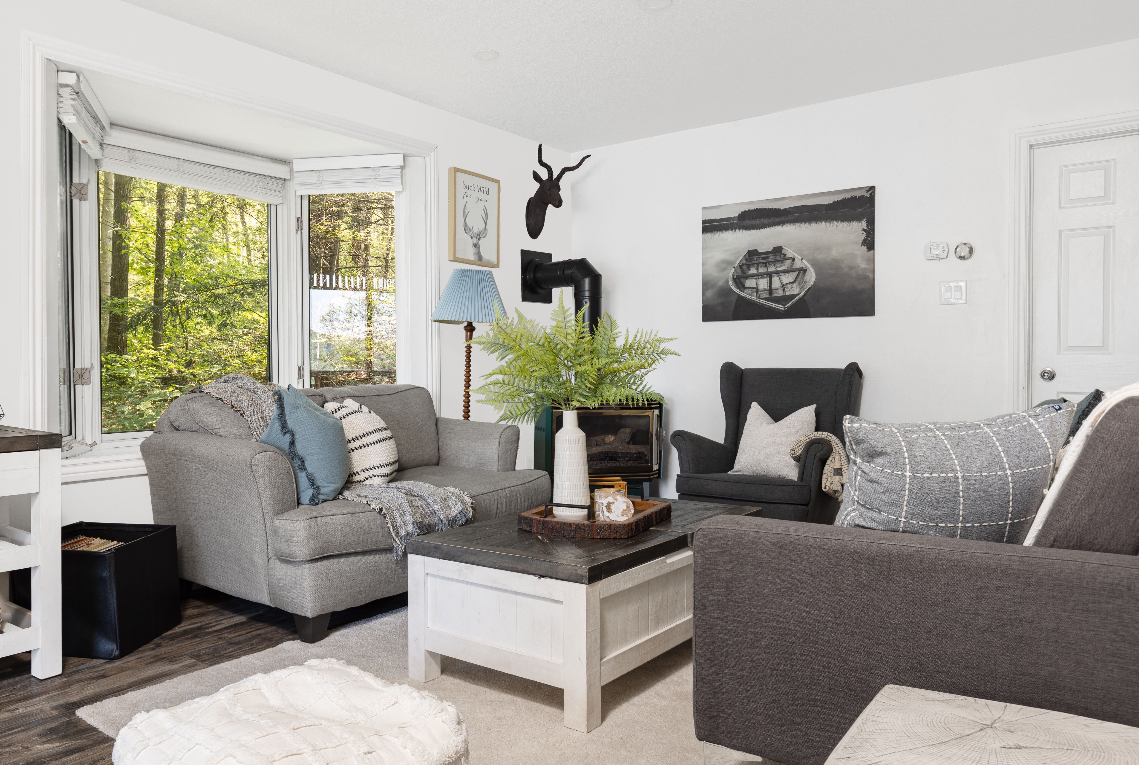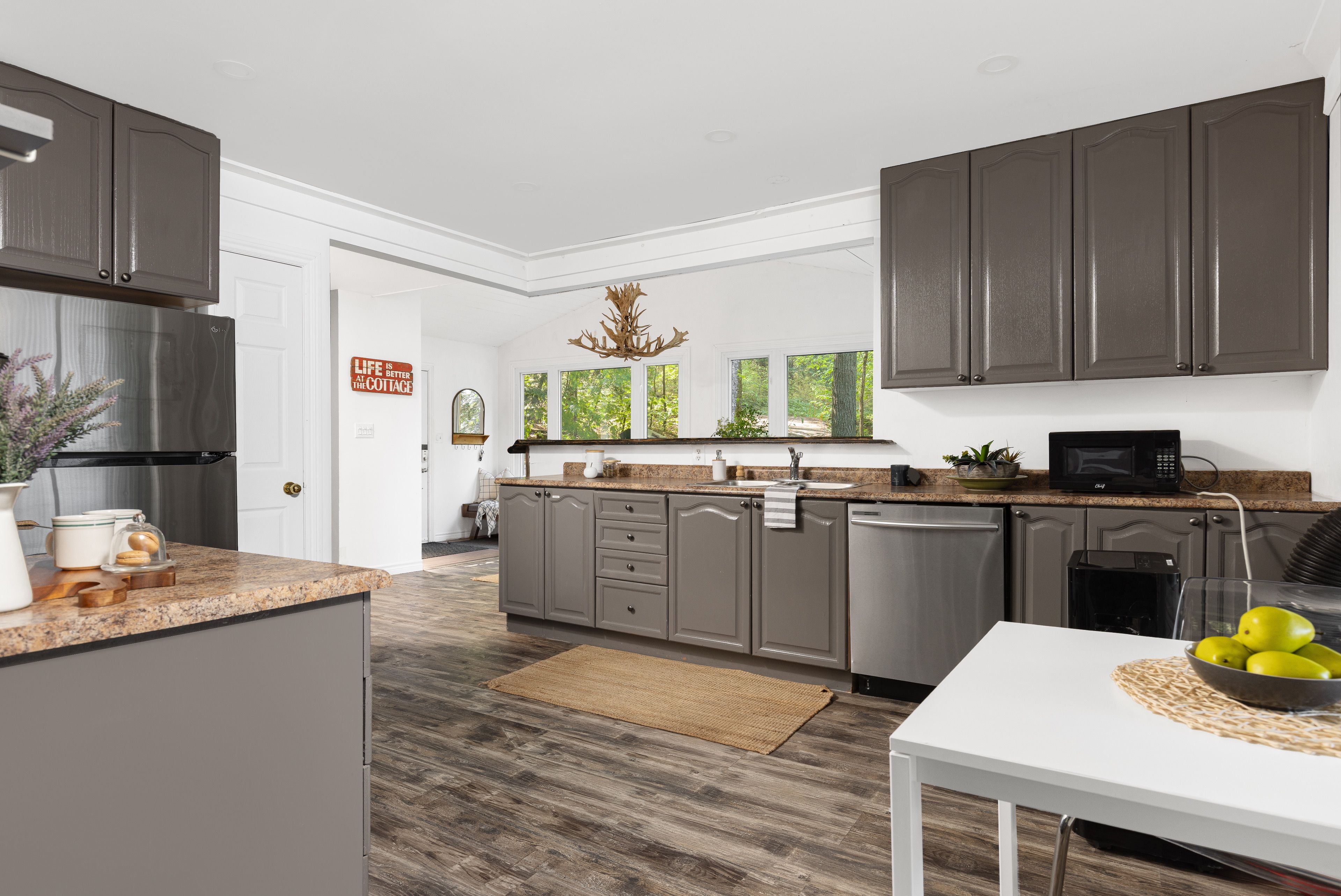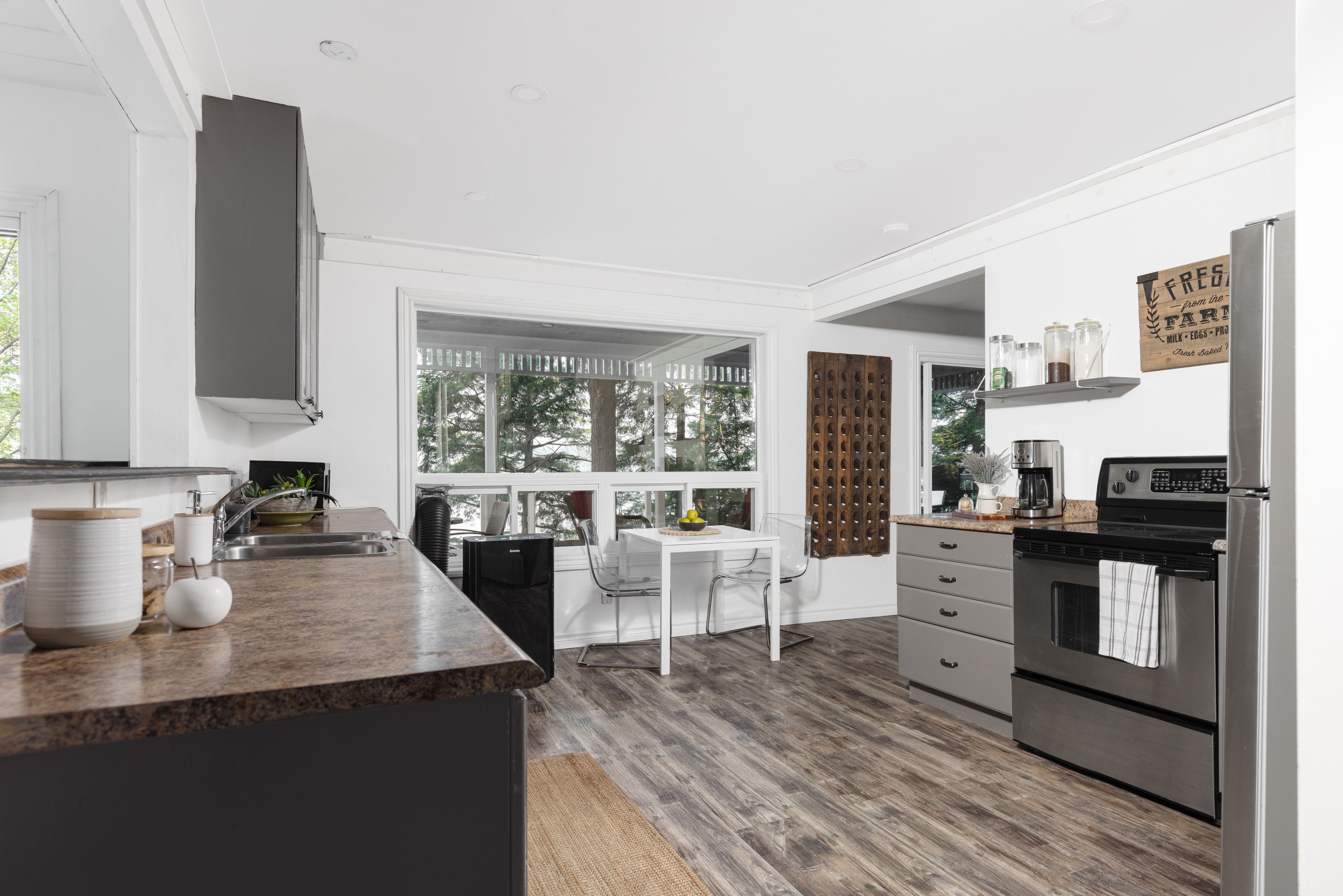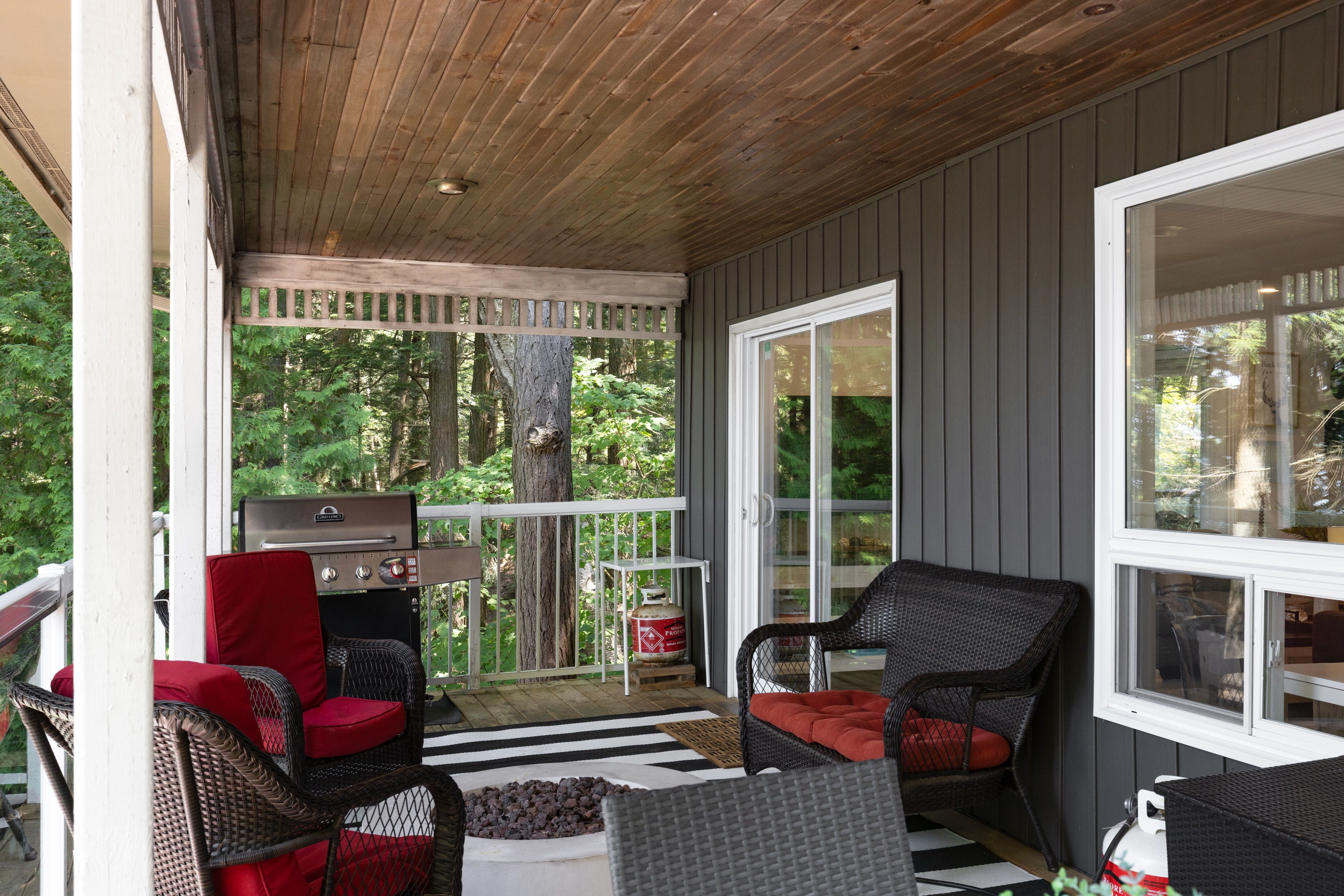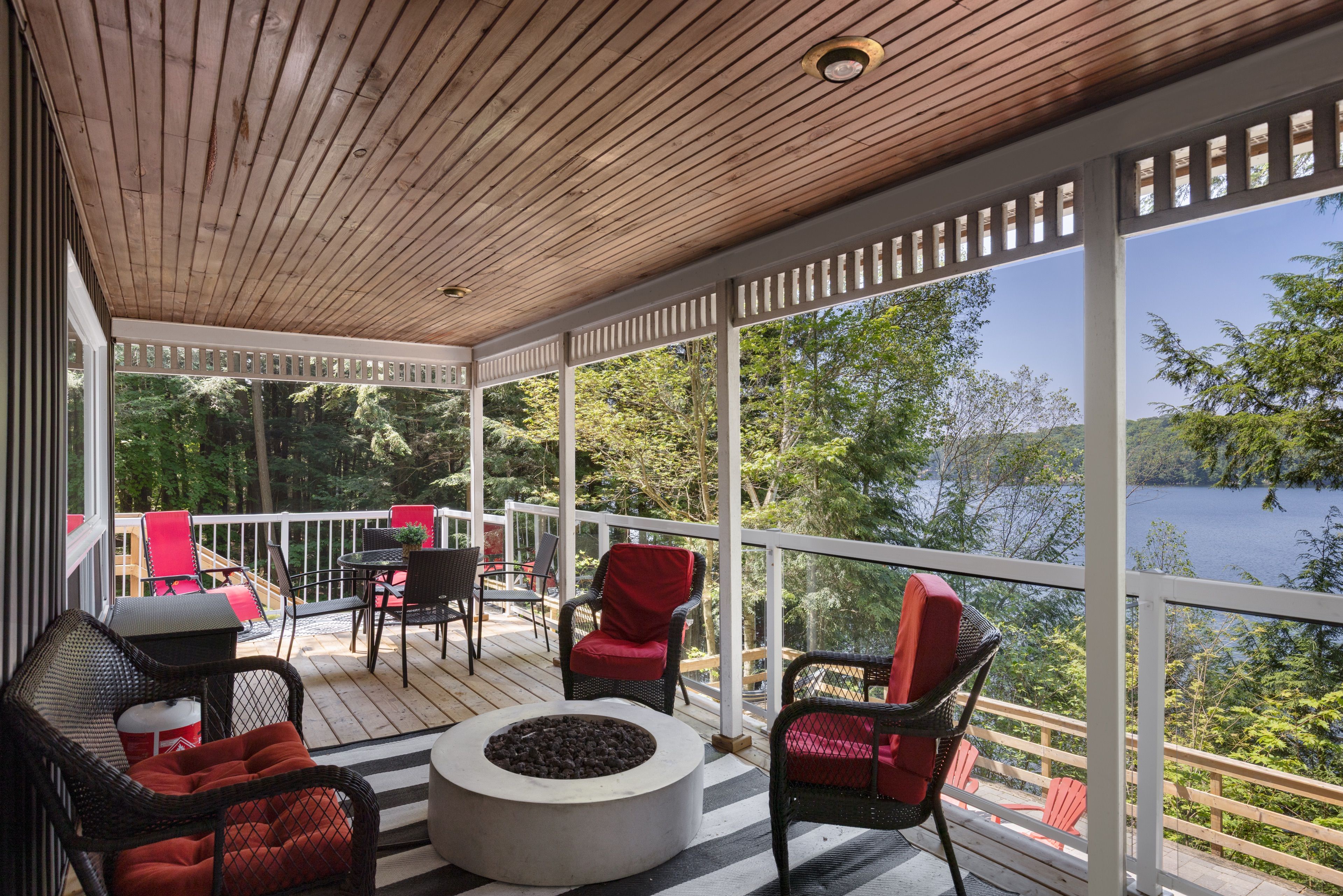 这处私密宅地绿树环绕,宽敞的亲水露台直抵岸线,每分每秒都仿若遁世时光。室内布局行云流水:通透的玄关通向明亮开阔的主层开放式空间,湖景始终一览无余。厨房兼具实用性与亲和力,配备不锈钢电器、充裕备餐区,并与以丙烷壁炉为核心的客厅自然衔接。主层主卧套房连通四件套浴室,既保障主人私密性又便于宾客使用。下层两间客卧舒适隐秘,其中一间配备三件套独卫并直通马斯科卡阳光房——环抱式落地窗将湖景定格,时光在此仿佛放缓流速,正是雨天阅读与深夜桌游的理想空间。下层还设有配备丙烷壁炉的舒适娱乐室及便利的两件套浴室。
