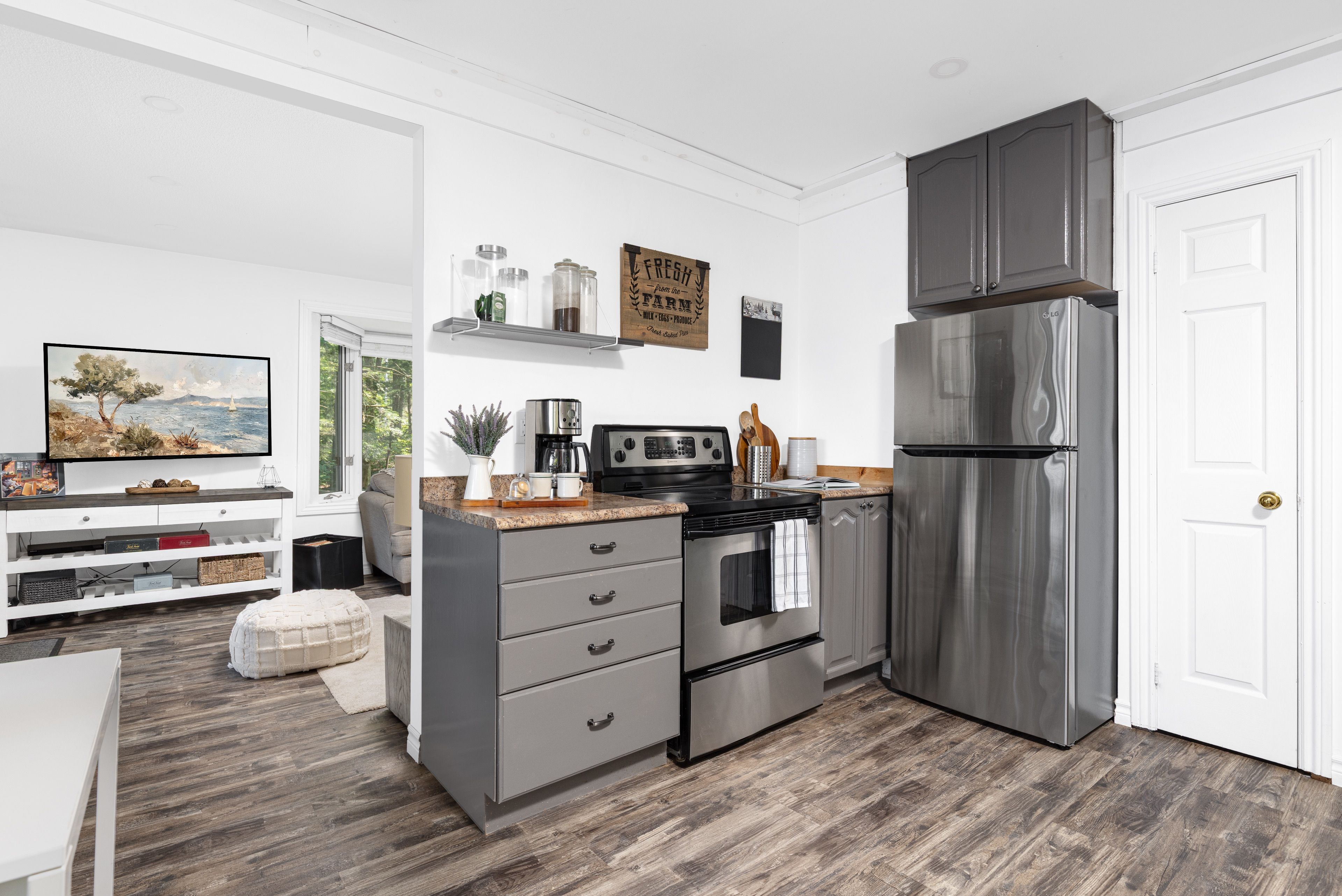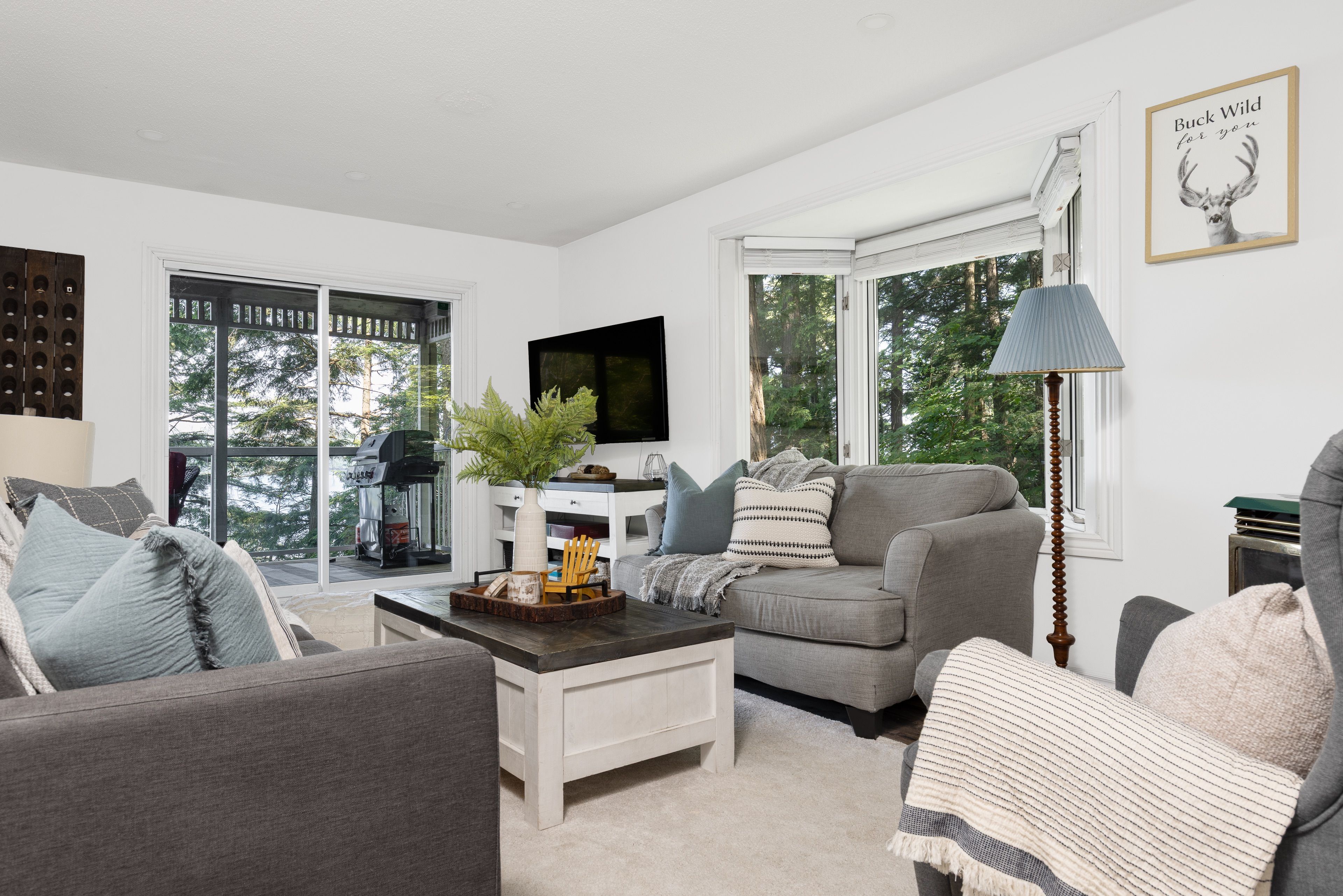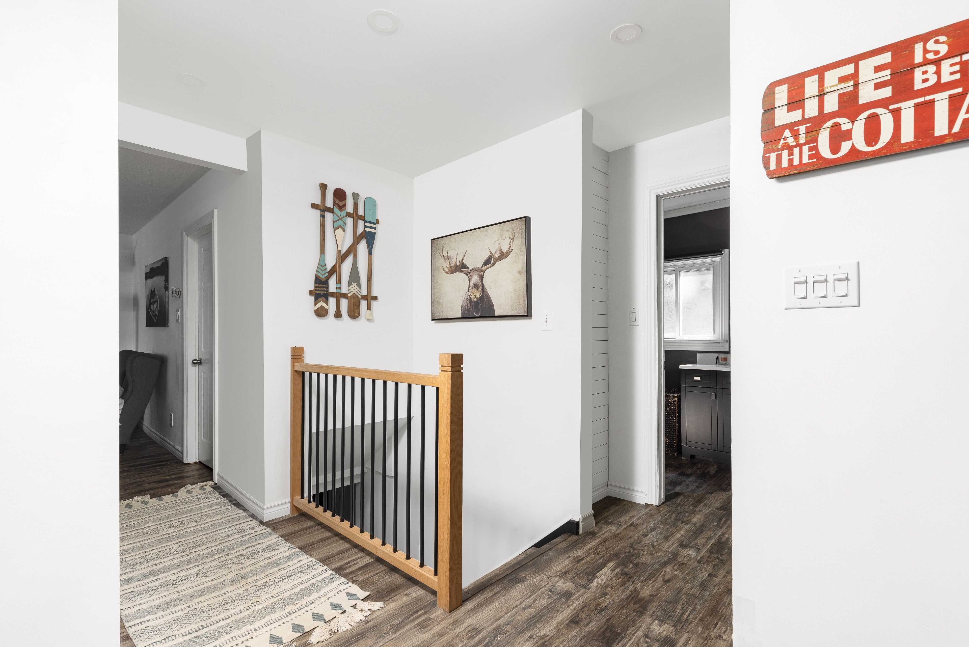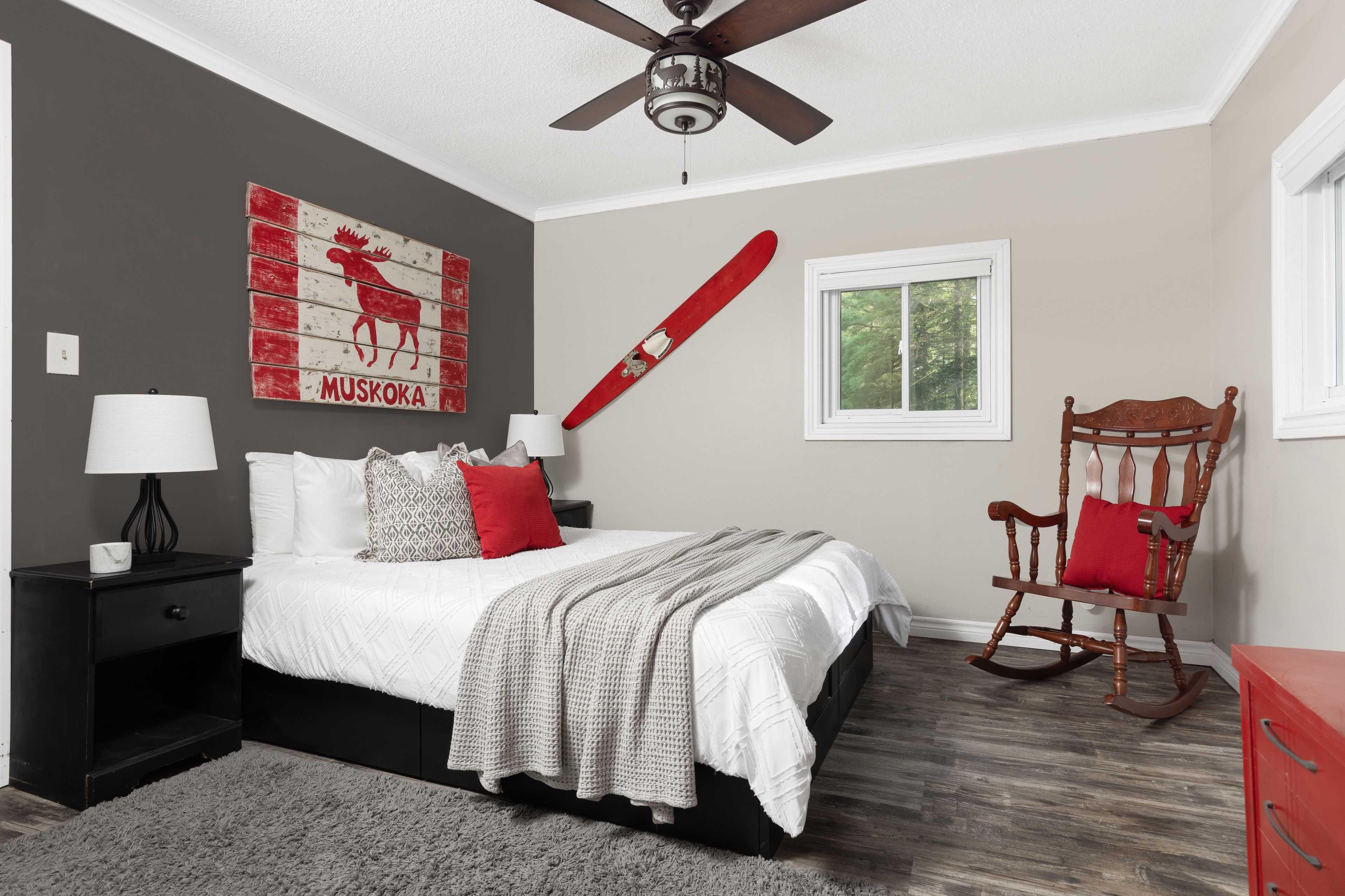 这处私密宅地绿树环绕,宽敞的亲水露台直抵岸线,每分每秒都仿若遁世时光。室内布局行云流水:通透的玄关通向明亮开阔的主层开放式空间,湖景始终一览无余。厨房兼具实用性与亲和力,配备不锈钢电器、充裕备餐区,并与以丙烷壁炉为核心的客厅自然衔接。主层主卧套房连通四件套浴室,既保障主人私密性又便于宾客使用。下层两间客卧舒适隐秘,其中一间配备三件套独卫并直通马斯科卡阳光房——环抱式落地窗将湖景定格,时光在此仿佛放缓流速,正是雨天阅读与深夜桌游的理想空间。下层还设有配备丙烷壁炉的舒适娱乐室及便利的两件套浴室。