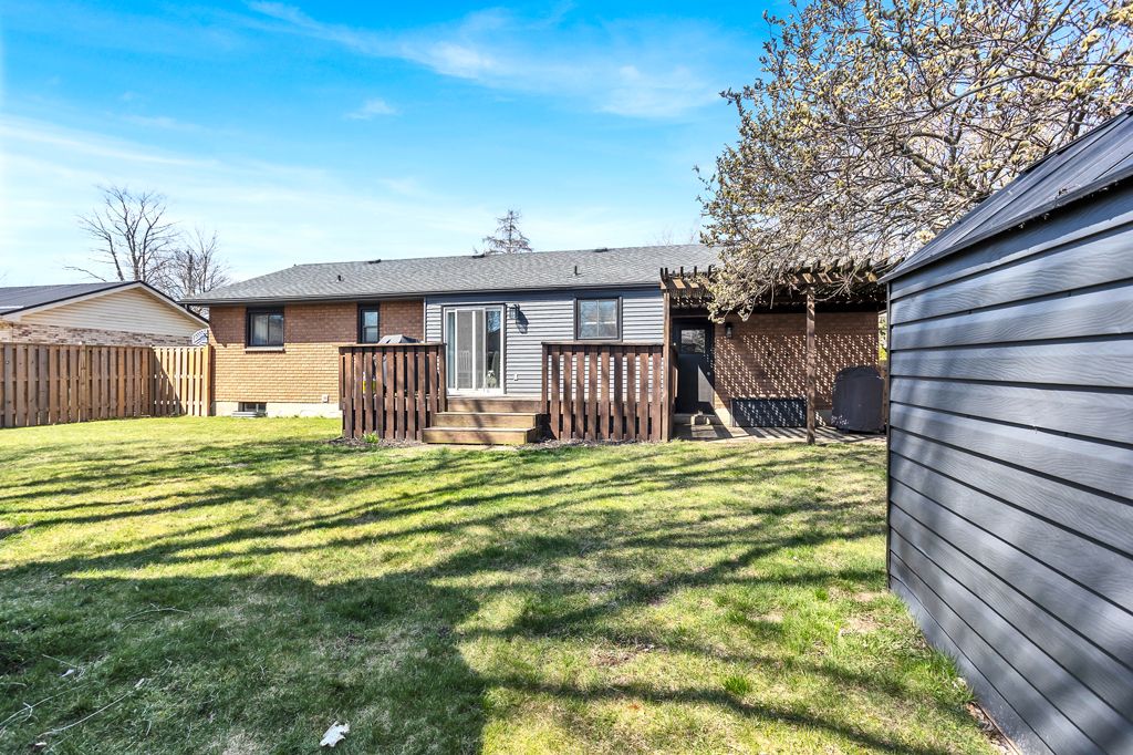 DON'T LIFT A FINGER!!! This tastefully decorated 3 bed, 2 bath brick bungalow is nicely situated at the edge of town and only a stone's throw from much of what Aylmer has to offer. On the main, enjoy a spacious kitchen with dining area that walks through sliding doors to rear deck and fenced yard. Also, find 3 bedrooms with ample closet space, sparkling 4pc bath with main floor laundry privilege. Downstairs, enjoy a sprawling recreation area with full bar as well as a 3pc bath, office (that could easily serve as a play or guest room) and a spacious utility room that allows for plenty of storage. The basement also has a side entrance that could easily allow for a secondary apartment or in-law suite. This home has been tastefully decorated and updated from top to bottom and you will find that pride of ownership is apparent. This location a short commute to London, St. Thomas, Tillsonburg and the 401.