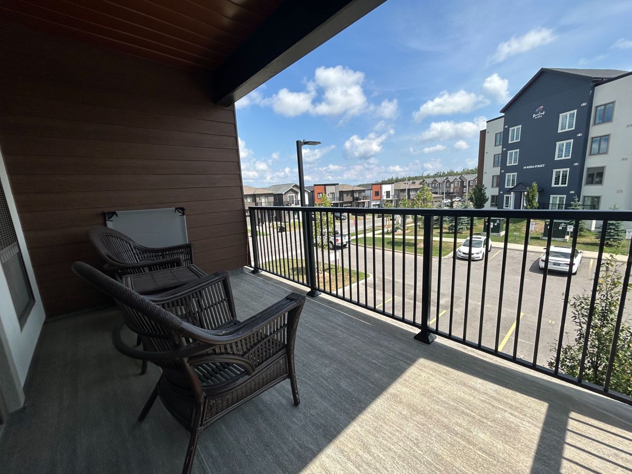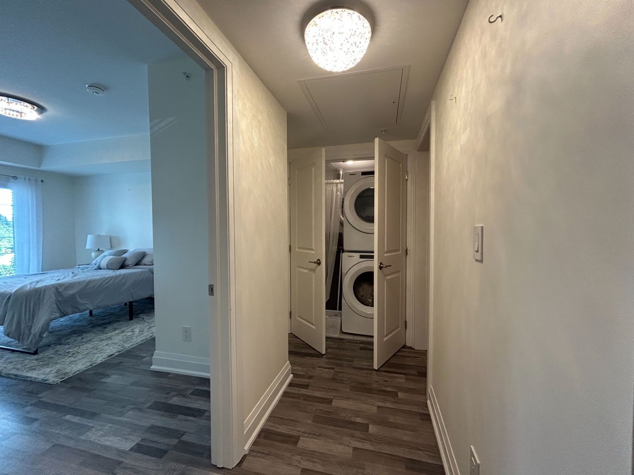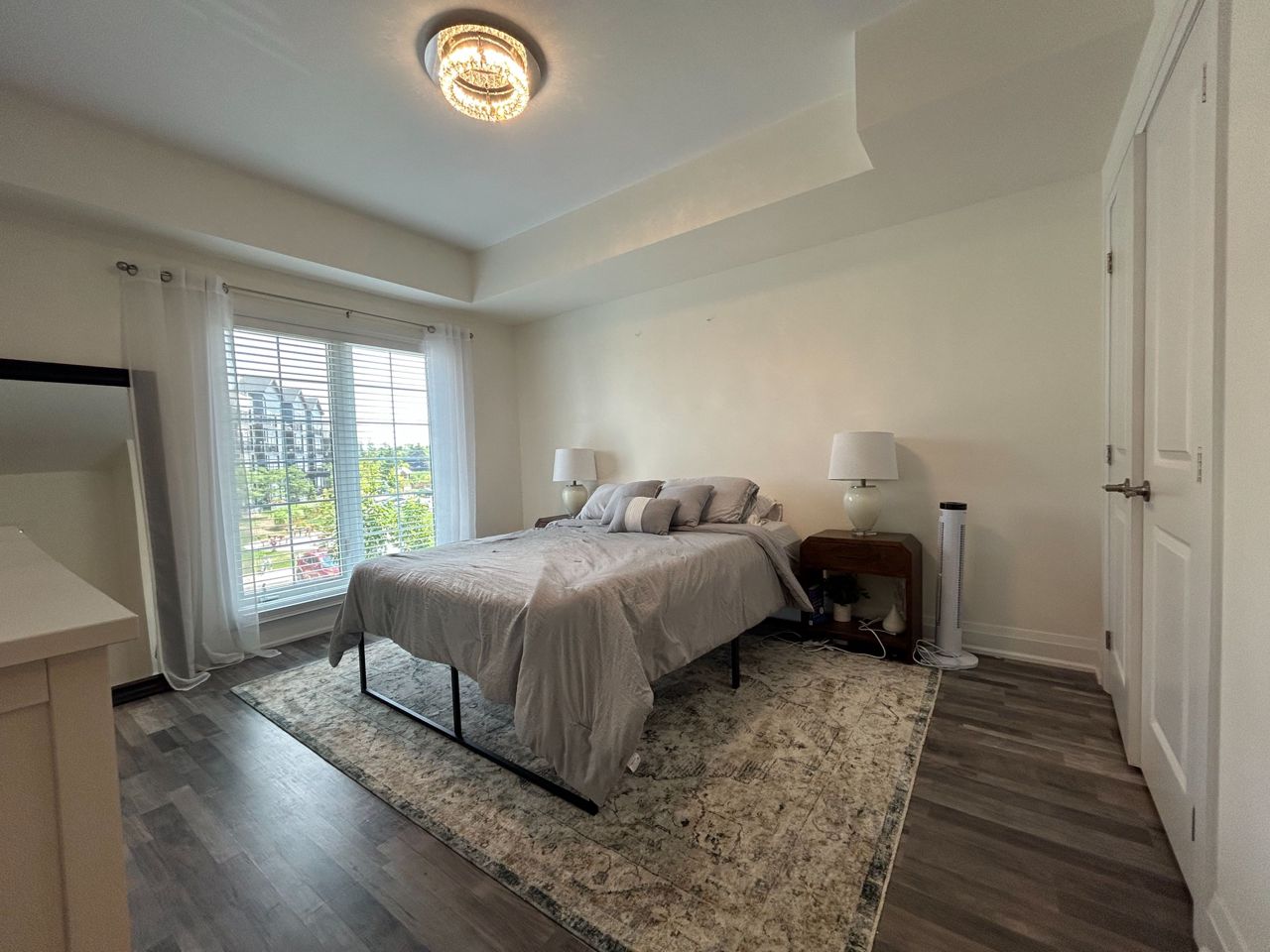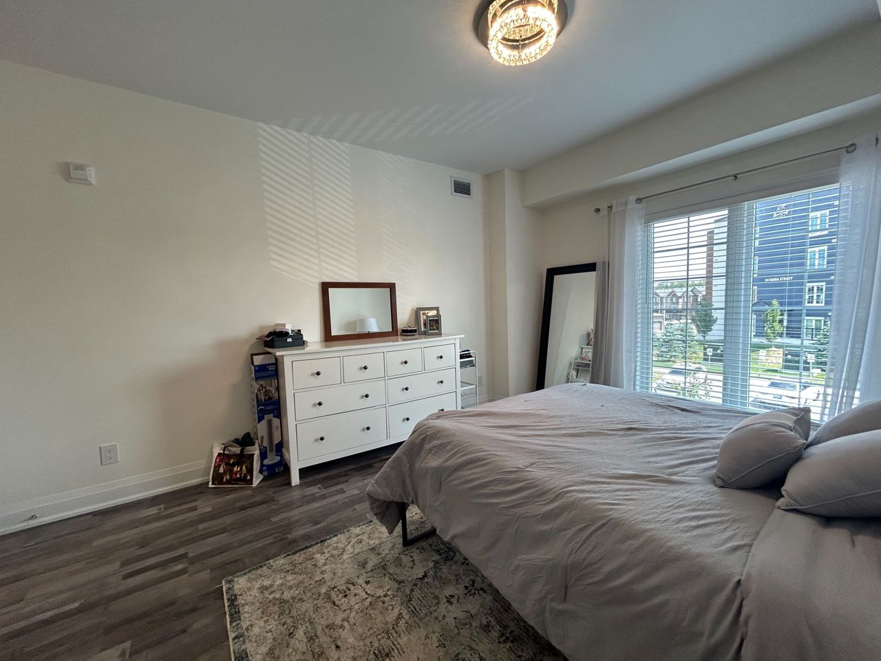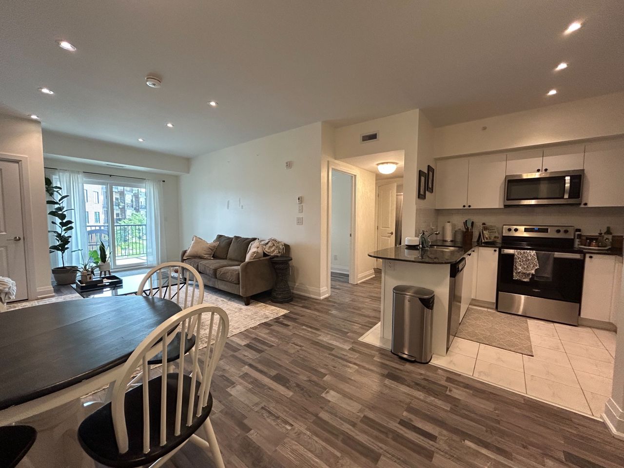 Updated newer condo featuring 2 parking spaces, private storage locker, and a bright open-concept layout. Enjoy a modern kitchen with stainless steel appliances, fresh flooring, in-suite laundry, and a private balcony. Located in a desirable neighbourhood and newer building, close to highway access, shopping, parks and more!