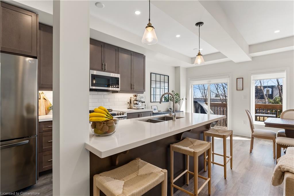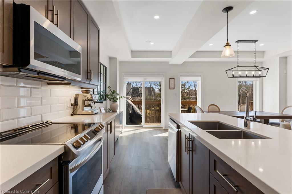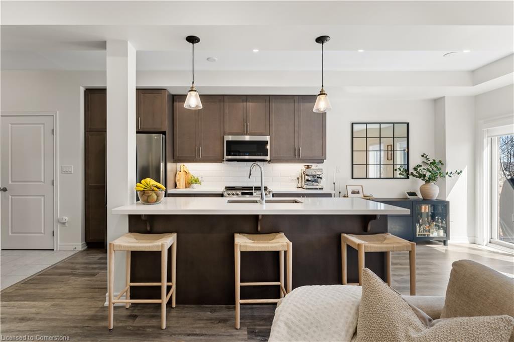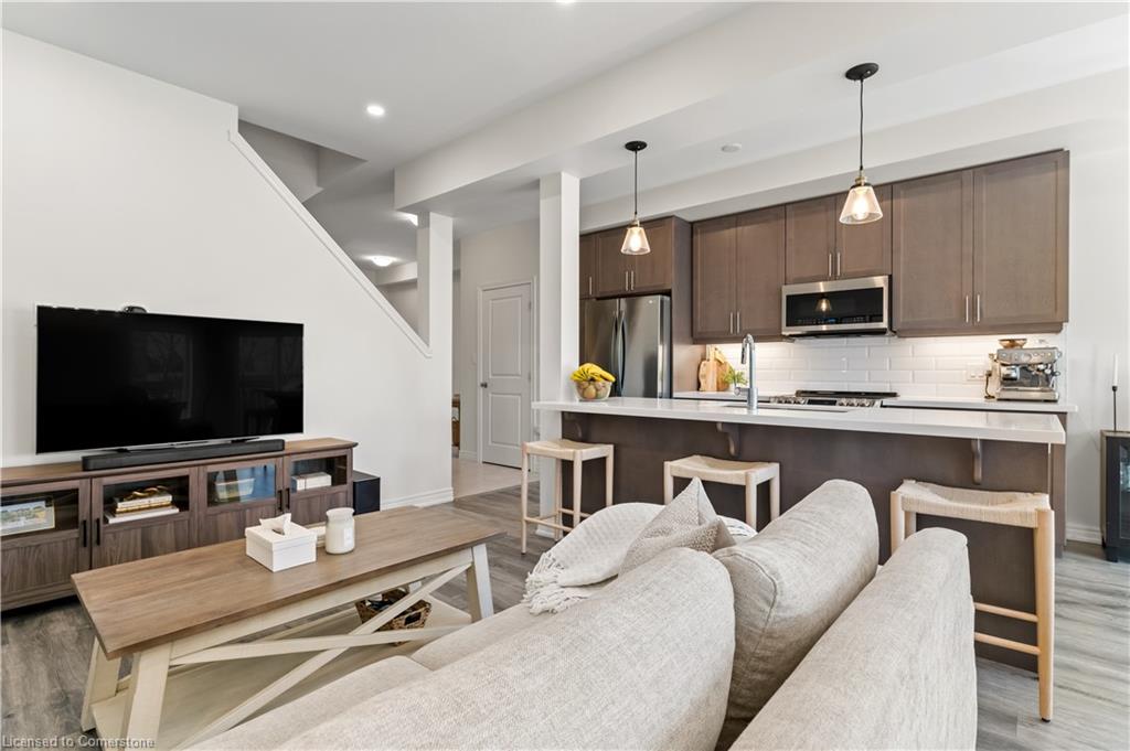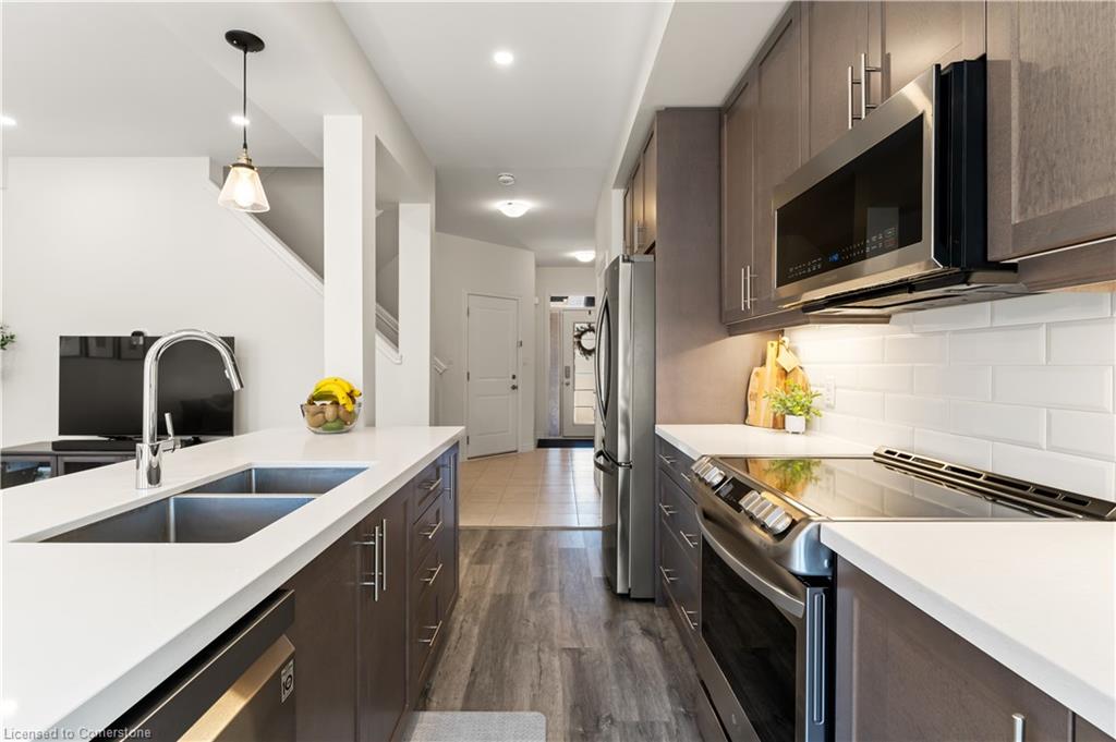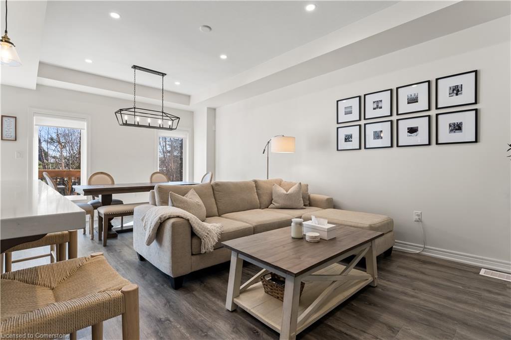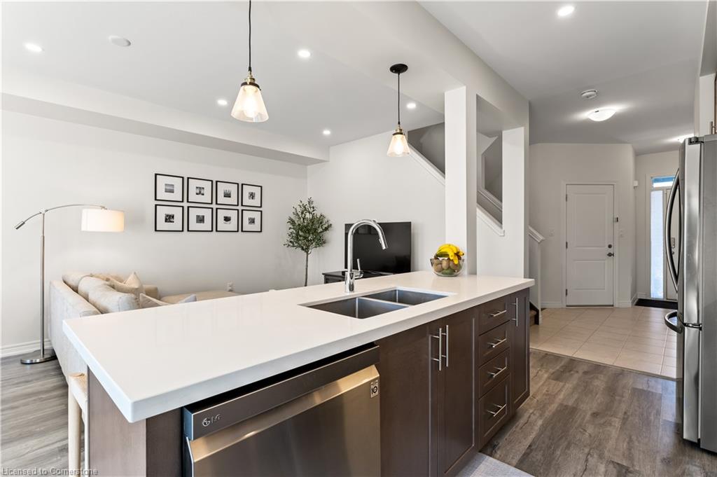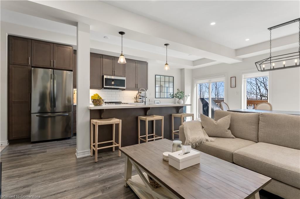 Sleek, modern, and filled with natural light! Welcome to 3977 Crown Street, a stunning freehold townhome built by Losani Homes in Beamsville's sought-after Vista Ridge community. This carpet-free (except stairs) home embraces a fresh, clean, minimalist colour scheme, luxury vinyl plank flooring, 9-ft smooth ceilings, and pot lights for a bright and airy feel. The chefs kitchen boasts quartz countertops, a large island with breakfast bar, and stainless steel appliances, with a walkout to a private rear deck, perfect for morning coffee or to barbeque. Upstairs, the primary suite offers a walk-in closet and a spa-like ensuite, while two additional spacious bedrooms share a 4-piece bath and surround a versatile loft space, ideal for a home office or reading nook. But the real hidden gem? A bright, walk-out basement, which is a blank canvas ready for your dream rec room, home gym, leading to a landscaped private backyard patio. With parking for three cars, spectacular lake views, and easy access to top-rated schools, parks, wineries, and local restaurants, this is more than just a home, it's a lifestyle. Don't miss this rare opportunity!