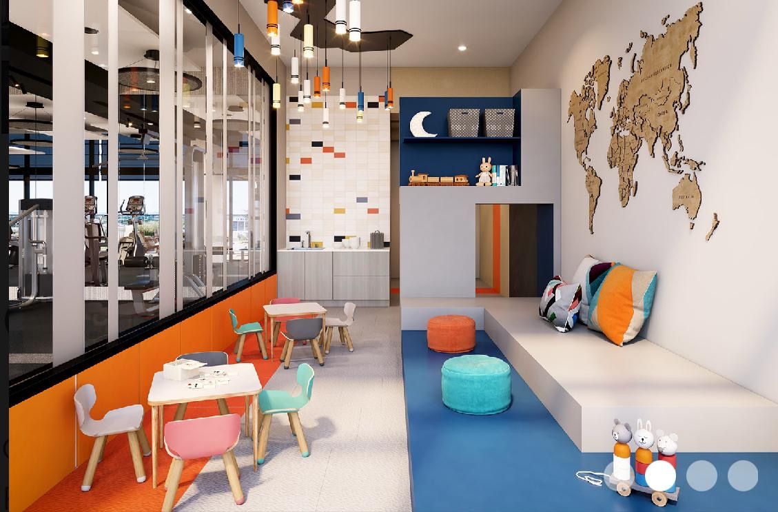 住户专享顶级配套设施:健身房、健身/瑜伽/冥想区、儿童游戏室、户外休闲区、派对房、带烧烤设施的屋顶露台、共享办公空间等。成为这间现代全新公寓的首任住客,即刻入住!