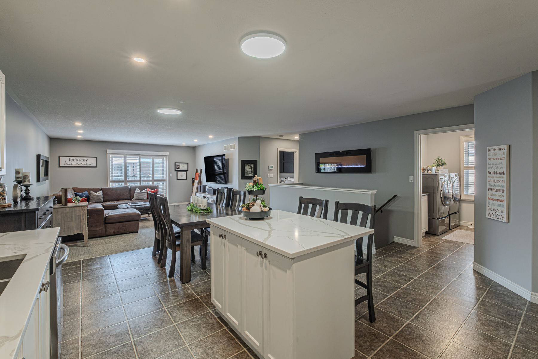 主层设有明亮温馨的门厅,通向一间宽敞的卧室。步入住宅核心区域,开放式概念的厨房与客厅融为一体,兼顾日常生活与娱乐需求。厨房经过精美升级,配备石英石台面、现代筒灯及充足橱柜。宽敞的客厅直通后阳台,是休闲或户外用餐的理想场所。同层还包含一间宽敞的主卧、时尚的四件套浴室以及便利的主层洗衣房。附带的一车位车库提供安全泊车及额外储物空间。