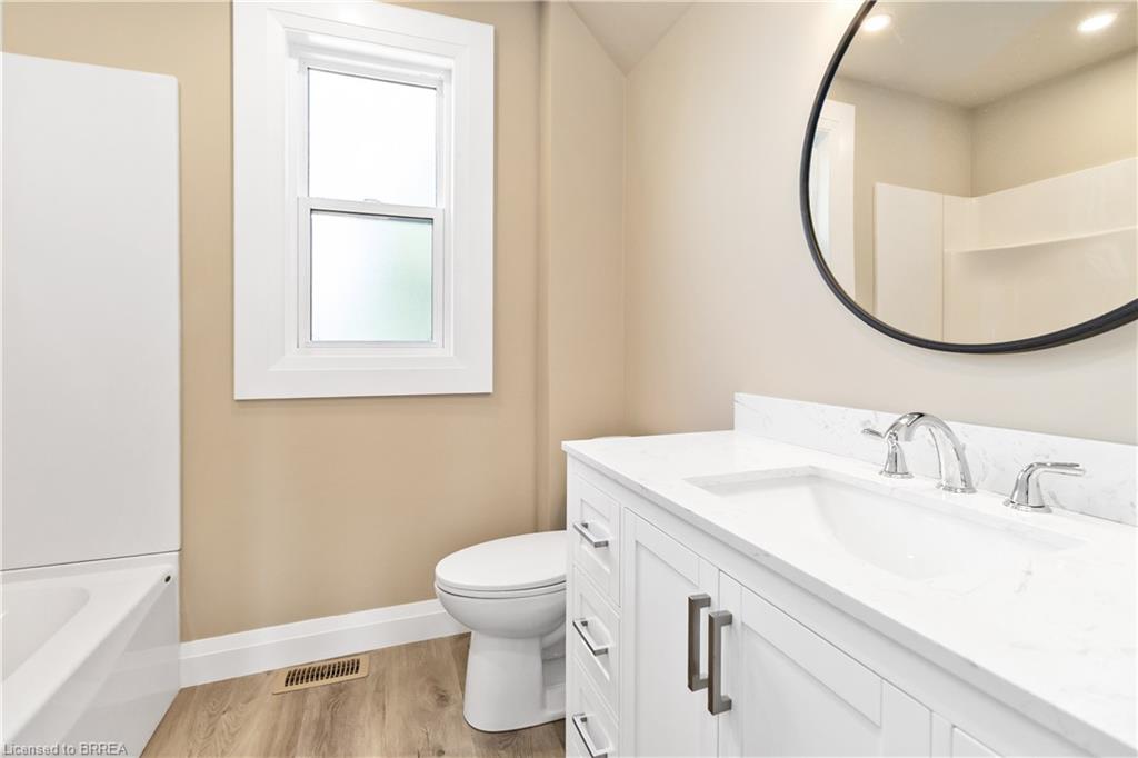 Wow! Better than new. Here is your opportunity to own this beautifully updated 2 storey home. Main floor offers Living room/dining room combination; new kitchen with Stainless Steel appliances, new 2 pc bathroom, and main floor laundry area. Upper level consists of 3 bedrooms, and a new 4 pc bath. You wouldn't believe the list of extensive updates including: all new windows and doors, soffits, fascia, and eavestrough, all new exterior railings, front porch, rear covered deck, fully insulated (spray foam/blown in), wiring, pot lights throughout, pumbing, drywall, trim, flooring, and a new main water line is in the process of being completed. Rear yard has been seeded, front yard seeded, was tore up due to new water service install. This move in ready home is just waiting for you. Close to schools and all amenities.