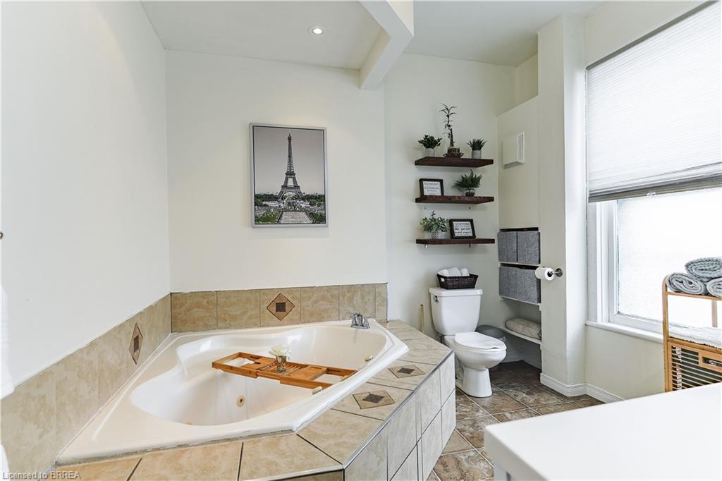 Upstairs, you’ll find two comfortable bedrooms, including a primary retreat with its own 2-piece ensuite for added privacy. The large 4-piece bathroom offers a relaxing soak after a busy day. The waterproofed basement provides peace of mind and additional potential for finishing or storage.