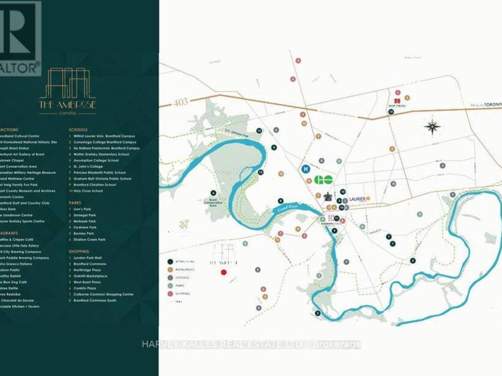 Discover unparalleled luxury at The Ambrose Condos, a premier development by Elite M.D. Developments, designed by Saplys Architects Inc! This gorgeous 1 Bedroom + Den + 2 washrooms penthouse suite offers 642sq ft of exquisitely finished living space plus 75sq ft. balcony, floor to ceiling windows perfect for enjoying panoramic views of lush conservation area. High-end finishes adorn every corner, from designer kitchen and bathroom cabinets, stone countertops, and under-mount sinks to state-of-the-art stainless-steel appliances and energy efficient washers and dryers. Enhance your lifestyle with Ambrose's private concierge service offering ultimate security and convenience. The buildings exceptional amenities include outdoor BBQs and fireplaces, chic entertainment rooms with chefs kitchen, rooftop deck with garden, an exclusive movie theatre, a fully-equipped fitness/yoga studio and outdoor calisthenics area with running track. Pet lovers will appreciate the off-leash dog park and pet washing station, while modern conveniences like electric vehicle chargers and secure bike and storage lockers, bike repair room, ensure all your needs are met. Ideally positioned for easy access to Highway 403, The Ambrose Condos are just minutes from the Brantford Train Station, Colborne Common Shopping Center, Laurier University, and downtown Brantford. Enjoy the serenity of nearby parks like Donegal Park and Edith Monture Park.