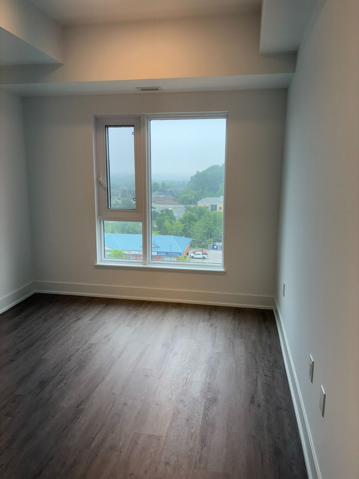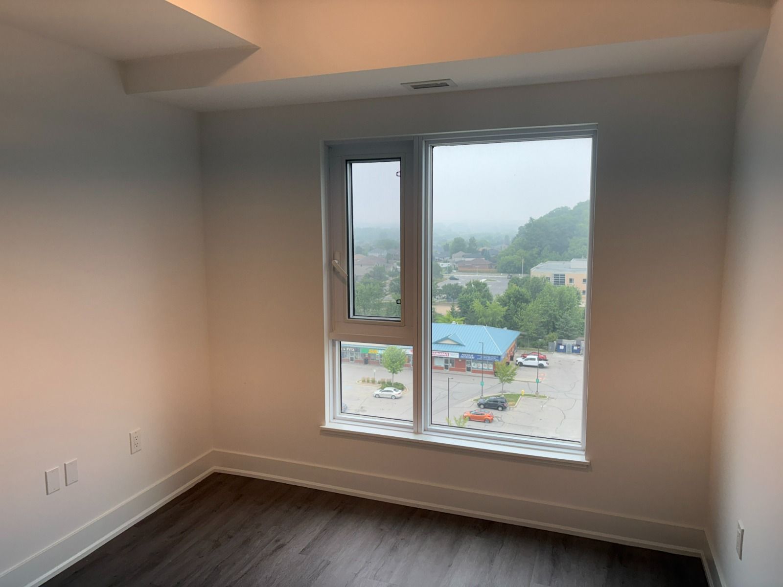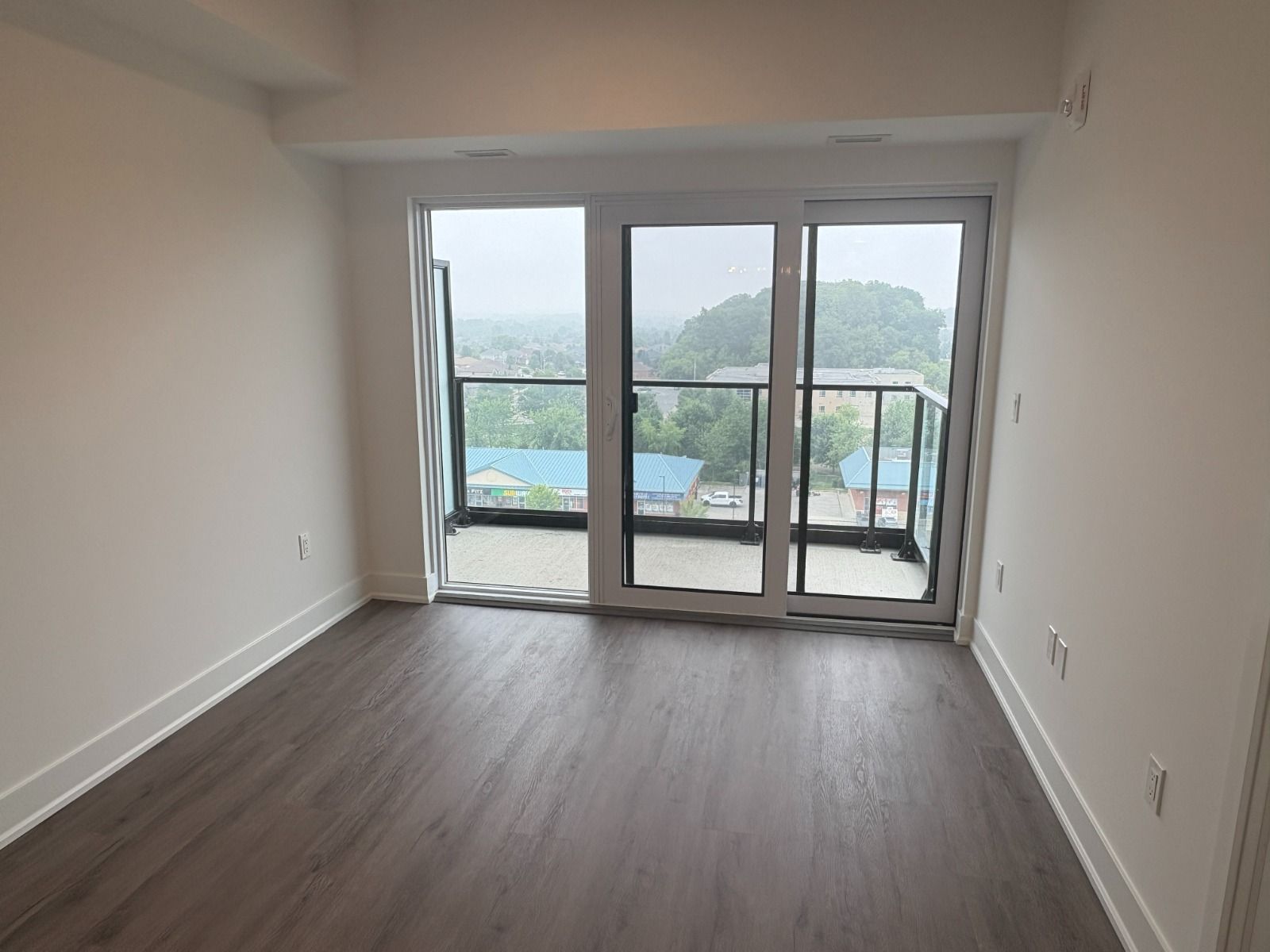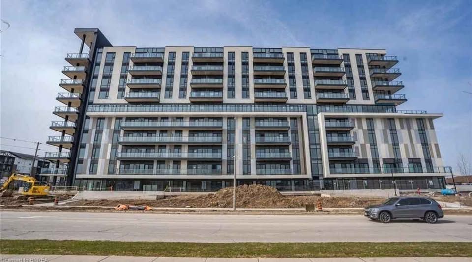 Welcome to the brand-new boutique Ambrose Condos, a contemporary mid-rise development in the heart of West Brant, Brantford. This modern 1 Bedroom + Den + Study, 2 Bathroom unit features 642 sq ft of interior living space plus a 57 sq ft private balcony. Enjoy an open-concept layout with upscale finishes including quartz countertops, stainless steel appliances (fridge, stove, dishwasher, microwave), and white washer/dryer. The primary bedroom includes a private ensuite with a glass-enclosed shower, while the main bath offers a deep soaker tub with ceramic accents. Additional features include laminate flooring throughout, 9-ft ceilings, large windows, in-suite laundry, a storage locker, and a dedicated parking space. The den and study provide flexible space for working from home or added living area. Residents enjoy access to premium amenities: a fitness centre, yoga studio, party room, connectivity lounge, and outdoor athletic area on Level 6, plus concierge service, dog wash station, bike storage/repair room, and parcel room on Level 1. Ideally located near Laurier University, Assumption College, VIA Rail, Elements Casino, Wayne Gretzky Sports Centre, and close to schools, parks, trails, shopping, dining, and major commuter routes.