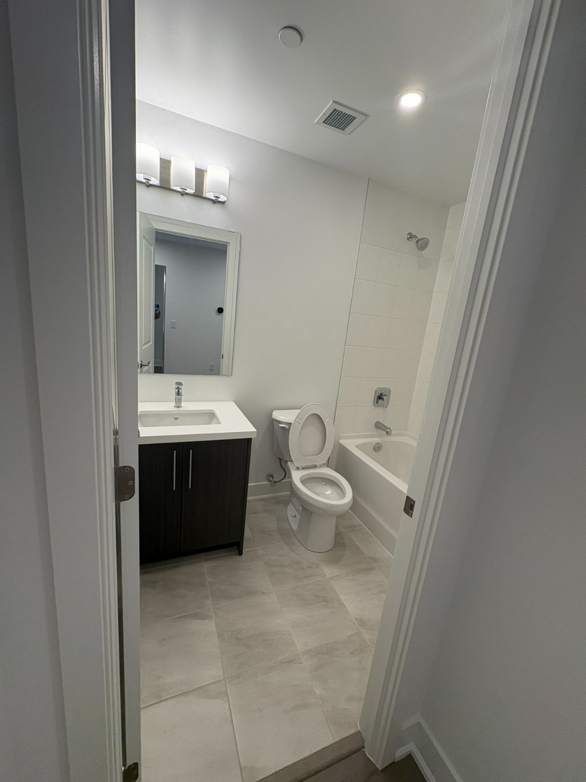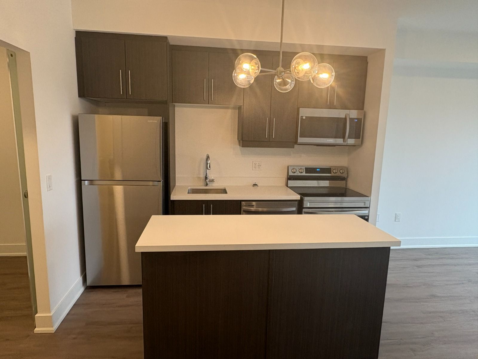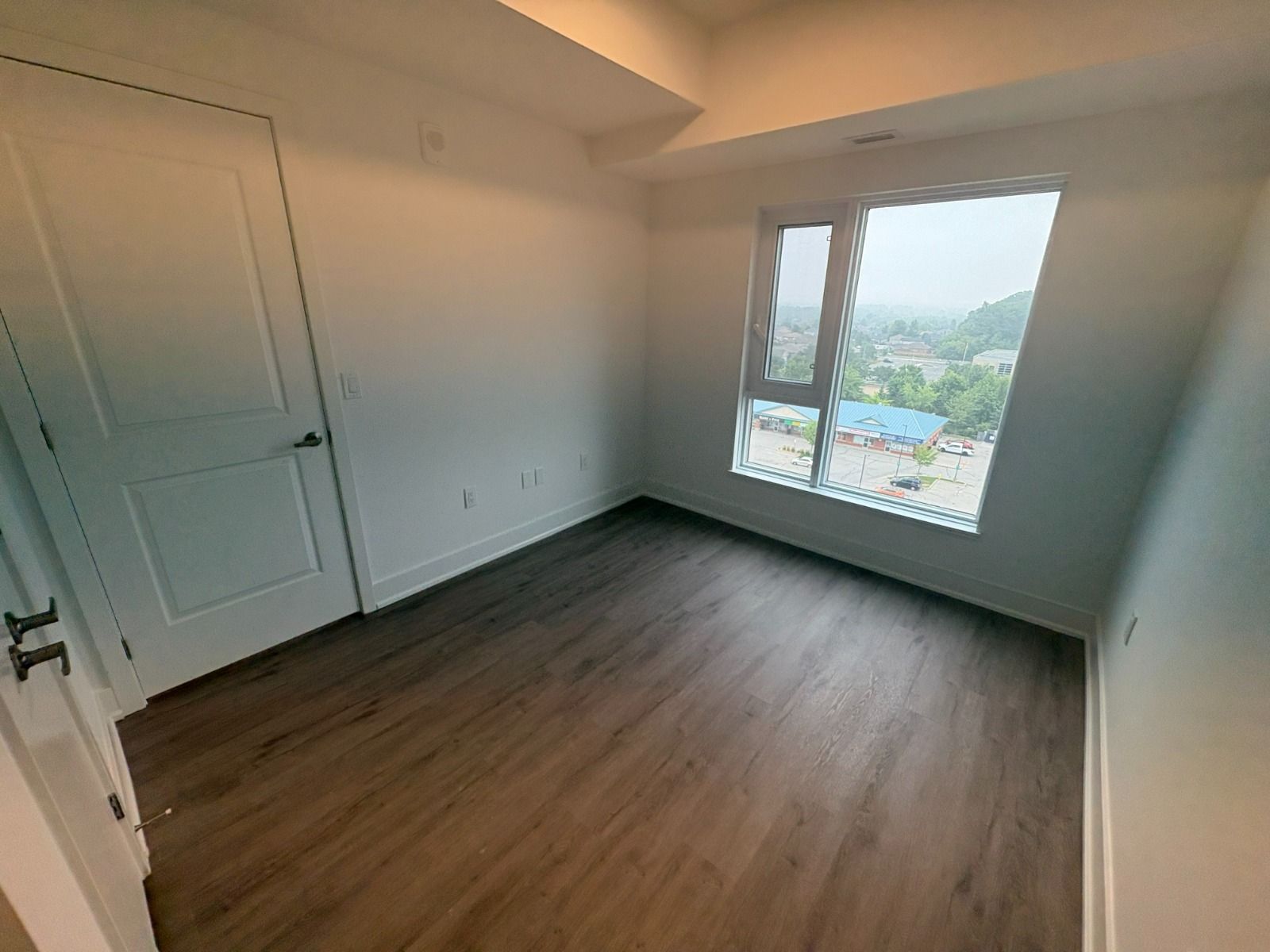 Welcome to the brand-new boutique Ambrose Condos, a contemporary mid-rise development in the heart of West Brant, Brantford. This modern 1 Bedroom + Den + Study, 2 Bathroom unit features 642 sq ft of interior living space plus a 57 sq ft private balcony. Enjoy an open-concept layout with upscale finishes including quartz countertops, stainless steel appliances (fridge, stove, dishwasher, microwave), and white washer/dryer. The primary bedroom includes a private ensuite with a glass-enclosed shower, while the main bath offers a deep soaker tub with ceramic accents. Additional features include laminate flooring throughout, 9-ft ceilings, large windows, in-suite laundry, a storage locker, and a dedicated parking space. The den and study provide flexible space for working from home or added living area. Residents enjoy access to premium amenities: a fitness centre, yoga studio, party room, connectivity lounge, and outdoor athletic area on Level 6, plus concierge service, dog wash station, bike storage/repair room, and parcel room on Level 1. Ideally located near Laurier University, Assumption College, VIA Rail, Elements Casino, Wayne Gretzky Sports Centre, and close to schools, parks, trails, shopping, dining, and major commuter routes.