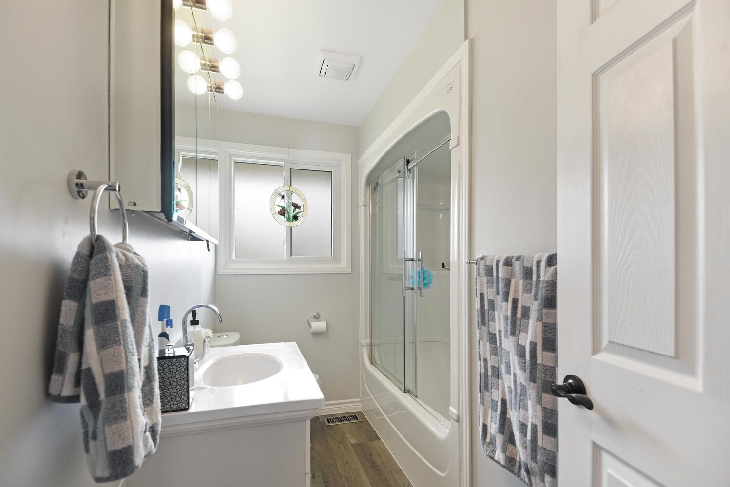 Your new home awaits! 1343 Borden Cres, a well maintained raised bungalow in Brockville's popular North end, close to public and private schools, shopping, parks, churches, restaurants and a quick drive to the 401 for commuting. A forced air gas furnace and a gas fireplace make heating the house economical, and central AC to keep it cool in the summer, and the whole house is carpet free. The main floor has 3 bedrooms, a 4 piece bathroom and an open dining/living room and kitchen area perfect for entertaining. On the lower level you have a family room with a gas fireplace, a 3 piece bathroom, a den, office/bedroom, a workshop and laundry room with a walkup to the back yard. All new light fixtures on the main level as well as some on the lower, wi-fi switches for some of the lights for Alexa/Google to control. In the back yard you have a garden shed with lots of room for your mower and yard equipment, fenced on 3 sides and a paved driveway with parking for 3 cars. This home is ready and waiting for your family! Come and see it before it's gone!