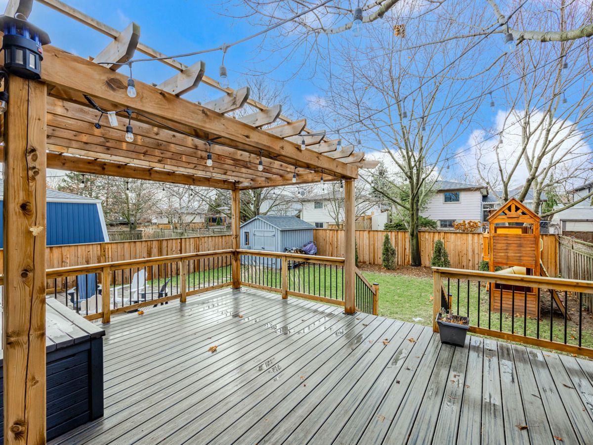 Stunning and spacious 4 BR, 3 Bathroom, 4 Level Side/split in Burlington's coveted Tyandaga neighbourhood in a private and low traffic area! Tastefully updated and freshly painted, this home is simply move in ready & perfect for a new or growing family. Large principal rooms and gleaming hardwoods enhance the main floor including its beautiful kitchen with stainless steel appliances, lots of cupboards and storage space and W/O to the gorgeous composite deck with pergola from the dining room sliding door. Upper Level offers 3 bedrooms and an updated 5 piece semi-ensuite bath for the Primary. Main level includes a 4th bedroom, 2 piece powder and lovely family room with fireplace and direct access from sliding door to the extensively renovated rear yard. Lower level (half above grade) offers a large rec room or 5th bedroom, 3 piece bath and laundry room. Bonus oversized crawl space for additional storage! Attached single gar with direct inside access plus double car parking on drive. Over $75,000 spent on the spectacular rear yard with new grass, patio stones, composite deck, pergola and custom 10x10 storage shed. Fully mature front and rear with large trees and privacy. Close to everything including the Tyandaga Golf Course, TyandagaTennis Club, forest trails, 5 mins walk to playgrounds, 5 mins drive to gyms, 7 mins drive to Burlington GO Train, 10 mins drive to Burlington lakefront with excellent restaurants, cafes, grocery and so much more!