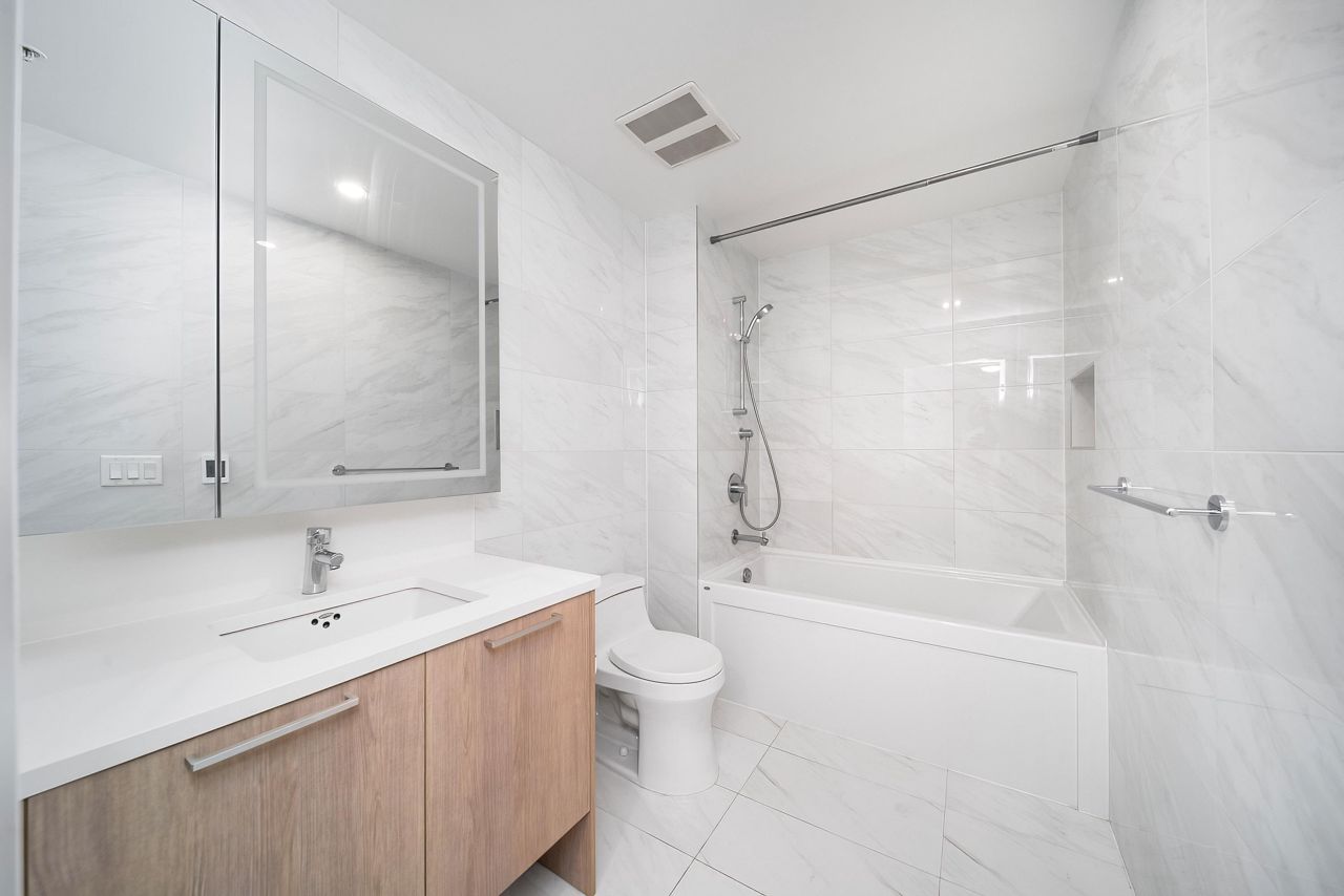 Welcome to Sun Tower 2. This one bed and one bath unit comes with 1 parking and 1 locker. Location in the heart of Metro town in Burnaby . One minute walk to sky train station and bus station. Steps away from Metrotown mall, Crystal mall, multiple restaurants, and entertainment. Sleek and beautiful designed kitchen with Bosch appliances and multi-function shelf. Close to 24000 sf Solaris Club w/ acces to fully equipped gym, indoor swimming poor , hot tub, badminton court , golf simulator, party room and more. Don't miss out, perfect for investment for first time buyer or owner! Call now!