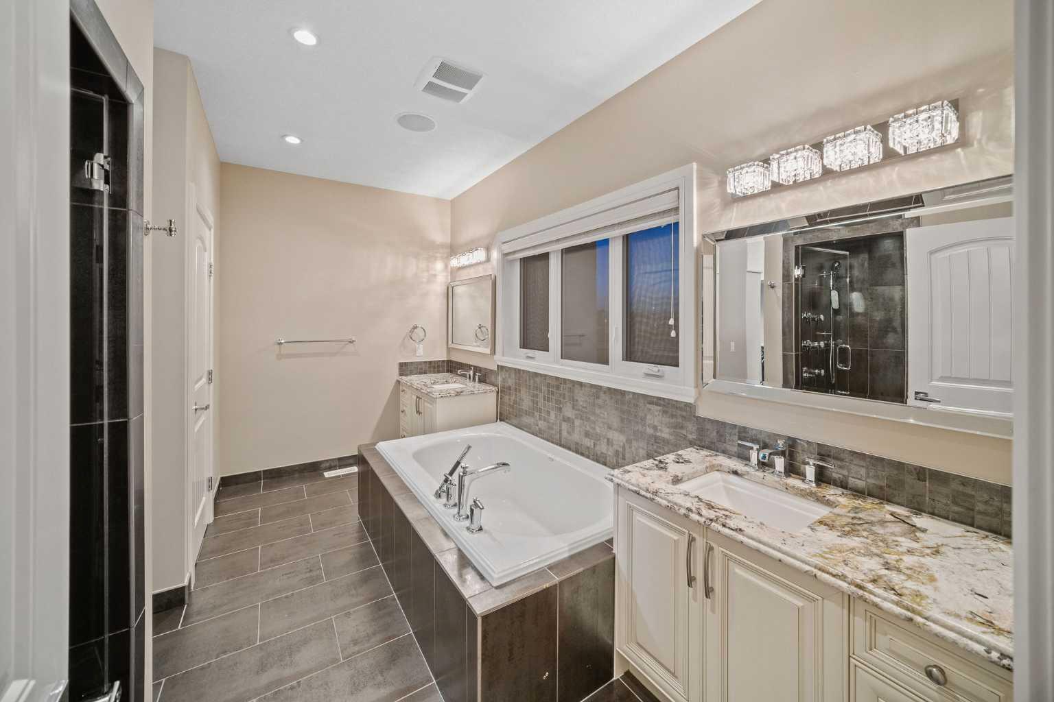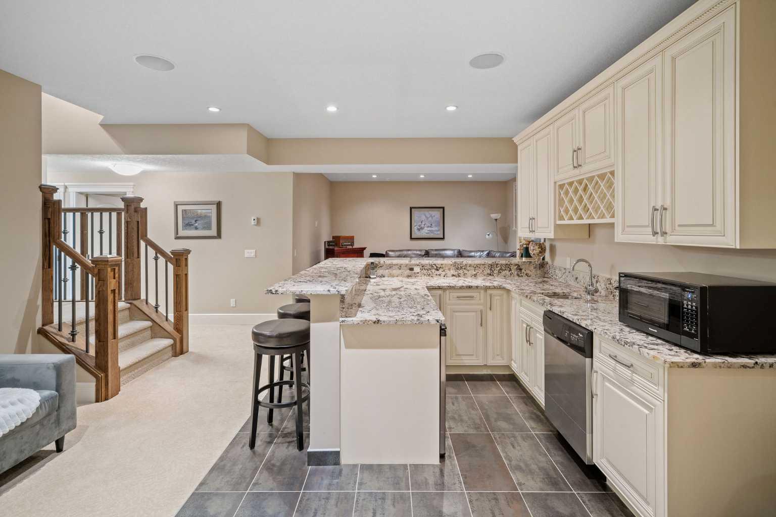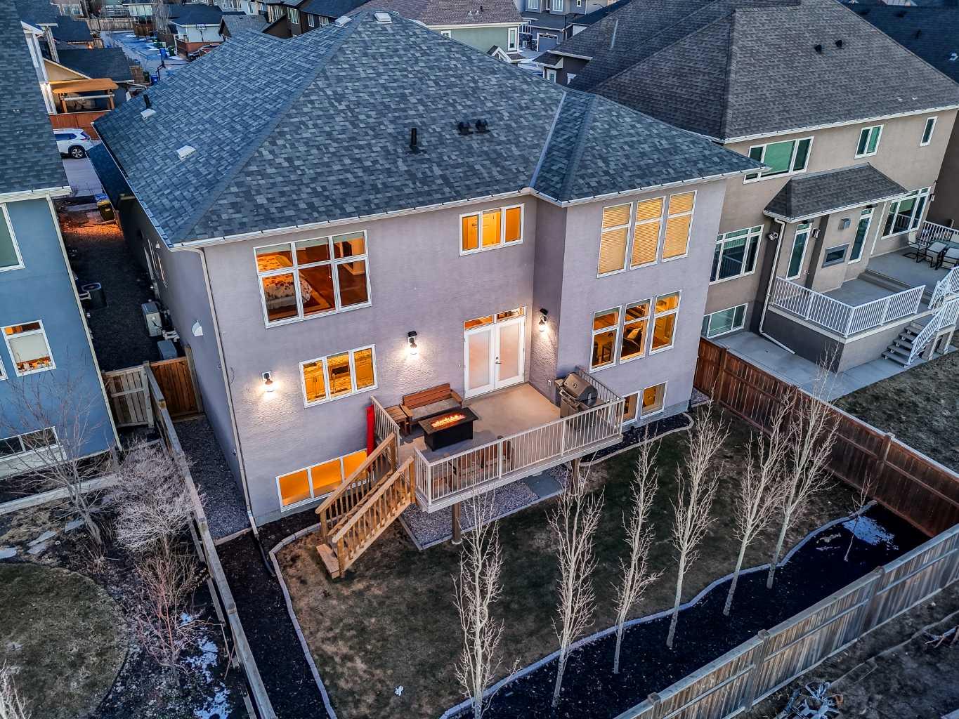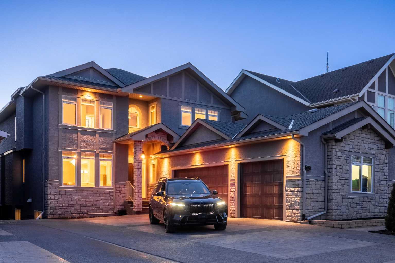 Welcome to this showstopping, custom-built estate Boasting nearly 5,000 sq. ft. of meticulously designed living space, this six-bedroom masterpiece is a true showstopper, offering top of the line finishes, built in speakers, in floor heating, impeccable craftsmanship, and exceptional attention to detail throughout. From the moment you step inside, you're greeted by soaring 9-foot ceilings, rich hardwood flooring, and elegant custom millwork that sets the tone for the entire home. The main floor features a private office, a cozy family room, and a formal dining area perfect for entertaining. The heart of the home is the breathtaking chef’s kitchen, outfitted with solid painted and glazed maple cabinetry, full granite slab countertops and backsplash, and premium built in THERMADOR appliances, including dual ovens and a 5 burner gas cooktop. Soft close drawers and cabinets complete this luxurious culinary space. The kitchen seamlessly opens into a bright dining nook and a spacious living room with dramatic vaulted ceilings and a warm gas fireplace, an ideal setting for family gatherings or movie nights. Just off the kitchen, you'll find a pantry and a functional mudroom with custom built in coat and shoe storage, offering access to the oversized, heated triple car garage. A stylish powder room is conveniently located nearby. Upstairs, the expansive primary retreat easily accommodates a California king and features a spa inspired ensuite with dual vanities, an oversize jetted tub, a steam shower, and a generous walk in closet. The upper level also includes a dedicated laundry room with built in cabinets and a sink, plus three additional bedrooms, each with walk in closets. One of these rooms, accessed through elegant French doors, can serve as the perfect bonus room. A beautifully appointed full bathroom with dual sinks completes the upper level. The fully finished basement is an entertainer’s dream, featuring a custom wet bar with bar fridge, dishwasher, and built in wine rack. The lower level offers a spacious rec room perfect for a home gym, a cozy family lounge, two additional bedrooms, and another full bathroom with dual sinks. Step outside to your private backyard oasis, beautifully landscaped with a spacious patio ideal for summer evenings and outdoor gatherings. Dual Zone furnaces, in floor heating, and dual zone central A/C provide year round comfort and efficiency. Additional features, prewired for a home security system, whole house water filtration and softener with RO system in kitchen. This home is everything you’ve been looking for, impeccably maintained, move-in ready, and located just steps from some of Calgary’s top-rated schools including webber academy and St Joan of arc, parks, and premium shopping. Homes of this caliber and in this location are incredibly rare. *Some Photos Virtually Staged*