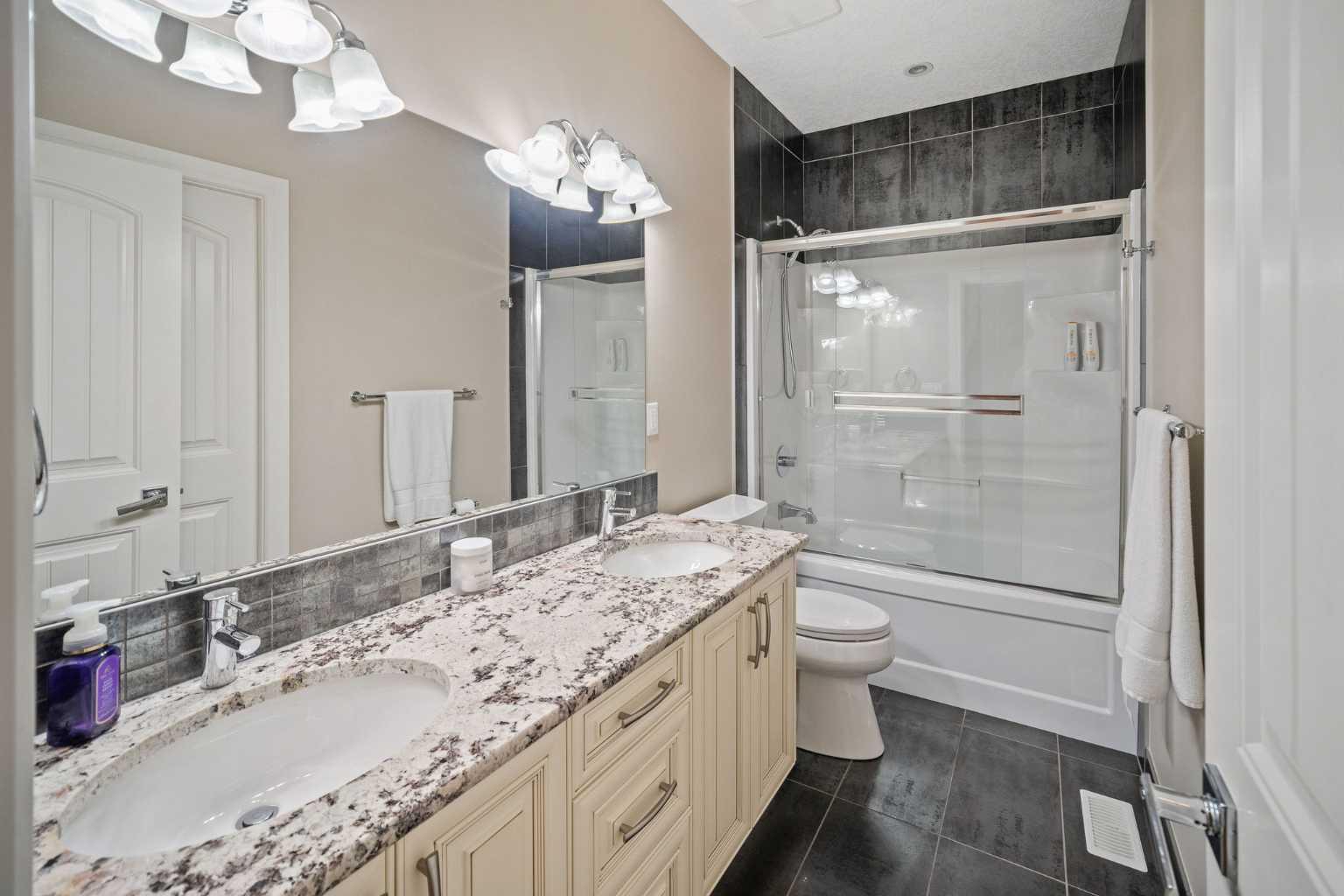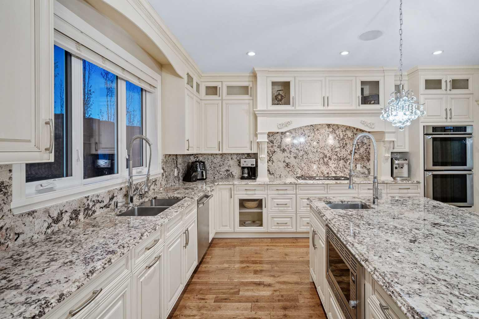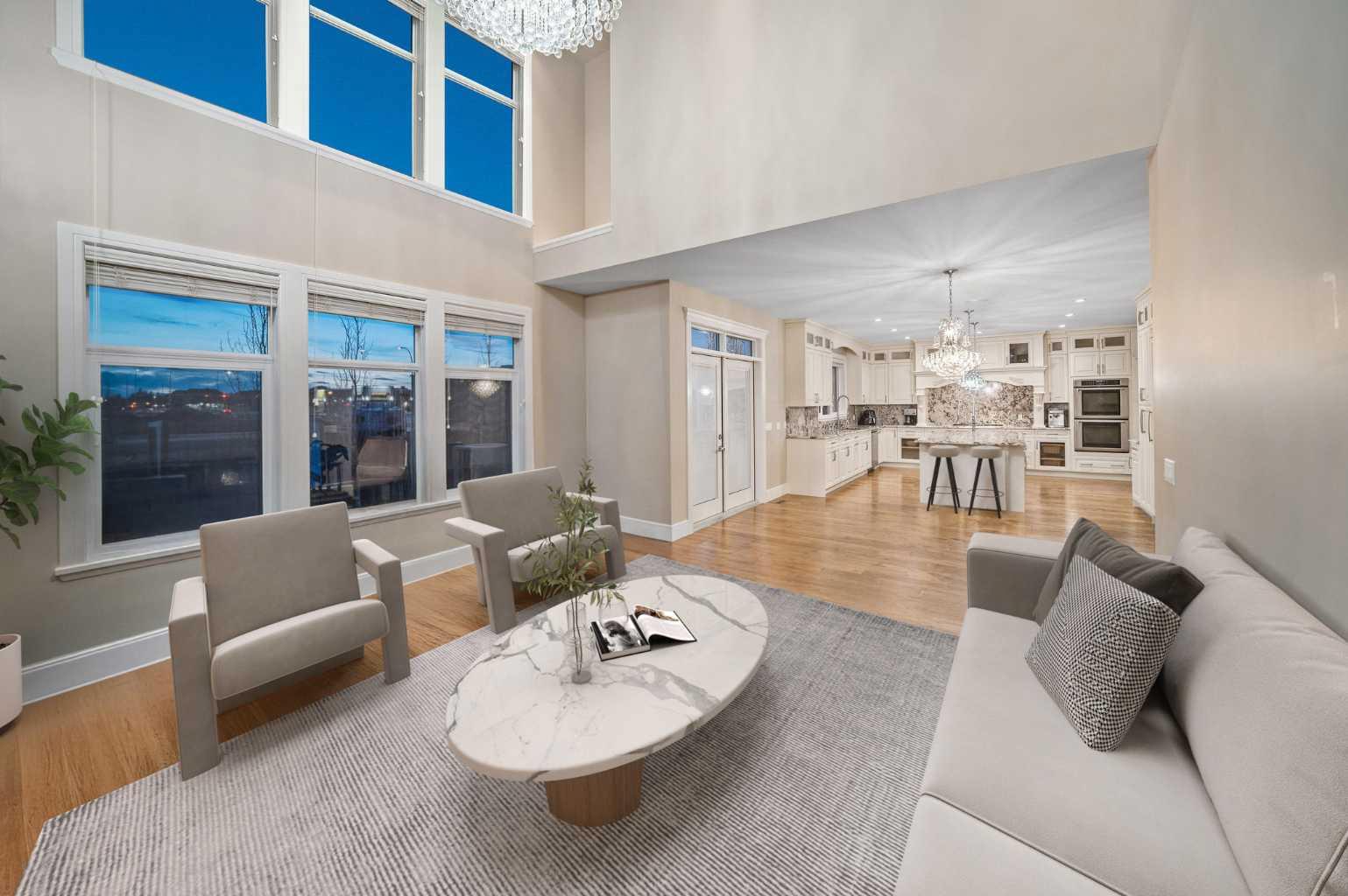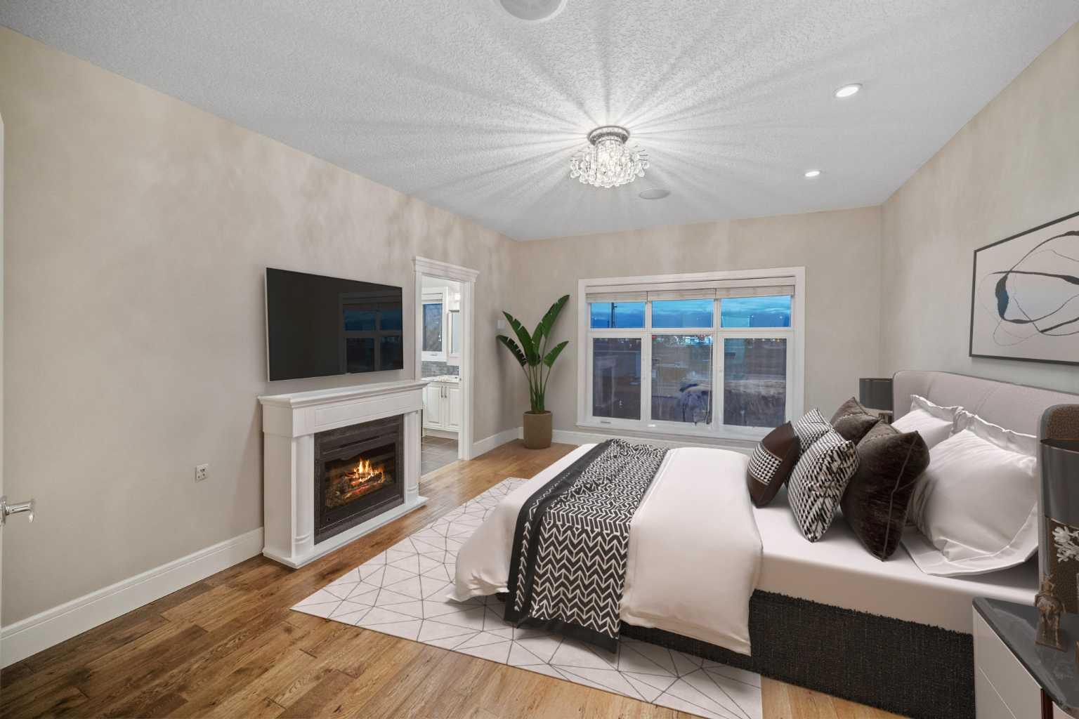 Welcome to this showstopping, custom-built estate Boasting nearly 5,000 sq. ft. of meticulously designed living space, this six-bedroom masterpiece is a true showstopper, offering top of the line finishes, built in speakers, in floor heating, impeccable craftsmanship, and exceptional attention to detail throughout. From the moment you step inside, you're greeted by soaring 9-foot ceilings, rich hardwood flooring, and elegant custom millwork that sets the tone for the entire home. The main floor features a private office, a cozy family room, and a formal dining area perfect for entertaining. The heart of the home is the breathtaking chef’s kitchen, outfitted with solid painted and glazed maple cabinetry, full granite slab countertops and backsplash, and premium built in THERMADOR appliances, including dual ovens and a 5 burner gas cooktop. Soft close drawers and cabinets complete this luxurious culinary space. The kitchen seamlessly opens into a bright dining nook and a spacious living room with dramatic vaulted ceilings and a warm gas fireplace, an ideal setting for family gatherings or movie nights. Just off the kitchen, you'll find a pantry and a functional mudroom with custom built in coat and shoe storage, offering access to the oversized, heated triple car garage. A stylish powder room is conveniently located nearby. Upstairs, the expansive primary retreat easily accommodates a California king and features a spa inspired ensuite with dual vanities, an oversize jetted tub, a steam shower, and a generous walk in closet. The upper level also includes a dedicated laundry room with built in cabinets and a sink, plus three additional bedrooms, each with walk in closets. One of these rooms, accessed through elegant French doors, can serve as the perfect bonus room. A beautifully appointed full bathroom with dual sinks completes the upper level. The fully finished basement is an entertainer’s dream, featuring a custom wet bar with bar fridge, dishwasher, and built in wine rack. The lower level offers a spacious rec room perfect for a home gym, a cozy family lounge, two additional bedrooms, and another full bathroom with dual sinks. Step outside to your private backyard oasis, beautifully landscaped with a spacious patio ideal for summer evenings and outdoor gatherings. Dual Zone furnaces, in floor heating, and dual zone central A/C provide year round comfort and efficiency. Additional features, prewired for a home security system, whole house water filtration and softener with RO system in kitchen. This home is everything you’ve been looking for, impeccably maintained, move-in ready, and located just steps from some of Calgary’s top-rated schools including webber academy and St Joan of arc, parks, and premium shopping. Homes of this caliber and in this location are incredibly rare. *Some Photos Virtually Staged*