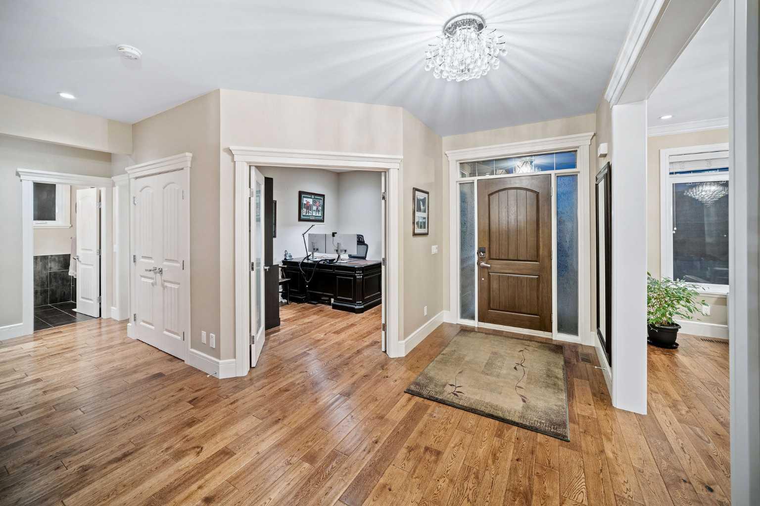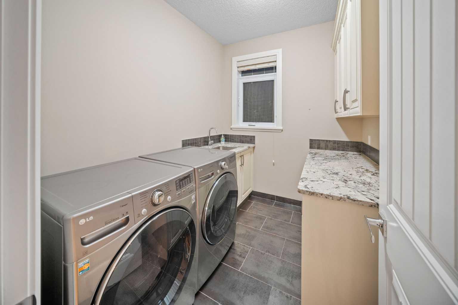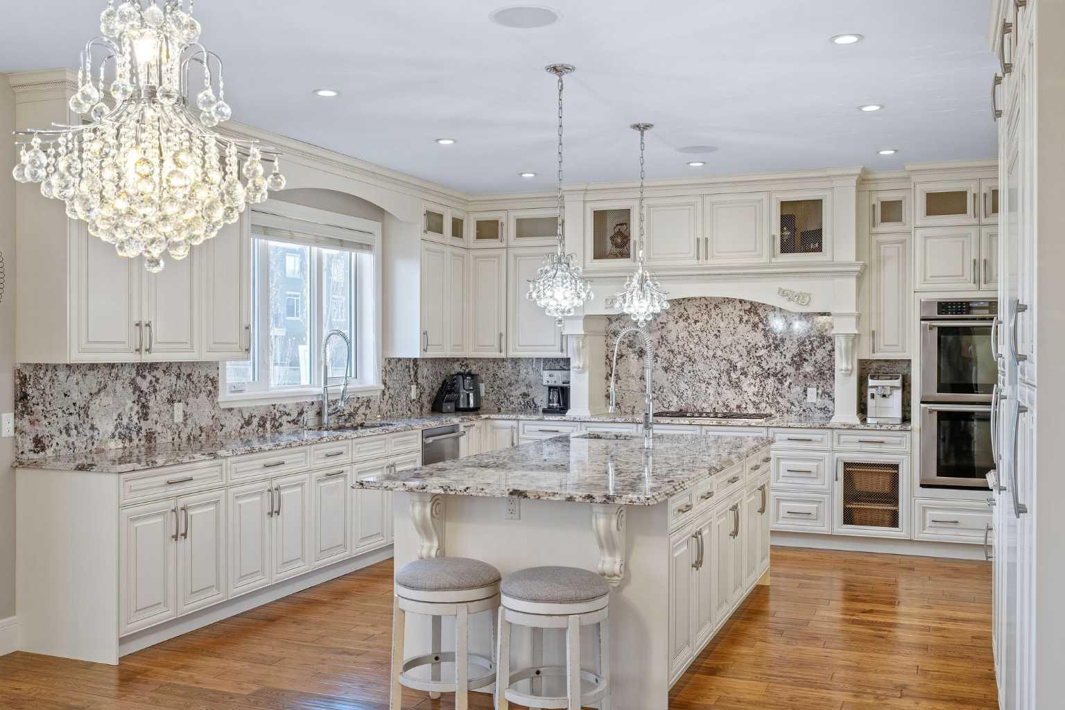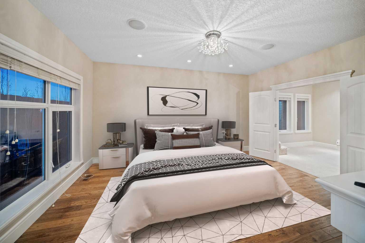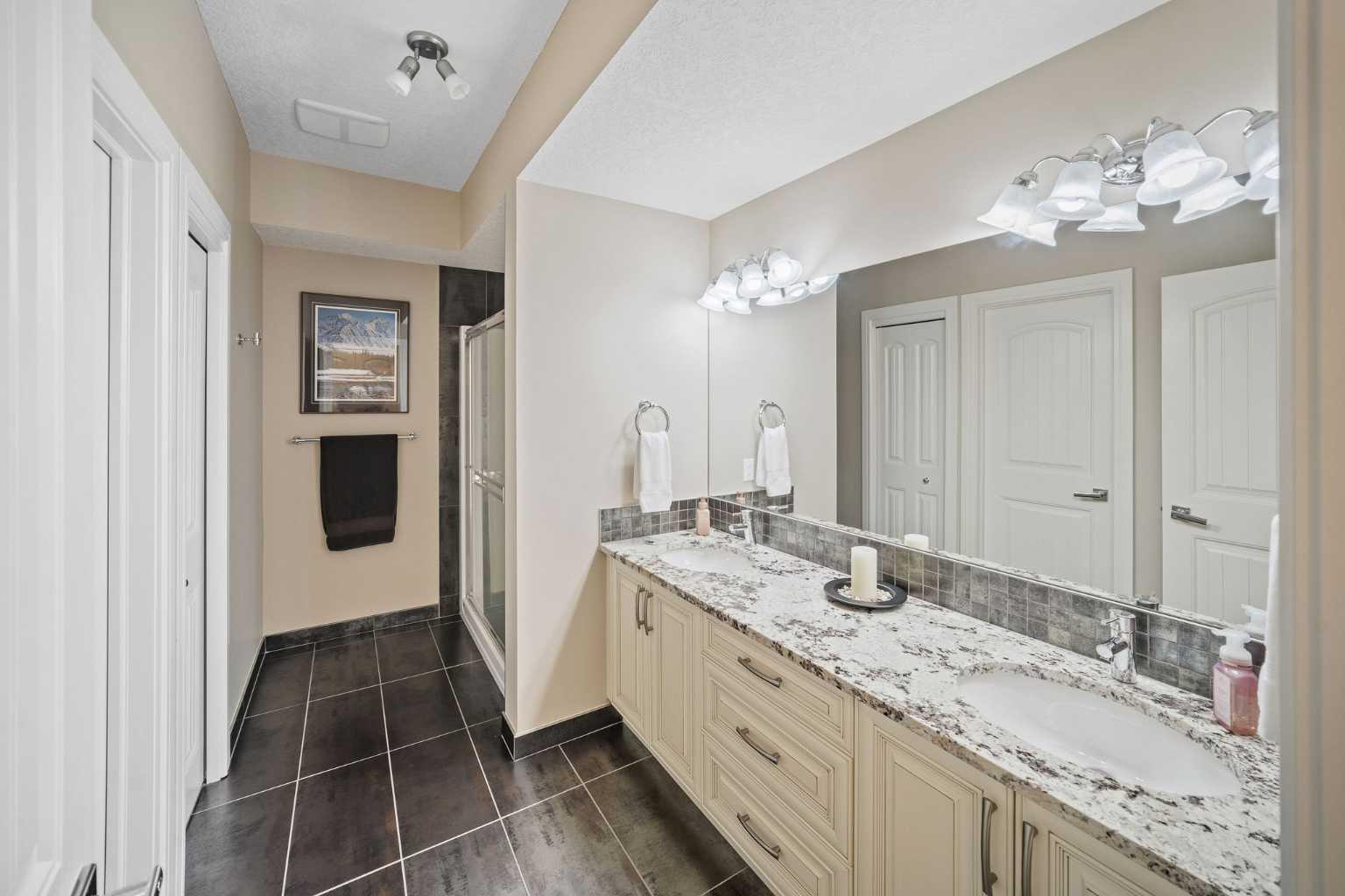 Welcome to this showstopping, custom-built estate Boasting nearly 5,000 sq. ft. of meticulously designed living space, this six-bedroom masterpiece is a true showstopper, offering top of the line finishes, built in speakers, in floor heating, impeccable craftsmanship, and exceptional attention to detail throughout. From the moment you step inside, you're greeted by soaring 9-foot ceilings, rich hardwood flooring, and elegant custom millwork that sets the tone for the entire home. The main floor features a private office, a cozy family room, and a formal dining area perfect for entertaining. The heart of the home is the breathtaking chef’s kitchen, outfitted with solid painted and glazed maple cabinetry, full granite slab countertops and backsplash, and premium built in THERMADOR appliances, including dual ovens and a 5 burner gas cooktop. Soft close drawers and cabinets complete this luxurious culinary space. The kitchen seamlessly opens into a bright dining nook and a spacious living room with dramatic vaulted ceilings and a warm gas fireplace, an ideal setting for family gatherings or movie nights. Just off the kitchen, you'll find a pantry and a functional mudroom with custom built in coat and shoe storage, offering access to the oversized, heated triple car garage. A stylish powder room is conveniently located nearby. Upstairs, the expansive primary retreat easily accommodates a California king and features a spa inspired ensuite with dual vanities, an oversize jetted tub, a steam shower, and a generous walk in closet. The upper level also includes a dedicated laundry room with built in cabinets and a sink, plus three additional bedrooms, each with walk in closets. One of these rooms, accessed through elegant French doors, can serve as the perfect bonus room. A beautifully appointed full bathroom with dual sinks completes the upper level. The fully finished basement is an entertainer’s dream, featuring a custom wet bar with bar fridge, dishwasher, and built in wine rack. The lower level offers a spacious rec room perfect for a home gym, a cozy family lounge, two additional bedrooms, and another full bathroom with dual sinks. Step outside to your private backyard oasis, beautifully landscaped with a spacious patio ideal for summer evenings and outdoor gatherings. Dual Zone furnaces, in floor heating, and dual zone central A/C provide year round comfort and efficiency. Additional features, prewired for a home security system, whole house water filtration and softener with RO system in kitchen. This home is everything you’ve been looking for, impeccably maintained, move-in ready, and located just steps from some of Calgary’s top-rated schools including webber academy and St Joan of arc, parks, and premium shopping. Homes of this caliber and in this location are incredibly rare. *Some Photos Virtually Staged*