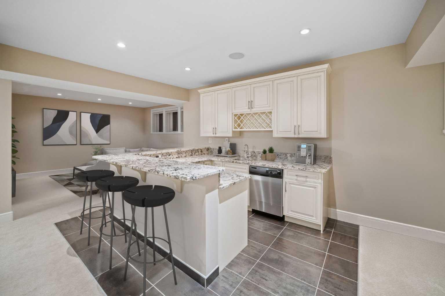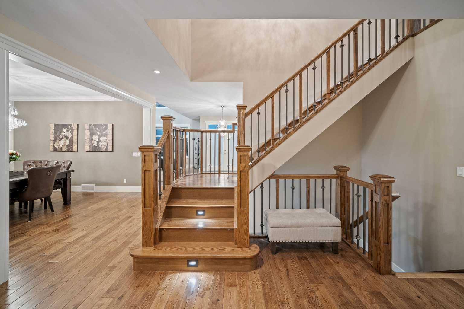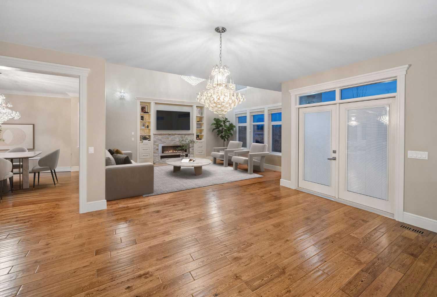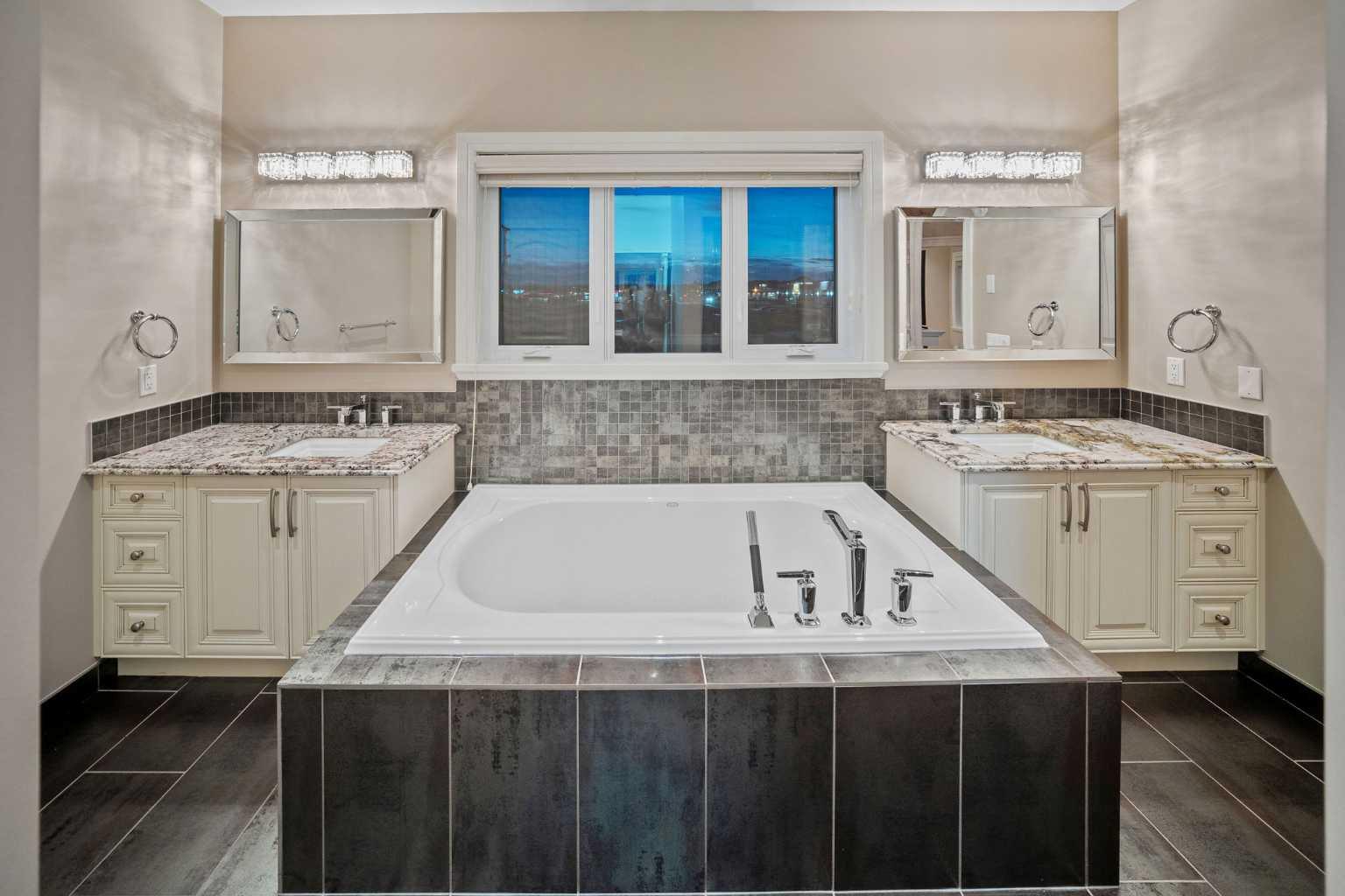 Welcome to this showstopping, custom-built estate Boasting nearly 5,000 sq. ft. of meticulously designed living space, this six-bedroom masterpiece is a true showstopper, offering top of the line finishes, built in speakers, in floor heating, impeccable craftsmanship, and exceptional attention to detail throughout. From the moment you step inside, you're greeted by soaring 9-foot ceilings, rich hardwood flooring, and elegant custom millwork that sets the tone for the entire home. The main floor features a private office, a cozy family room, and a formal dining area perfect for entertaining. The heart of the home is the breathtaking chef’s kitchen, outfitted with solid painted and glazed maple cabinetry, full granite slab countertops and backsplash, and premium built in THERMADOR appliances, including dual ovens and a 5 burner gas cooktop. Soft close drawers and cabinets complete this luxurious culinary space. The kitchen seamlessly opens into a bright dining nook and a spacious living room with dramatic vaulted ceilings and a warm gas fireplace, an ideal setting for family gatherings or movie nights. Just off the kitchen, you'll find a pantry and a functional mudroom with custom built in coat and shoe storage, offering access to the oversized, heated triple car garage. A stylish powder room is conveniently located nearby. Upstairs, the expansive primary retreat easily accommodates a California king and features a spa inspired ensuite with dual vanities, an oversize jetted tub, a steam shower, and a generous walk in closet. The upper level also includes a dedicated laundry room with built in cabinets and a sink, plus three additional bedrooms, each with walk in closets. One of these rooms, accessed through elegant French doors, can serve as the perfect bonus room. A beautifully appointed full bathroom with dual sinks completes the upper level. The fully finished basement is an entertainer’s dream, featuring a custom wet bar with bar fridge, dishwasher, and built in wine rack. The lower level offers a spacious rec room perfect for a home gym, a cozy family lounge, two additional bedrooms, and another full bathroom with dual sinks. Step outside to your private backyard oasis, beautifully landscaped with a spacious patio ideal for summer evenings and outdoor gatherings. Dual Zone furnaces, in floor heating, and dual zone central A/C provide year round comfort and efficiency. Additional features, prewired for a home security system, whole house water filtration and softener with RO system in kitchen. This home is everything you’ve been looking for, impeccably maintained, move-in ready, and located just steps from some of Calgary’s top-rated schools including webber academy and St Joan of arc, parks, and premium shopping. Homes of this caliber and in this location are incredibly rare. *Some Photos Virtually Staged*