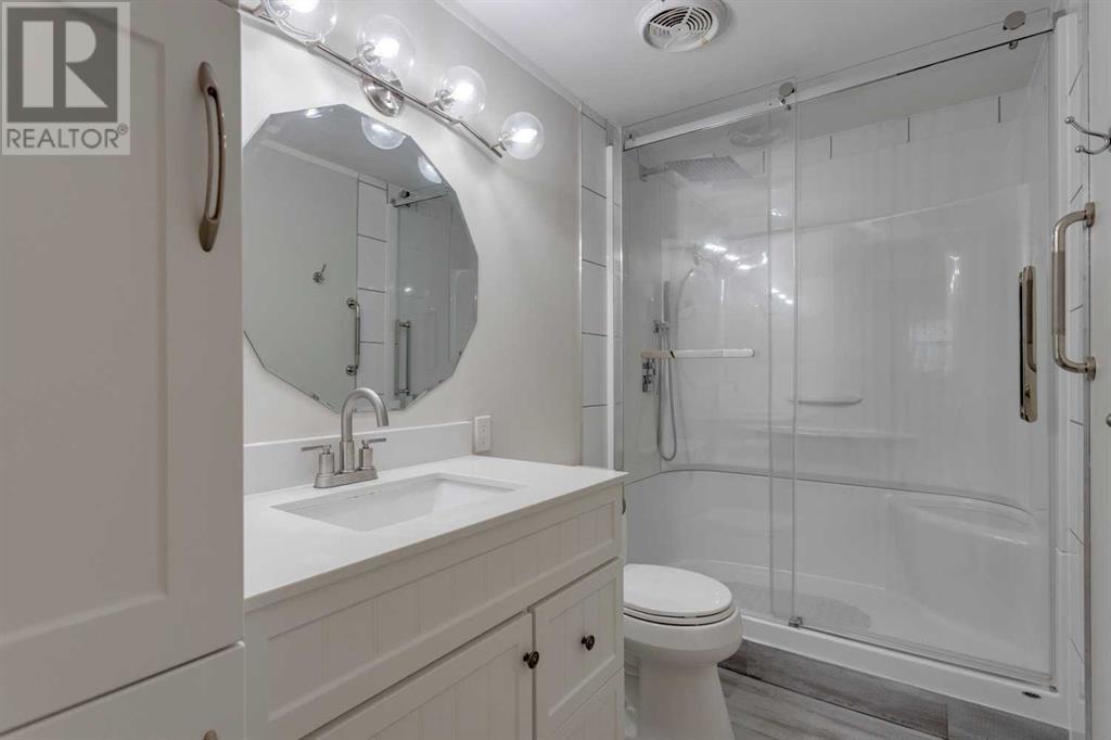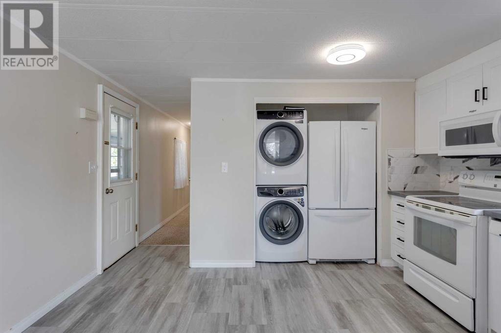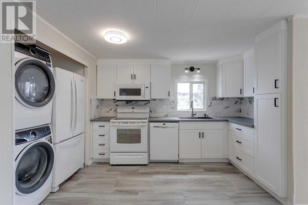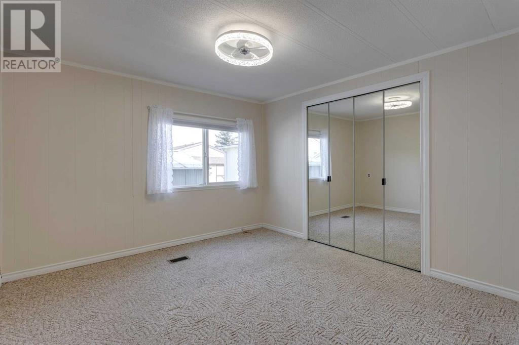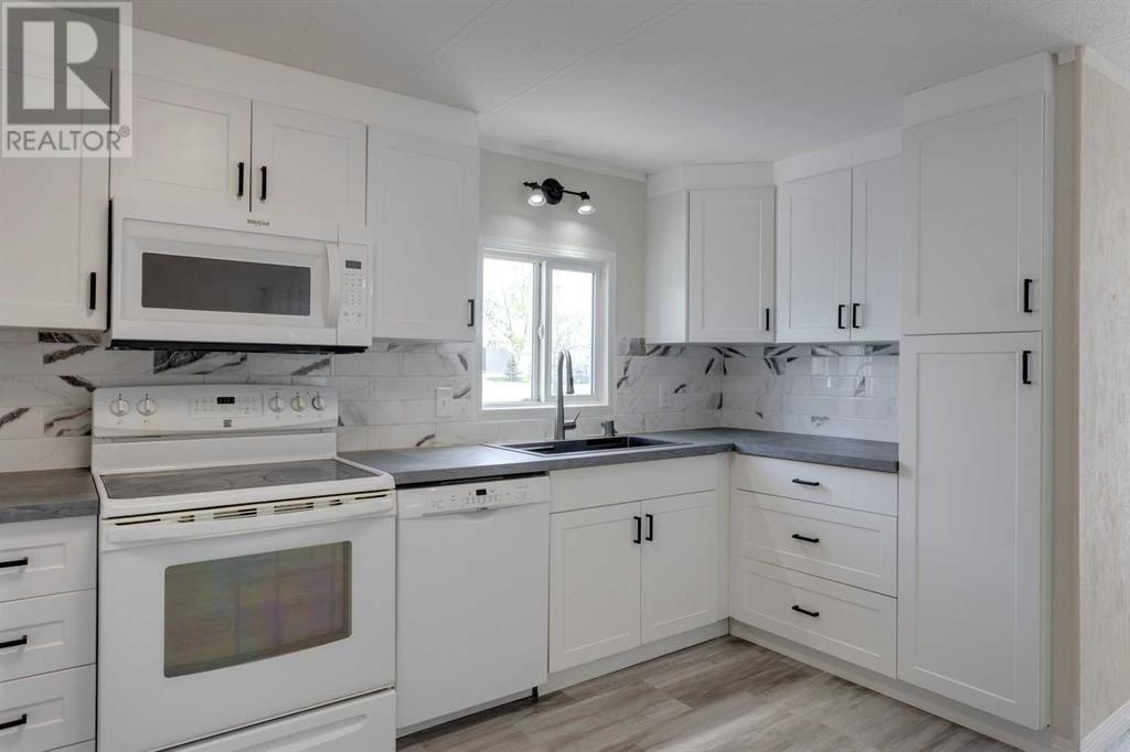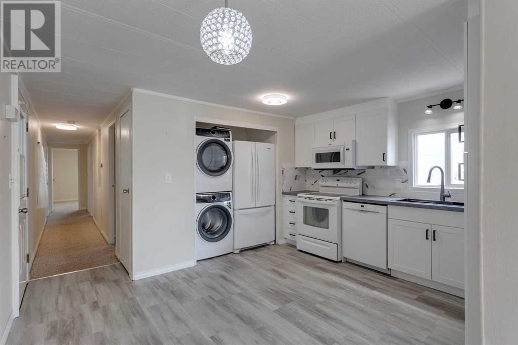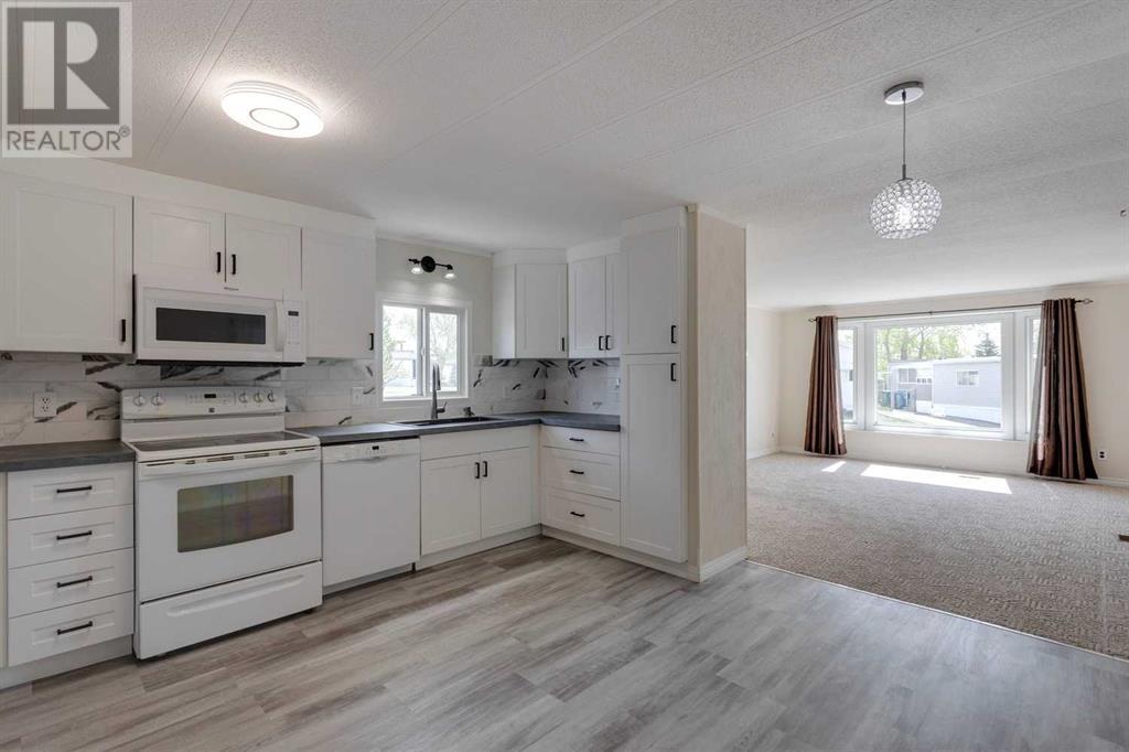 Welcome to Watergrove, a 45+ community situated in the northwest neighbourhood of Arbour Lake. This home is situated in a fantastic location, on a quiet cul-de-sac, three lots over from a beautiful green space with walking paths, and is FULLY FENCED (2024). A quick stroll to the Clubhouse is where you can enjoy year round amenities including an outdoor heated swimming pool, indoor hot tub, and a fitness/games room. Located nearby to shopping in Crowfoot Village, the C-Train, Crowchild Trail and Stoney Trail. This 2 bedroom/1 bathroom home has been meticulously maintained and offers an open floor plan with plenty of natural light. This home has received many updates over the years including vinyl windows, a new furnace igniter and electronic board in February 2021 into an already newer Coleman furnace, new heat tape February 2021, new bottom blocks and re-levelled in October 2021, new roof framing, insulation and roll roofing approximately 12 years ago. In 2024, the home received new interior paint throughout, vinyl plank flooring in the kitchen and bathroom, a complete kitchen and bathroom renovation with walk-in shower, new hot water tank, lighting, all new appliances, with the exception of the stove, and an accessibility ramp. Enjoy your 3-season enclosed porch, tandem driveway with carport, and extra outdoor storage with a large shed. Lot rent includes water, sewer, recycling, garbage pickup and clubhouse amenities - $860/month. Also note that all occupants must be 45 years of age or older in this pet friendly community (2 pets per household, maximum height is 15 inches from the shoulder - management approval). (id:61201)
