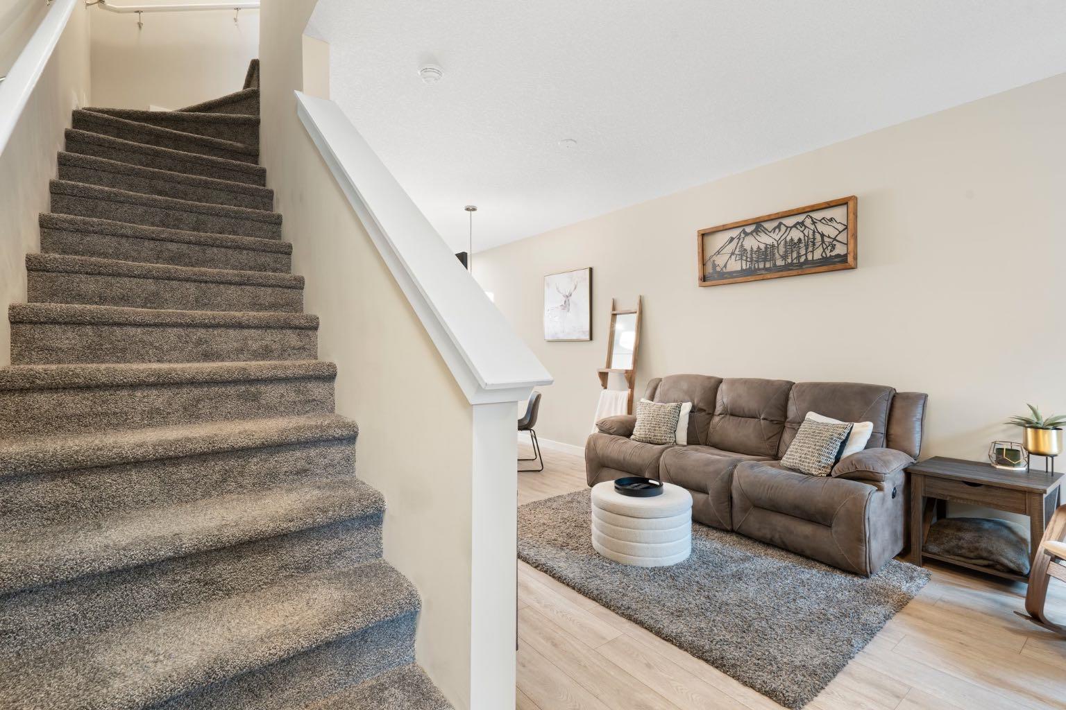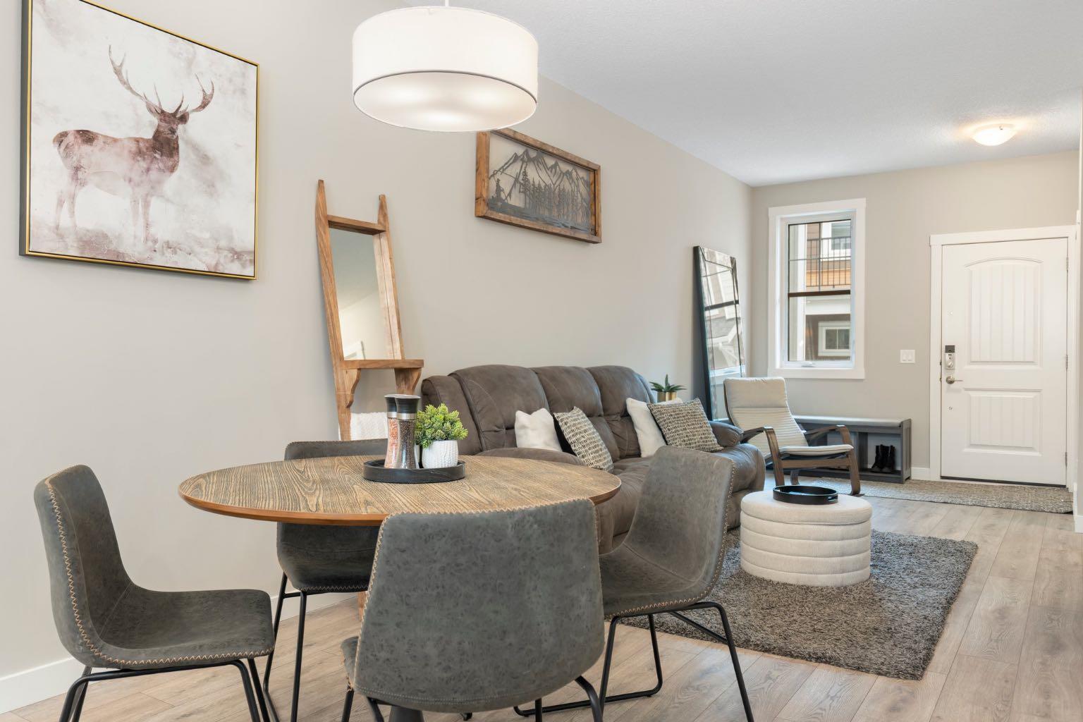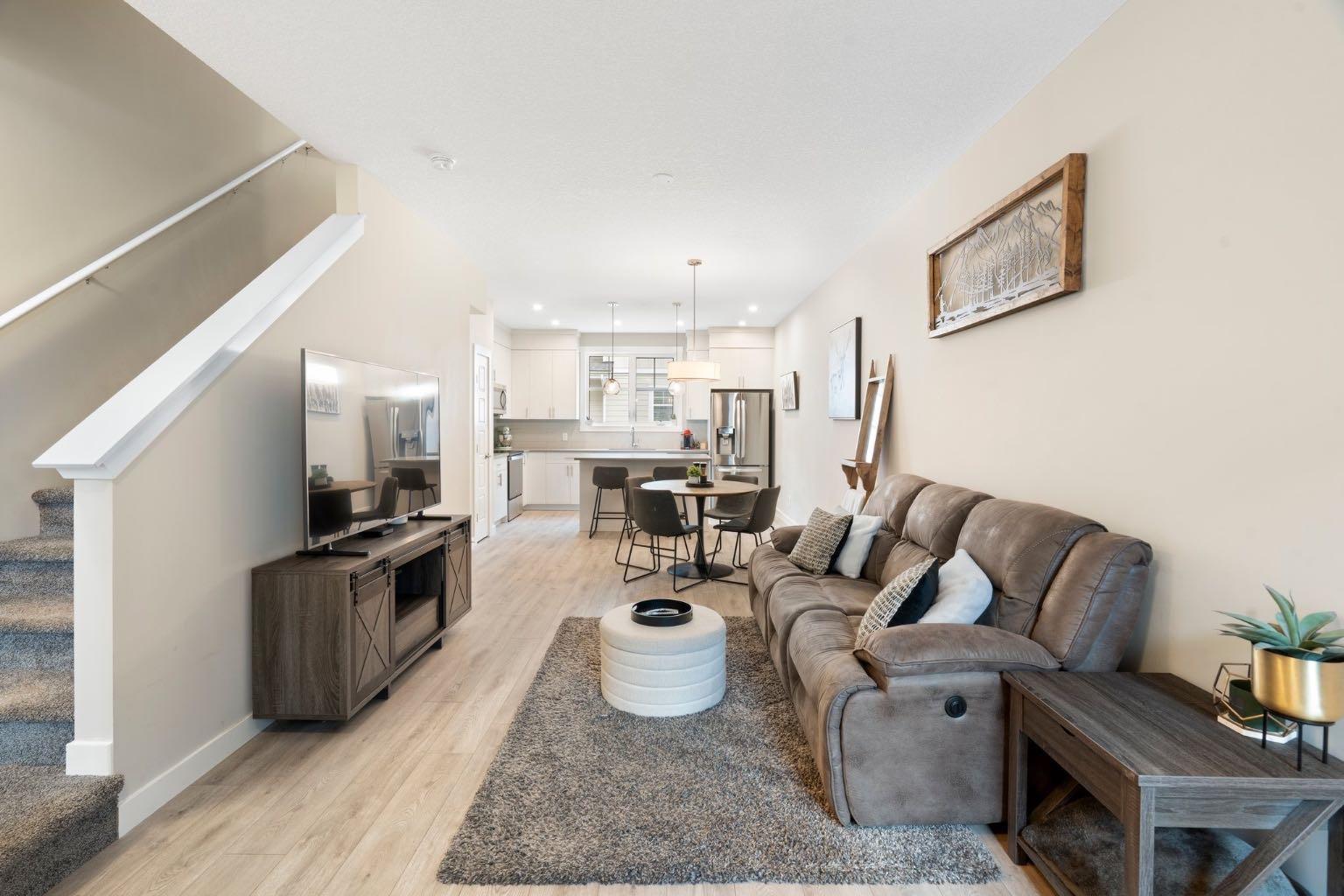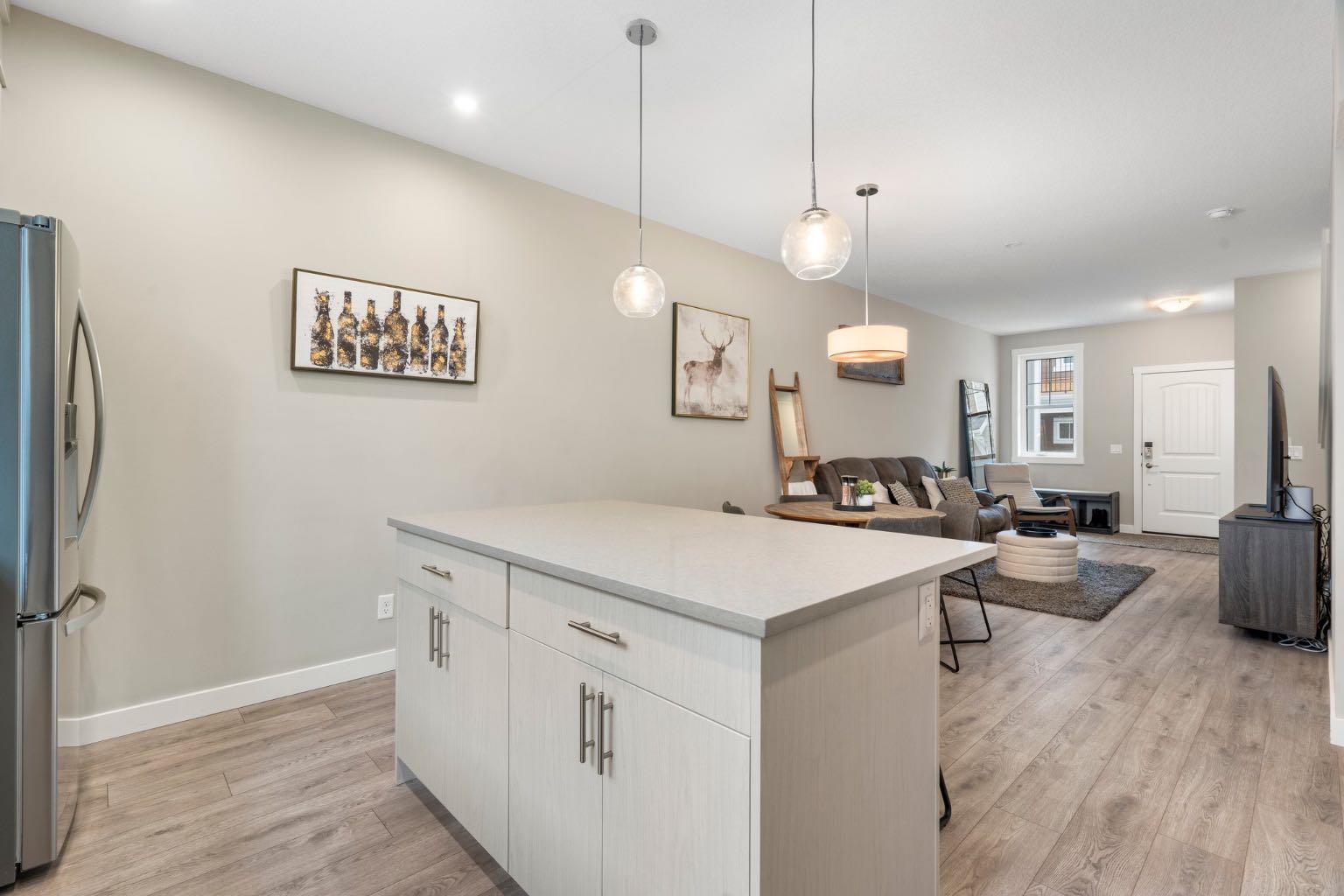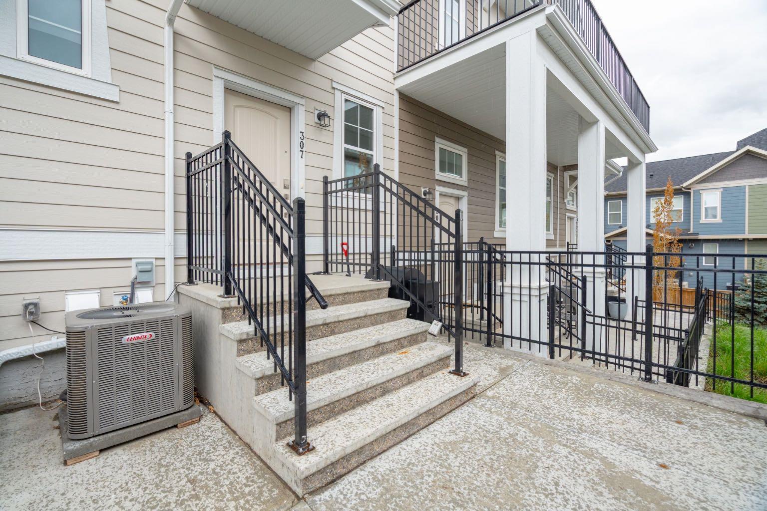 Tucked into the lush, natural beauty of Cranston’s Riverstone, 307 Cranbrook Walk SE invites you to experience a life where elegance, comfort, and community flow together effortlessly. This beautifully appointed townhouse offers more than just a place to live—it’s a space that complements your lifestyle: modern, elevated, and effortlessly functional. Step inside and feel the difference of thoughtful design. The open-concept main floor is as functional as it is stylish—perfect for lively dinner parties, quiet Sunday mornings, or that spontaneous work-from-home day. Your kitchen is a true showpiece, anchored by a spacious island and finished with sleek grey quartz counters, full-height cabinetry with soft-close doors and drawers, and stainless steel appliances (yes, the fridge has a water line!). Whether you’re hosting or unwinding, every corner of this home is dialed into convenience and comfort. Upstairs, discover the coveted double primary bedroom layout—each with its own private ensuite. It’s an ideal setup for roommates, guests, or simply extra space for the life you lead. The upstairs laundry keeps daily routines effortless, while the south-facing fenced patio offers your own private spot to soak up the sun. Need space for your gear or extra vehicles? The double tandem garage has you covered—and your guests will love the convenient visitor parking just steps away. Plus, low monthly condo fees mean you get to enjoy a beautifully maintained complex without stretching your budget. Set within the peaceful embrace of Cranston’s Riverstone—where walking trails, parks, and the Bow River are part of your everyday backdrop—this is the kind of home that makes life feel easy, elevated, and connected. You’ll also have access to Cranston’s Community Hall up the hill which has a splash park, skate park, hockey rink, tennis courts & so much more. This home has it all – don’t miss out. Book your private showing today.