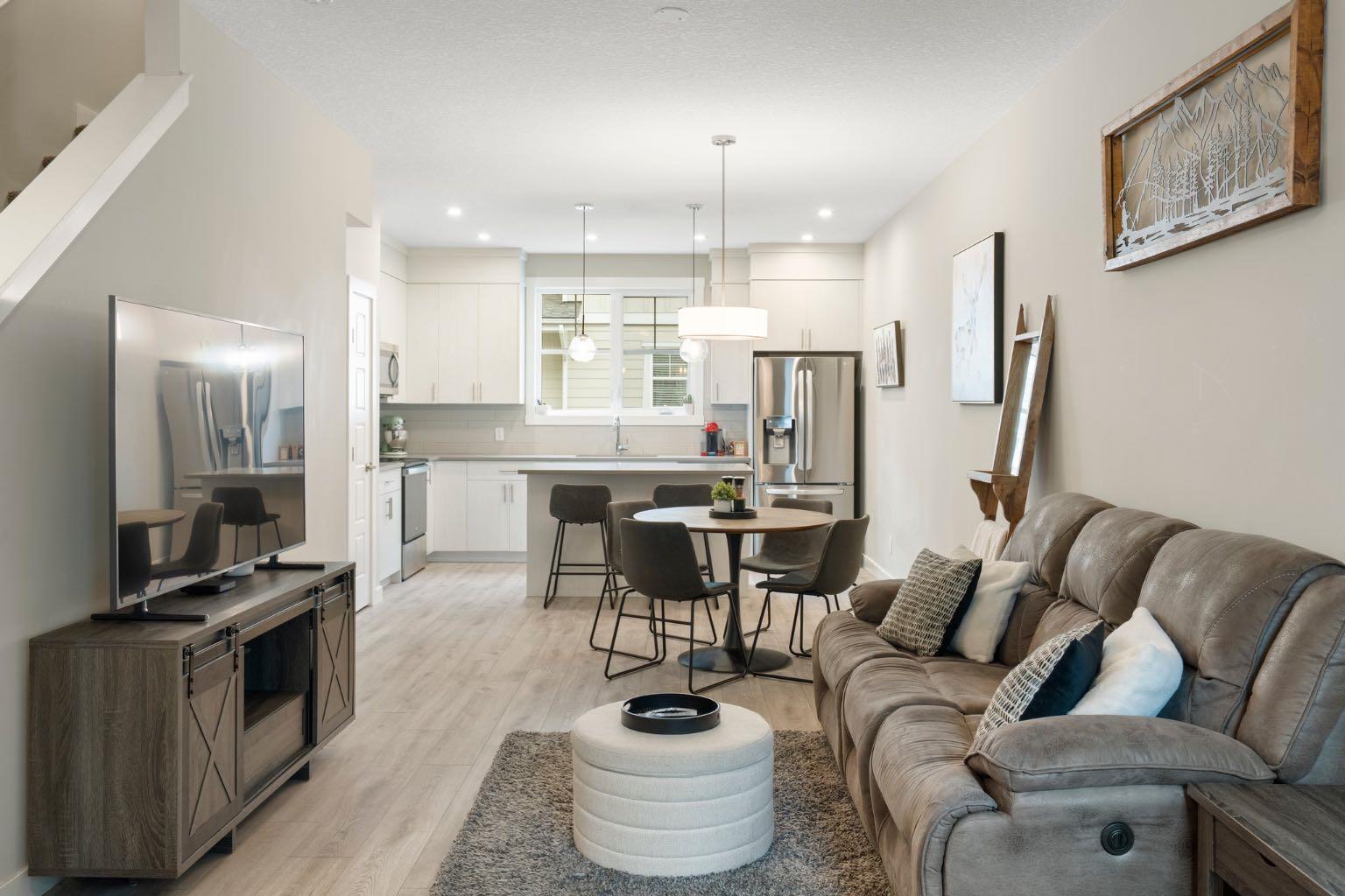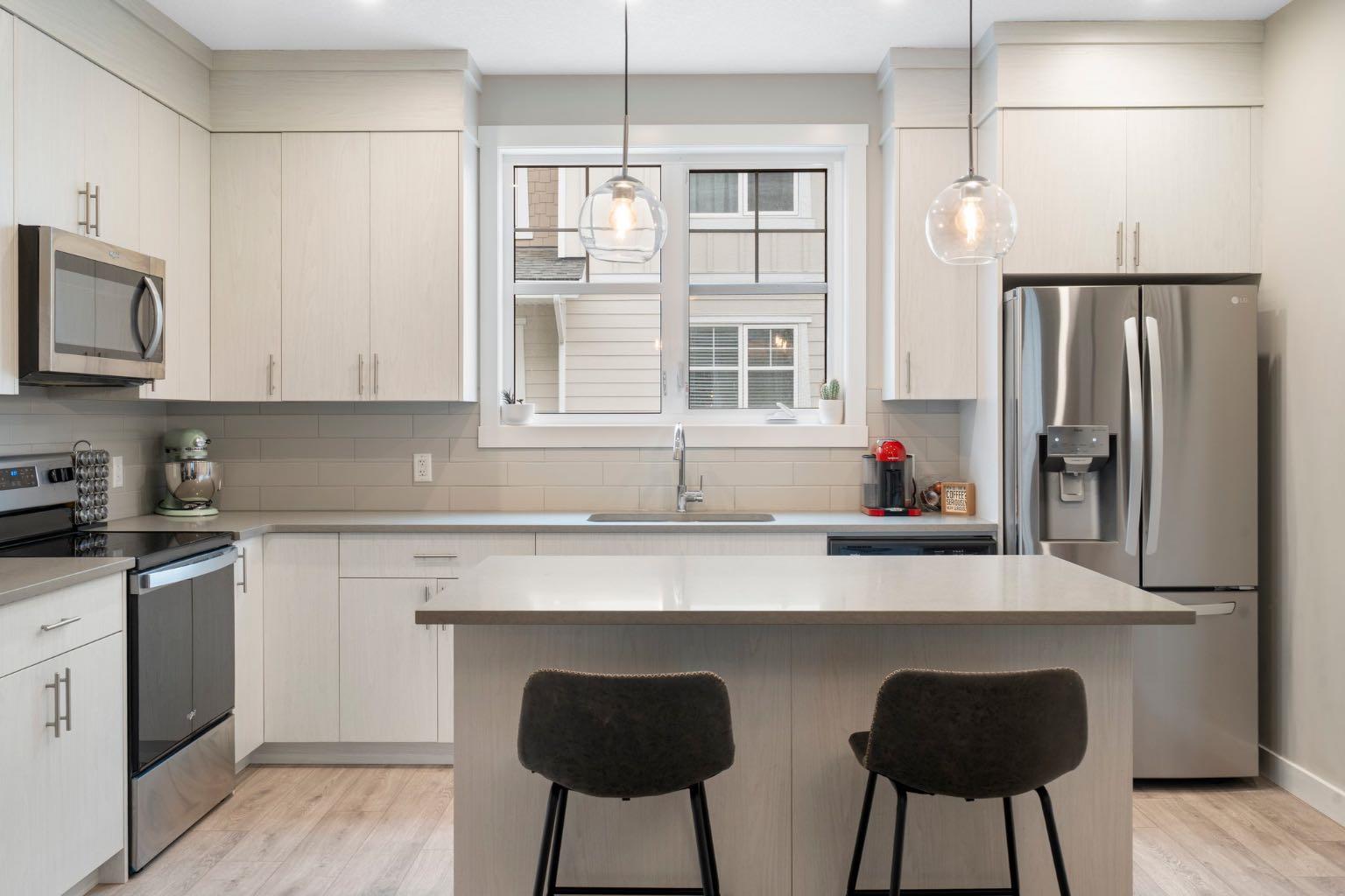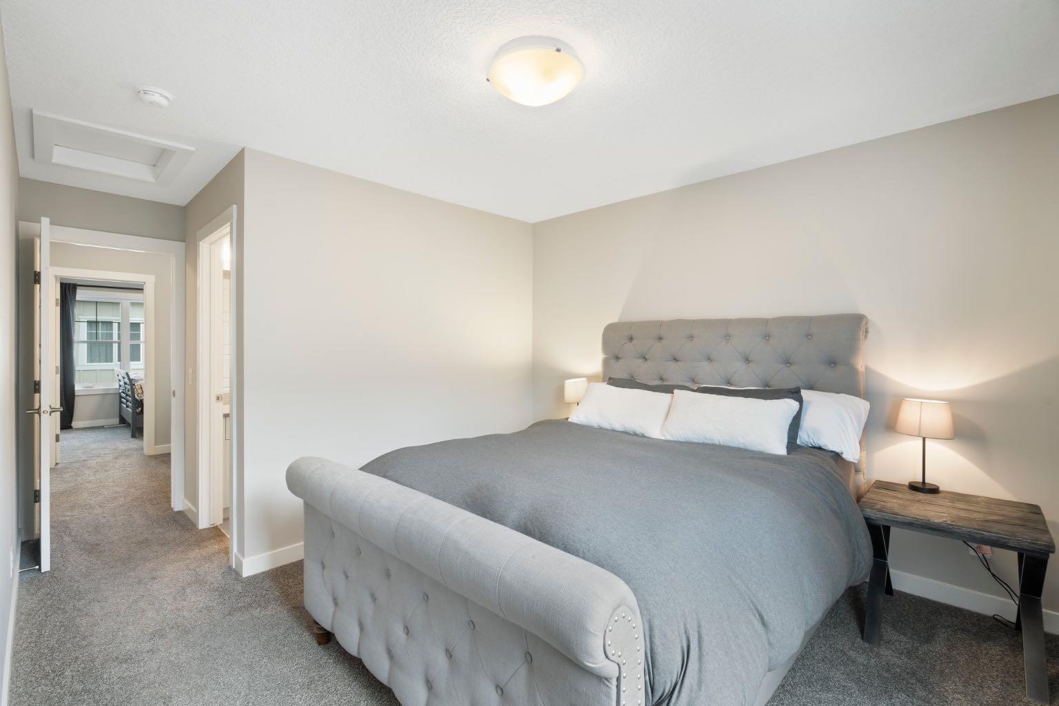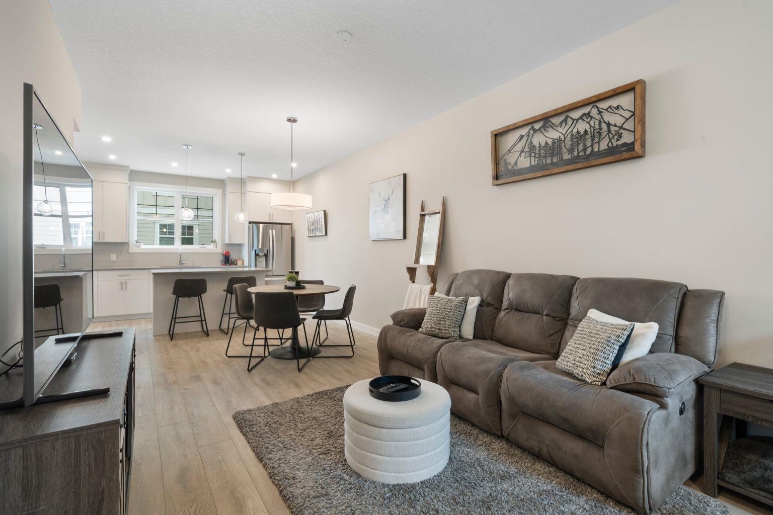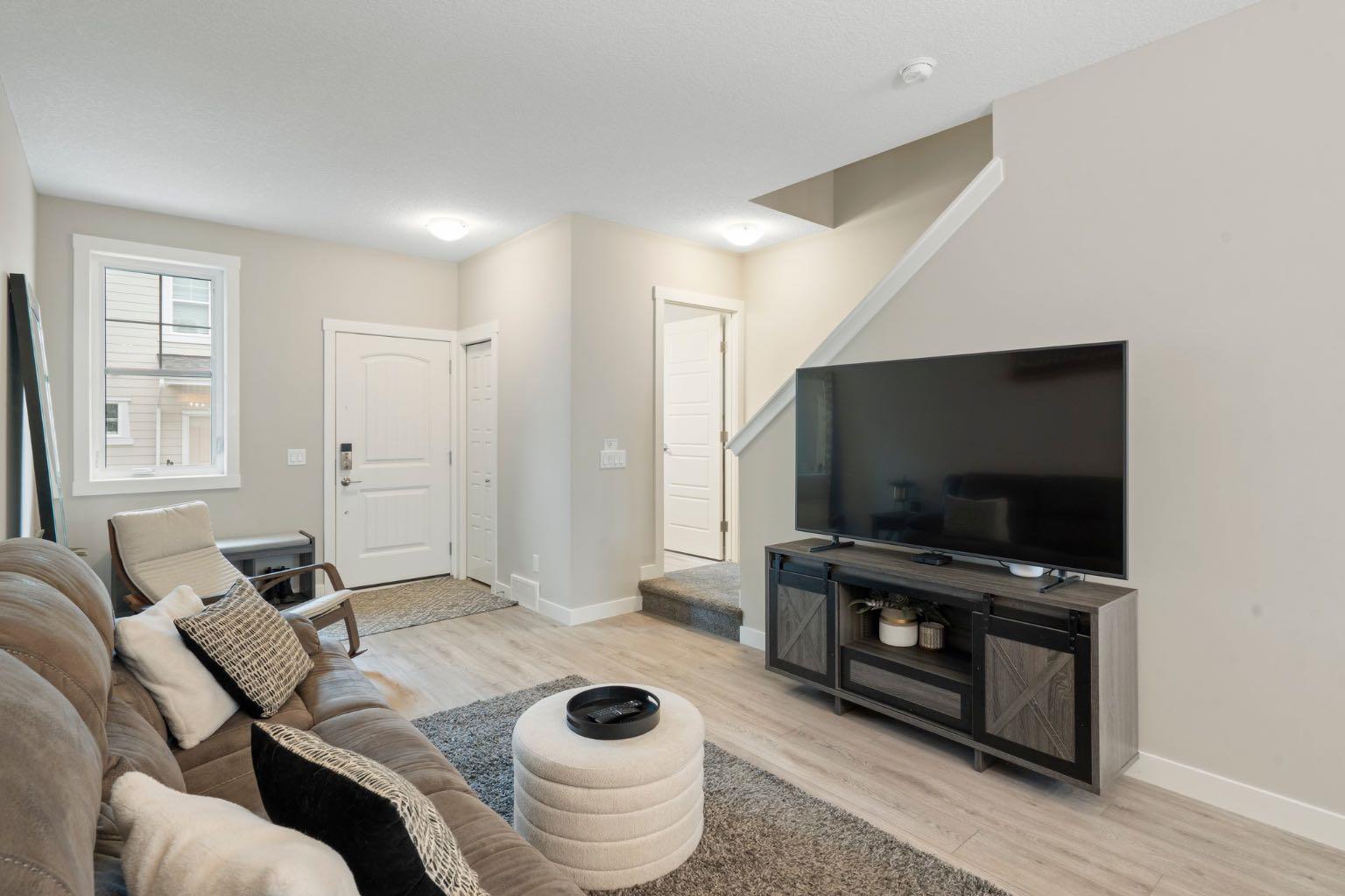 Tucked into the lush, natural beauty of Cranston’s Riverstone, 307 Cranbrook Walk SE invites you to experience a life where elegance, comfort, and community flow together effortlessly. This beautifully appointed townhouse offers more than just a place to live—it’s a space that complements your lifestyle: modern, elevated, and effortlessly functional. Step inside and feel the difference of thoughtful design. The open-concept main floor is as functional as it is stylish—perfect for lively dinner parties, quiet Sunday mornings, or that spontaneous work-from-home day. Your kitchen is a true showpiece, anchored by a spacious island and finished with sleek grey quartz counters, full-height cabinetry with soft-close doors and drawers, and stainless steel appliances (yes, the fridge has a water line!). Whether you’re hosting or unwinding, every corner of this home is dialed into convenience and comfort. Upstairs, discover the coveted double primary bedroom layout—each with its own private ensuite. It’s an ideal setup for roommates, guests, or simply extra space for the life you lead. The upstairs laundry keeps daily routines effortless, while the south-facing fenced patio offers your own private spot to soak up the sun. Need space for your gear or extra vehicles? The double tandem garage has you covered—and your guests will love the convenient visitor parking just steps away. Plus, low monthly condo fees mean you get to enjoy a beautifully maintained complex without stretching your budget. Set within the peaceful embrace of Cranston’s Riverstone—where walking trails, parks, and the Bow River are part of your everyday backdrop—this is the kind of home that makes life feel easy, elevated, and connected. You’ll also have access to Cranston’s Community Hall up the hill which has a splash park, skate park, hockey rink, tennis courts & so much more. This home has it all – don’t miss out. Book your private showing today.