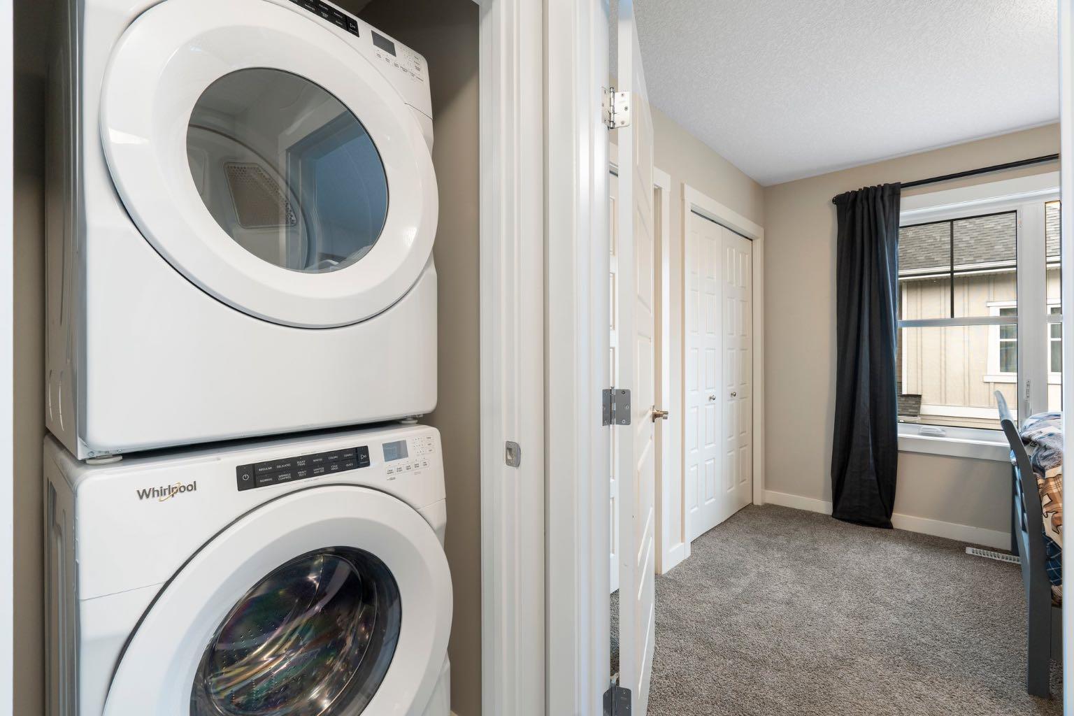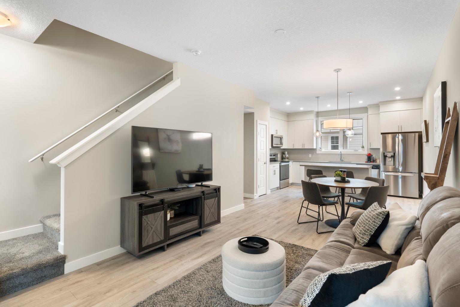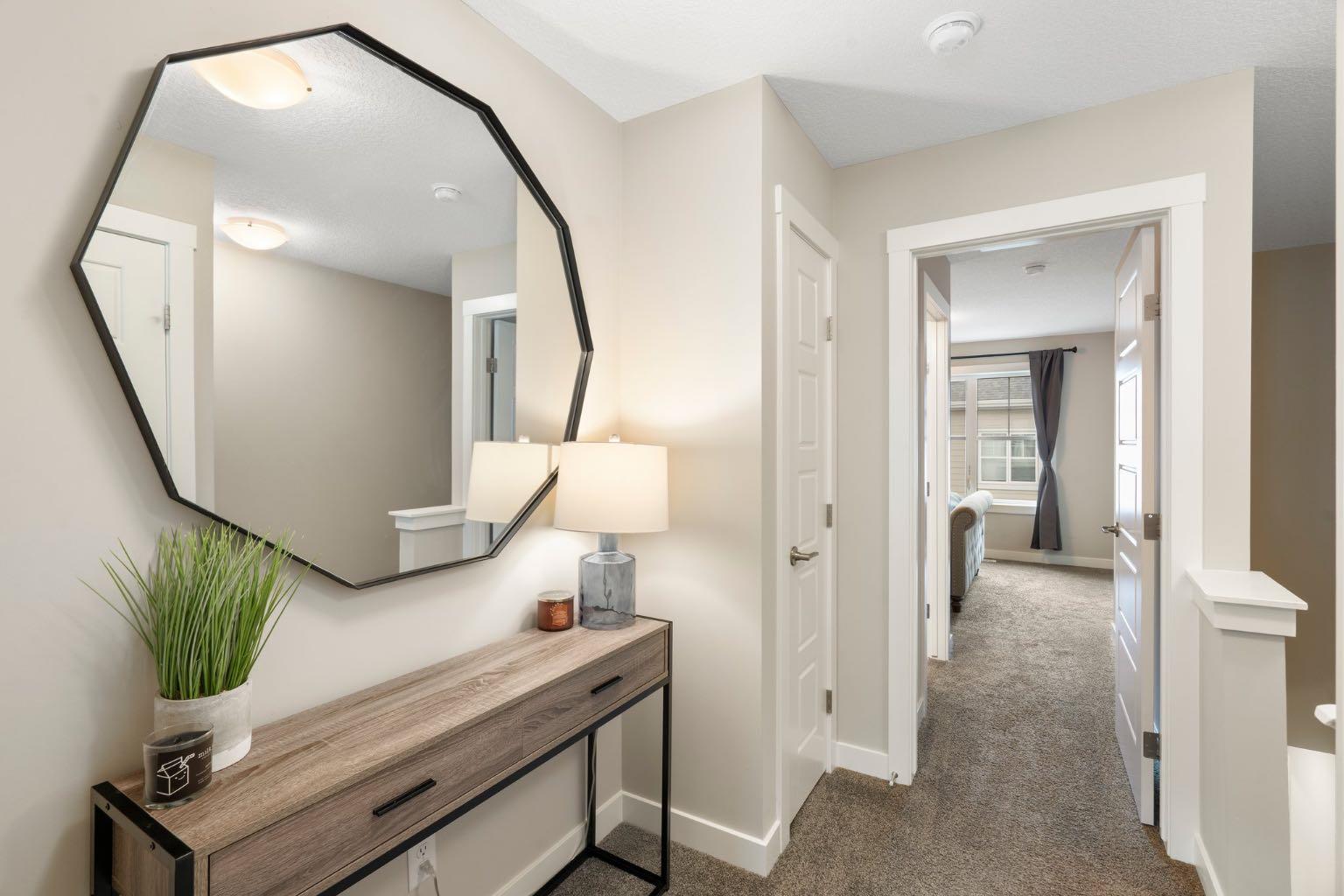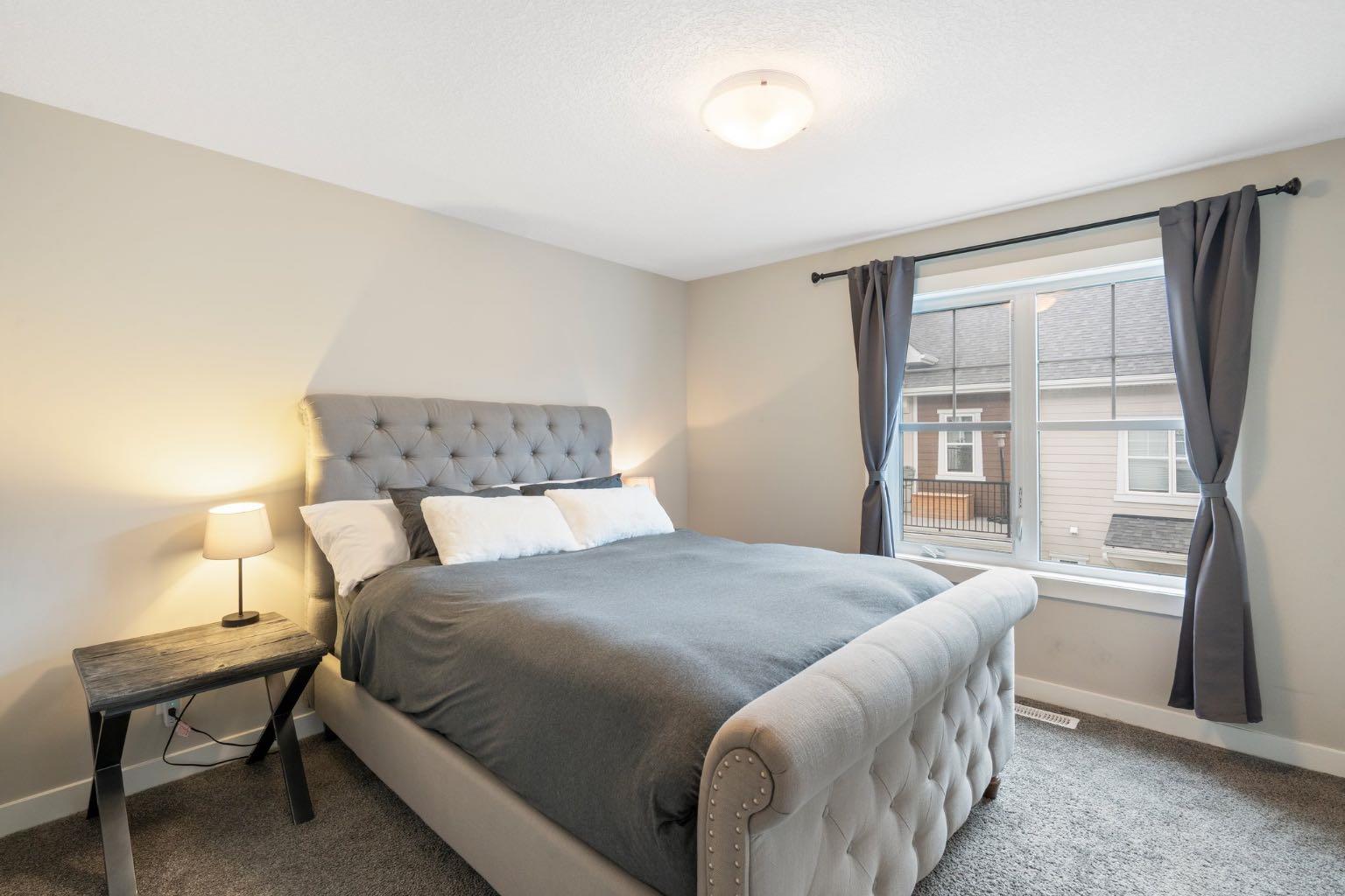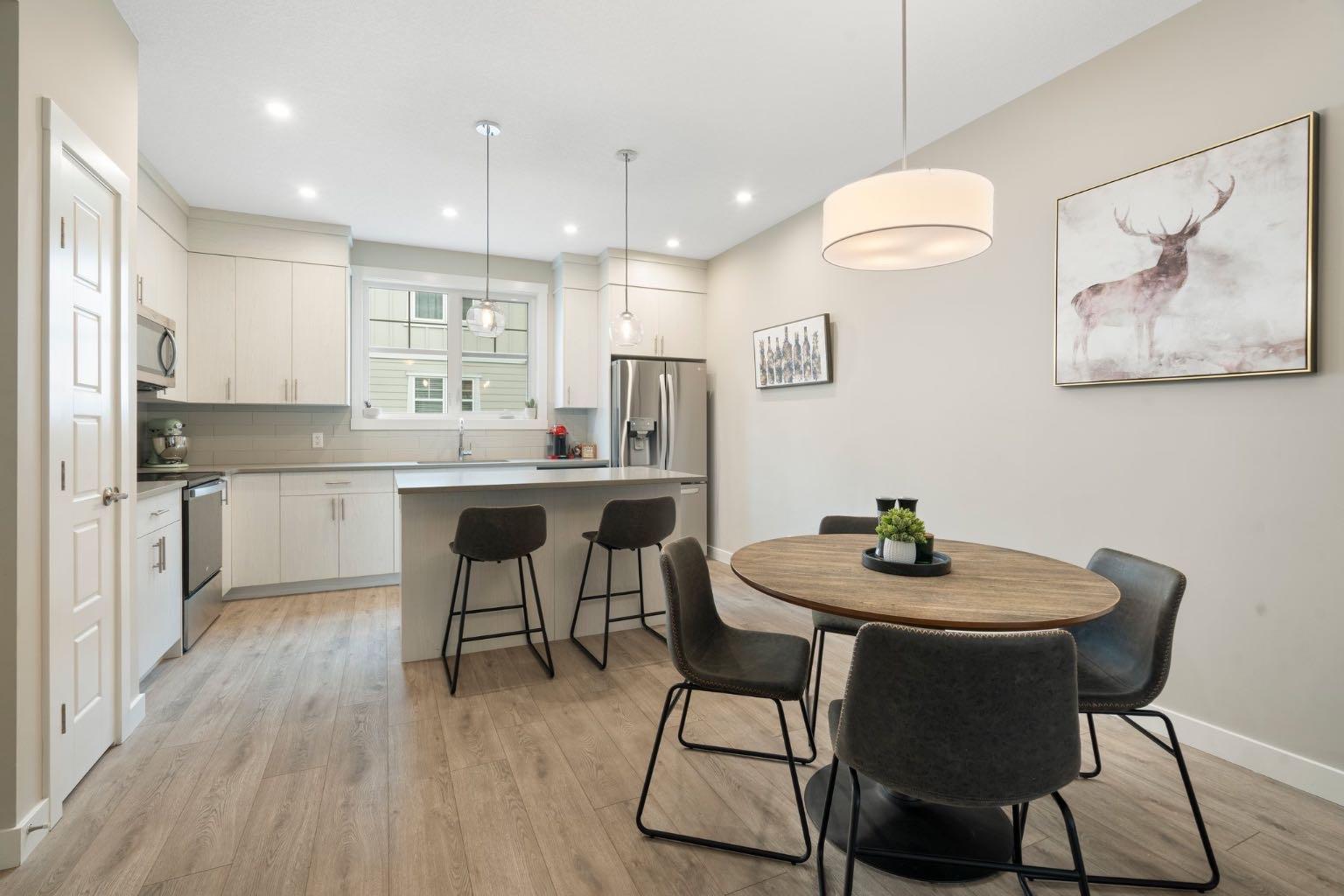 Tucked into the lush, natural beauty of Cranston’s Riverstone, 307 Cranbrook Walk SE invites you to experience a life where elegance, comfort, and community flow together effortlessly. This beautifully appointed townhouse offers more than just a place to live—it’s a space that complements your lifestyle: modern, elevated, and effortlessly functional. Step inside and feel the difference of thoughtful design. The open-concept main floor is as functional as it is stylish—perfect for lively dinner parties, quiet Sunday mornings, or that spontaneous work-from-home day. Your kitchen is a true showpiece, anchored by a spacious island and finished with sleek grey quartz counters, full-height cabinetry with soft-close doors and drawers, and stainless steel appliances (yes, the fridge has a water line!). Whether you’re hosting or unwinding, every corner of this home is dialed into convenience and comfort. Upstairs, discover the coveted double primary bedroom layout—each with its own private ensuite. It’s an ideal setup for roommates, guests, or simply extra space for the life you lead. The upstairs laundry keeps daily routines effortless, while the south-facing fenced patio offers your own private spot to soak up the sun. Need space for your gear or extra vehicles? The double tandem garage has you covered—and your guests will love the convenient visitor parking just steps away. Plus, low monthly condo fees mean you get to enjoy a beautifully maintained complex without stretching your budget. Set within the peaceful embrace of Cranston’s Riverstone—where walking trails, parks, and the Bow River are part of your everyday backdrop—this is the kind of home that makes life feel easy, elevated, and connected. You’ll also have access to Cranston’s Community Hall up the hill which has a splash park, skate park, hockey rink, tennis courts & so much more. This home has it all – don’t miss out. Book your private showing today.