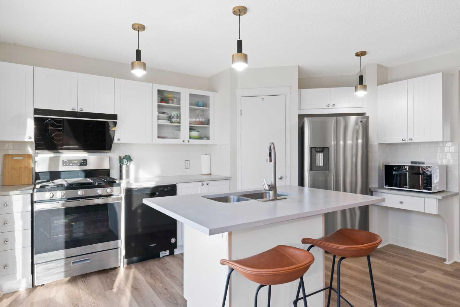 Open house Cancelled due to C/S.. Welcome to this well-maintained home with mountain views from upstairs bedrooms and west facing backyard located in the highly sough-after community of Tuscany. Perfectly located just 8 minutes walking distance to the Tuscany LRT station and 3 minutes driving distance to schools, and community amenities. When opening the front door, you are immediately impressed with railing stairs, new thorough vinyl plank flooring (2022), newly painted walls (2022), and open concept layout with a bright east facing living room, a 3-sided gas fireplace, large dinning area with a large window and can easily accommodate a larger table to enjoy with family and friends in holiday time, a modern kitchen with large patio doors leading directly to a deck to the backyard for outdoor entertaining, a nice island, updated gas stove (2022), FOTILE wall mount range hood (2022), white cabinetry, quartz countertops (2021), corner pantry and newer SS refrigerator (2022), and a 2-piece bathroom for guests to complete the main floor. The upstairs provides an east facing primary bedroom with two big picture windows to take in the morning sunshine, a walk-in closet, and a 4-piece En-Suite, another two west facing bedrooms with gorgeous mountain views, and a family 4-piece bathroom. The basement is half finished with vinyl plank flooring and has lots of potential to renovate in the future. The double detached garage is deep enough to fit a full-sized truck. The west facing landscaped yard includes a deck, lower patio, and a gazebo for kids or pets to play during evening entertaining time. Other recent updates include Roof (2020), Hot Water Tank (2020), Dishwasher (2021) and Washer (2019). Tuscany offers a great community life, and amenities including the Tuscany Club with ice ring, tennis courts, splash water park. Grocery stores, playgrounds, schools, walking/biking paths, golf, LRT Station. Easy access to major commuting routes such as Crowchild Trail and Stoney Trail to U of C, Downtown, COP and National Parks etc. Call now for your own viewing!