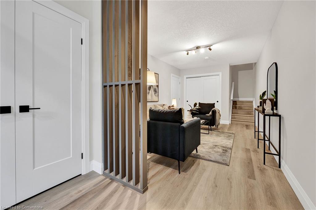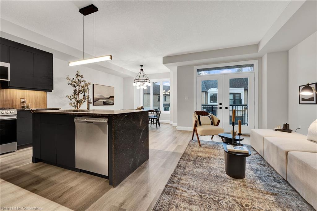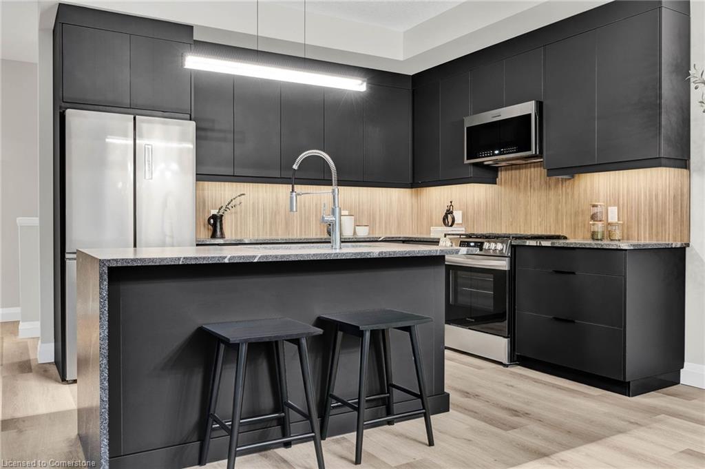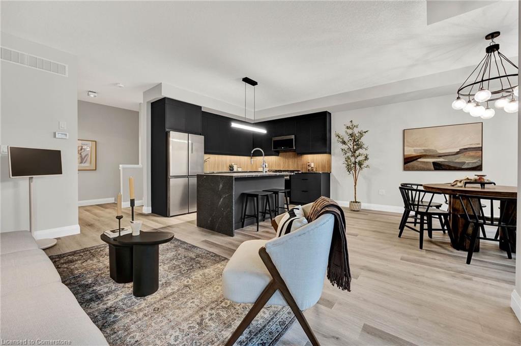Welcome to the Marion Reverse unit, where modern design meets a lifestyle of comfort and convenience. Built by the reputable Carey Homes, this brand-new, back-to-back townhouse is thoughtfully crafted for those seeking quality finishes and functional spaces. Located at 143 Elgin St N, Cambridge, this stunning property offers proximity to local amenities, schools, and vibrant community spots, making it an ideal choice for busy professionals and growing families alike. Upon entering, you’ll find a cozy main-level den, perfect for a home office or flex space. Upstairs, the second floor opens up to an inviting, open-concept layout that seamlessly integrates the kitchen, dining, and living areas—a perfect setting for entertaining or family gatherings. The sleek kitchen boasts a kitchen island breakfast bar, a double-basin sink, stove with a built-in microwave, quartz countertops and stylish cabinetry. A two-piece bathroom and a stacked laundry closet add convenience to this level. The third floor houses three spacious bedrooms, including a serene primary suite with a walk-in closet and a chic three-piece ensuite bathroom. A separate 4-piece family bathroom adds extra convenience for family or guests. Every corner exudes contemporary style with high-quality standard finishes, optional customizations with your choice from Builders Package, and 6 appliances, making this home suit your vision. Discover the perfect blend of urban lifestyle and suburban charm at Vineyards Community. Whether you’re exploring nearby parks, shops, or dining options, you’ll love the vibrant charm of Cambridge just outside your door.