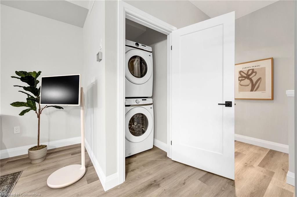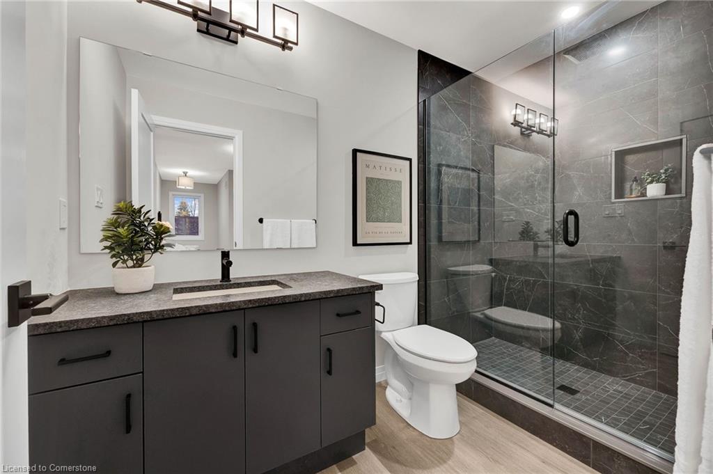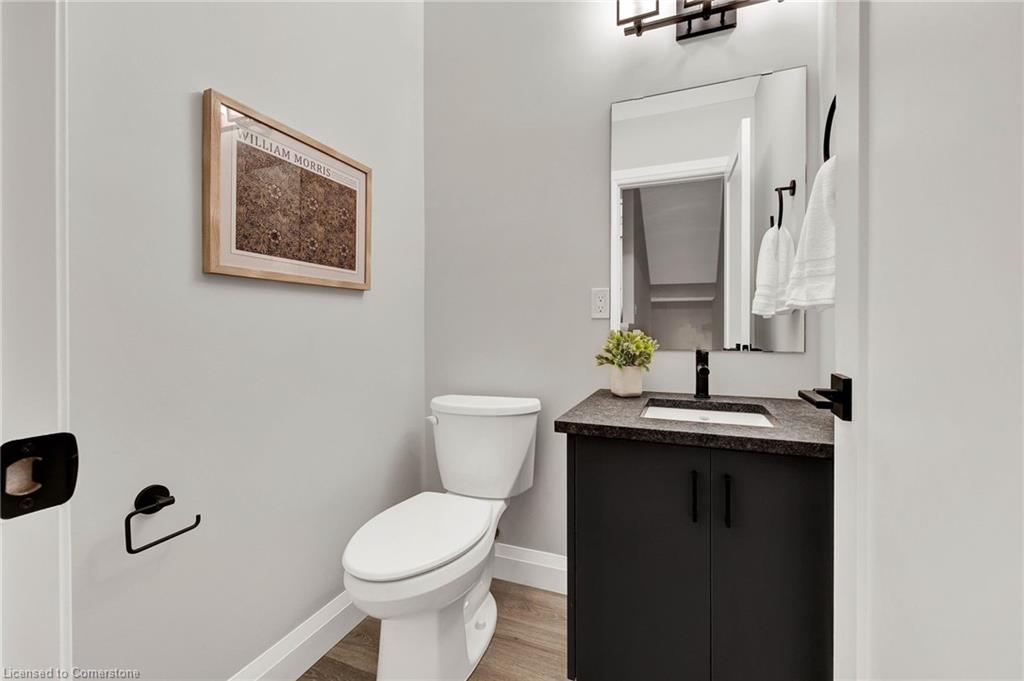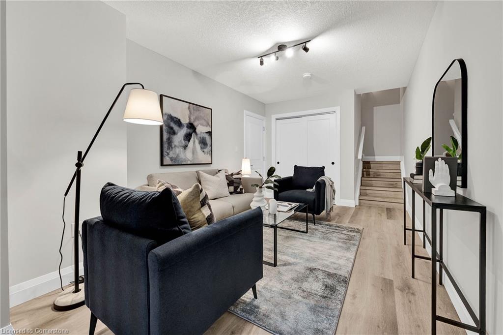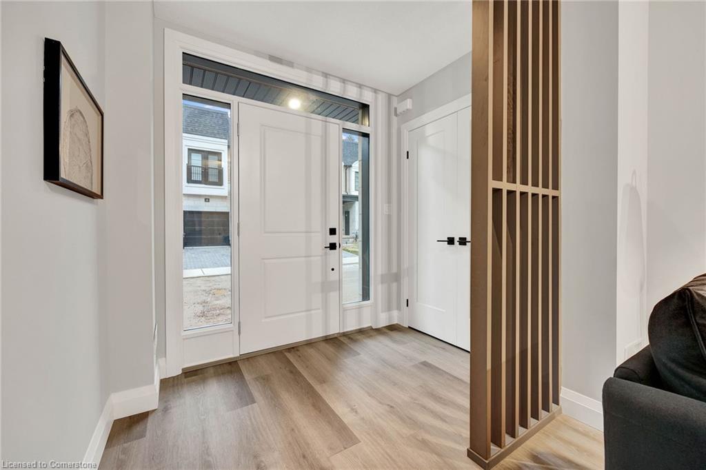 Welcome to the Marion Reverse unit, where modern design meets a lifestyle of comfort and convenience. Built by the reputable Carey Homes, this brand-new, back-to-back townhouse is thoughtfully crafted for those seeking quality finishes and functional spaces. Located at 143 Elgin St N, Cambridge, this stunning property offers proximity to local amenities, schools, and vibrant community spots, making it an ideal choice for busy professionals and growing families alike. Upon entering, you’ll find a cozy main-level den, perfect for a home office or flex space. Upstairs, the second floor opens up to an inviting, open-concept layout that seamlessly integrates the kitchen, dining, and living areas—a perfect setting for entertaining or family gatherings. The sleek kitchen boasts a kitchen island breakfast bar, a double-basin sink, stove with a built-in microwave, quartz countertops and stylish cabinetry. A two-piece bathroom and a stacked laundry closet add convenience to this level. The third floor houses three spacious bedrooms, including a serene primary suite with a walk-in closet and a chic three-piece ensuite bathroom. A separate 4-piece family bathroom adds extra convenience for family or guests. Every corner exudes contemporary style with high-quality standard finishes, optional customizations with your choice from Builders Package, and 6 appliances, making this home suit your vision. Discover the perfect blend of urban lifestyle and suburban charm at Vineyards Community. Whether you’re exploring nearby parks, shops, or dining options, you’ll love the vibrant charm of Cambridge just outside your door.