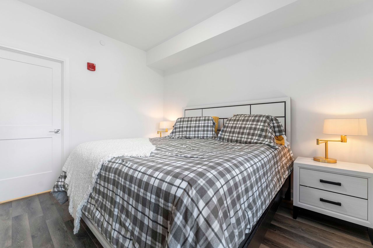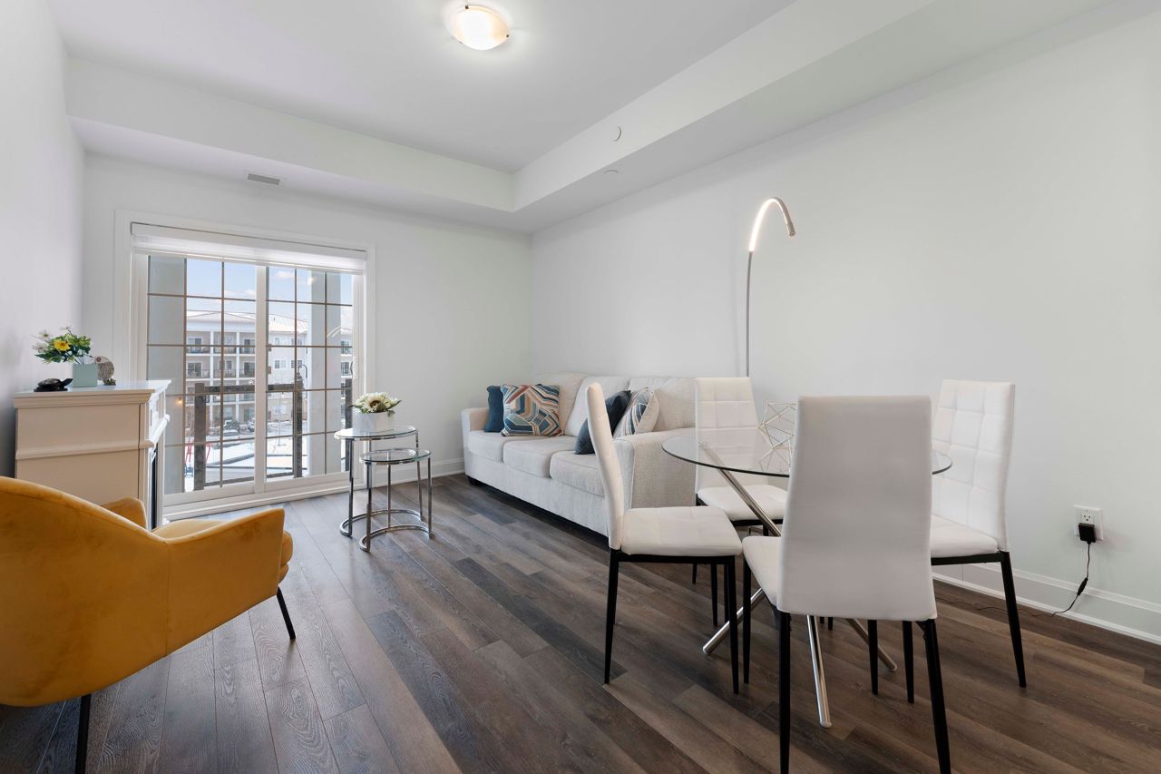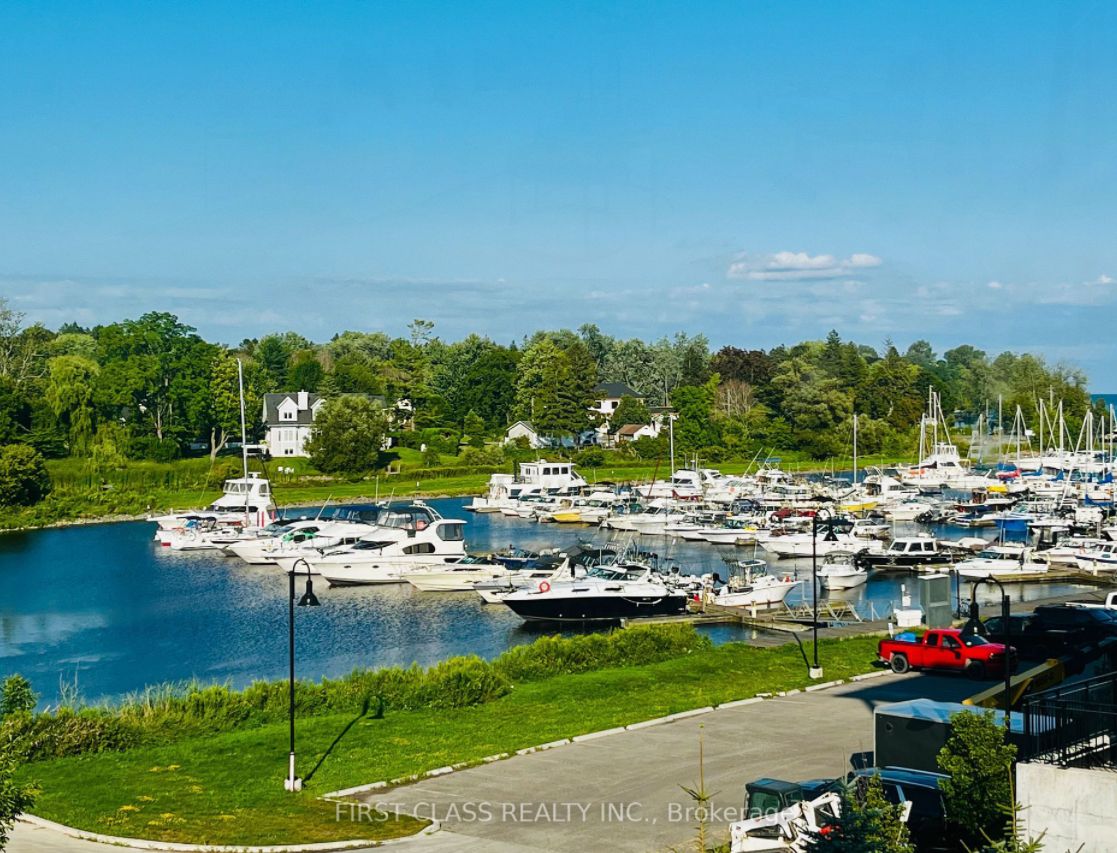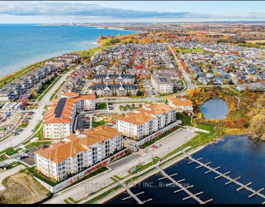 Welcome to The Port of New Castle . The Gem of the Waterfront! A Must-See Lakeside Retreat!! Wake up to breathtaking marina views in this beautifully designed 914 sq. ft. open-concept condo, where modern luxury meets serene lakeside living.This thoughtfully furnished suite features a spacious primary bedroom and a versatile den, complete with a closet and door perfect as a second bedroom or private office. Step onto your private 86 sq. ft. balcony and unwind with panoramic water views, whether its morning coffee or evening wine.The chefs kitchen is a dream, boasting quartz countertops, a stylish breakfast bar, and stainless steel appliances deal for both entertaining and everyday living. The expansive living & dining area is bathed in natural light, enhanced by 9-ft ceilings and premium vinyl flooring, creating a bright and sophisticated ambiance.For your comfort and convenience, this home also includes: Underground parking Ensuite laundry Easy access to parks, trails & major highways Exclusive Lifestyle Amenities at The Admiral Club: State-of-the-art fitness centre Indoor pool & sauna Private theatre room Library & co-working space Elegant party room for entertaining.Whether you're seeking tranquility, convenience, or the ultimate waterfront lifestyle, this exquisite condo has it all. Dont miss this rare opportunity!