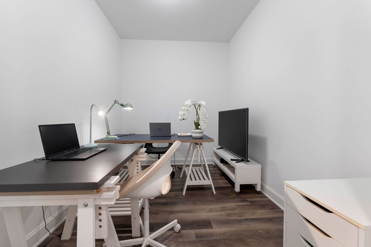 在这套精心设计的914平方英尺开放式概念公寓中醒来,现代奢华与宁静湖畔生活完美交融,尽享令人惊叹的码头景观。这套精心布置的套房设有宽敞的主卧室和多功能书房(配备衣柜和房门),既可作第二卧室,亦能化身私人办公室。踏上86平方英尺的私人阳台,无论是晨间咖啡还是夜晚小酌,全景水色皆可伴您放松身心。