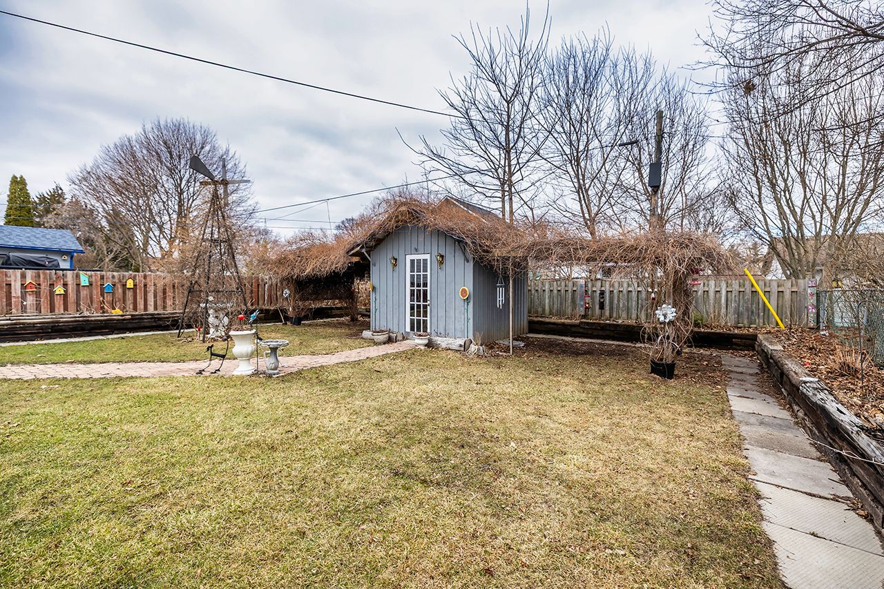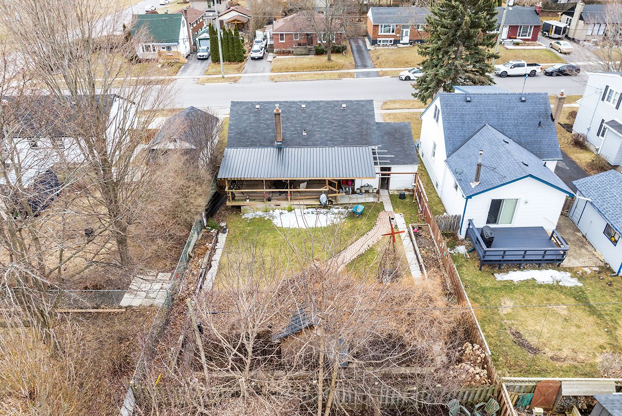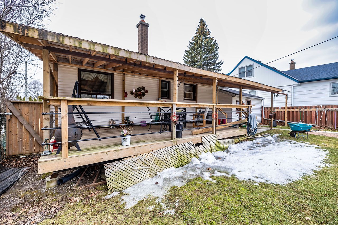 Detached two-bedroom bungalow in a established Cobourg residential area close to most amenities including Sinclair Park. Year built 1954 and 928 sqft as per MPAC. The rear- covered deck has a metal roof and overlooks a spacious fenced yard. There is an attached partially enclosed carport. Updates include forced air gas furnace (2024), central conditioner replaced approximately four years ago and reverse osmosis water system. Finished basement level with a rec room, two extra bedrooms and a partially completed two-piece bath (shower is roughed in). This is a well-kept home is clean and move-in ready. Rear house access directly to the basement.