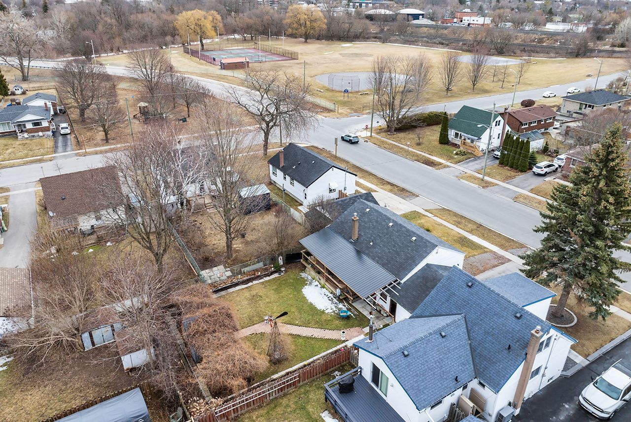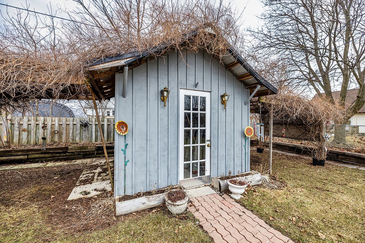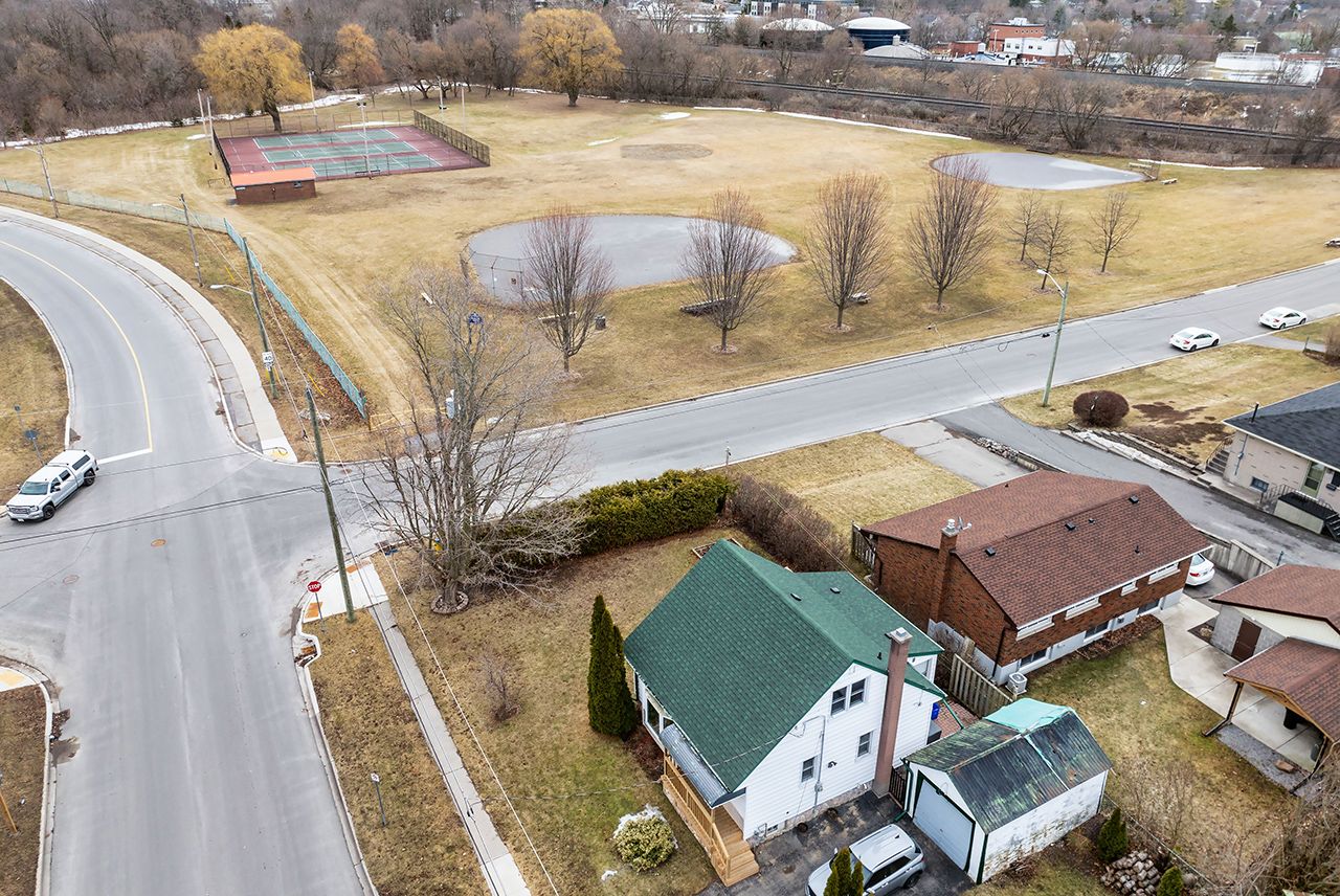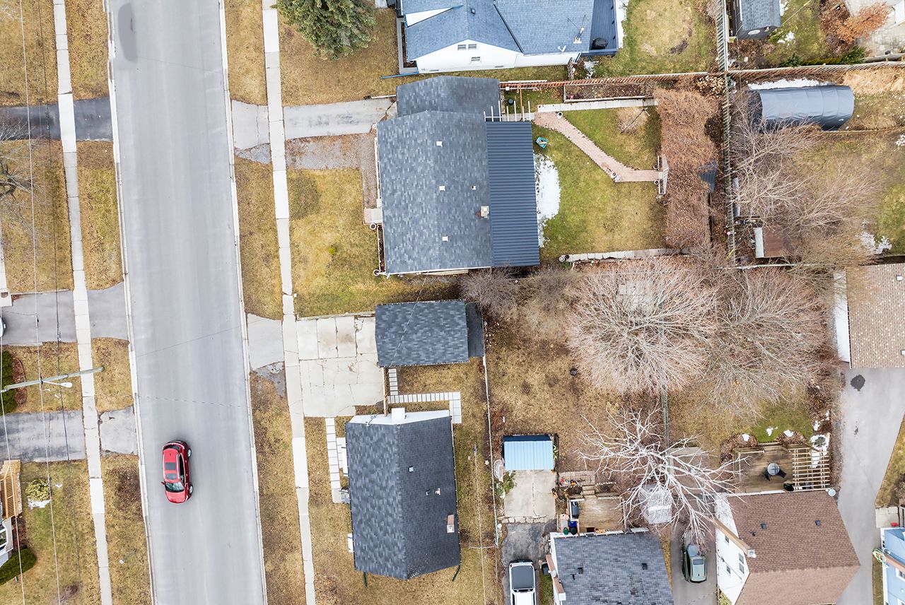 Detached two-bedroom bungalow in a established Cobourg residential area close to most amenities including Sinclair Park. Year built 1954 and 928 sqft as per MPAC. The rear- covered deck has a metal roof and overlooks a spacious fenced yard. There is an attached partially enclosed carport. Updates include forced air gas furnace (2024), central conditioner replaced approximately four years ago and reverse osmosis water system. Finished basement level with a rec room, two extra bedrooms and a partially completed two-piece bath (shower is roughed in). This is a well-kept home is clean and move-in ready. Rear house access directly to the basement.