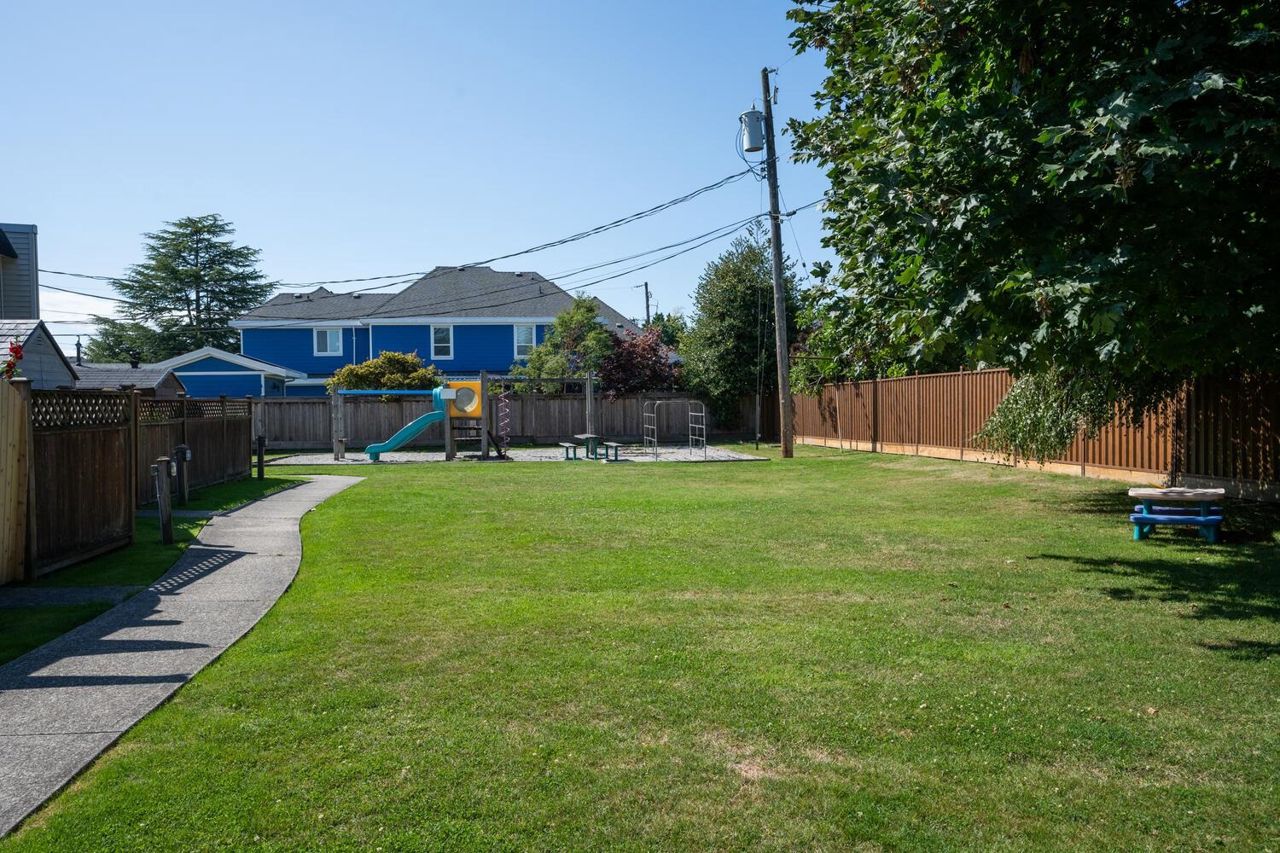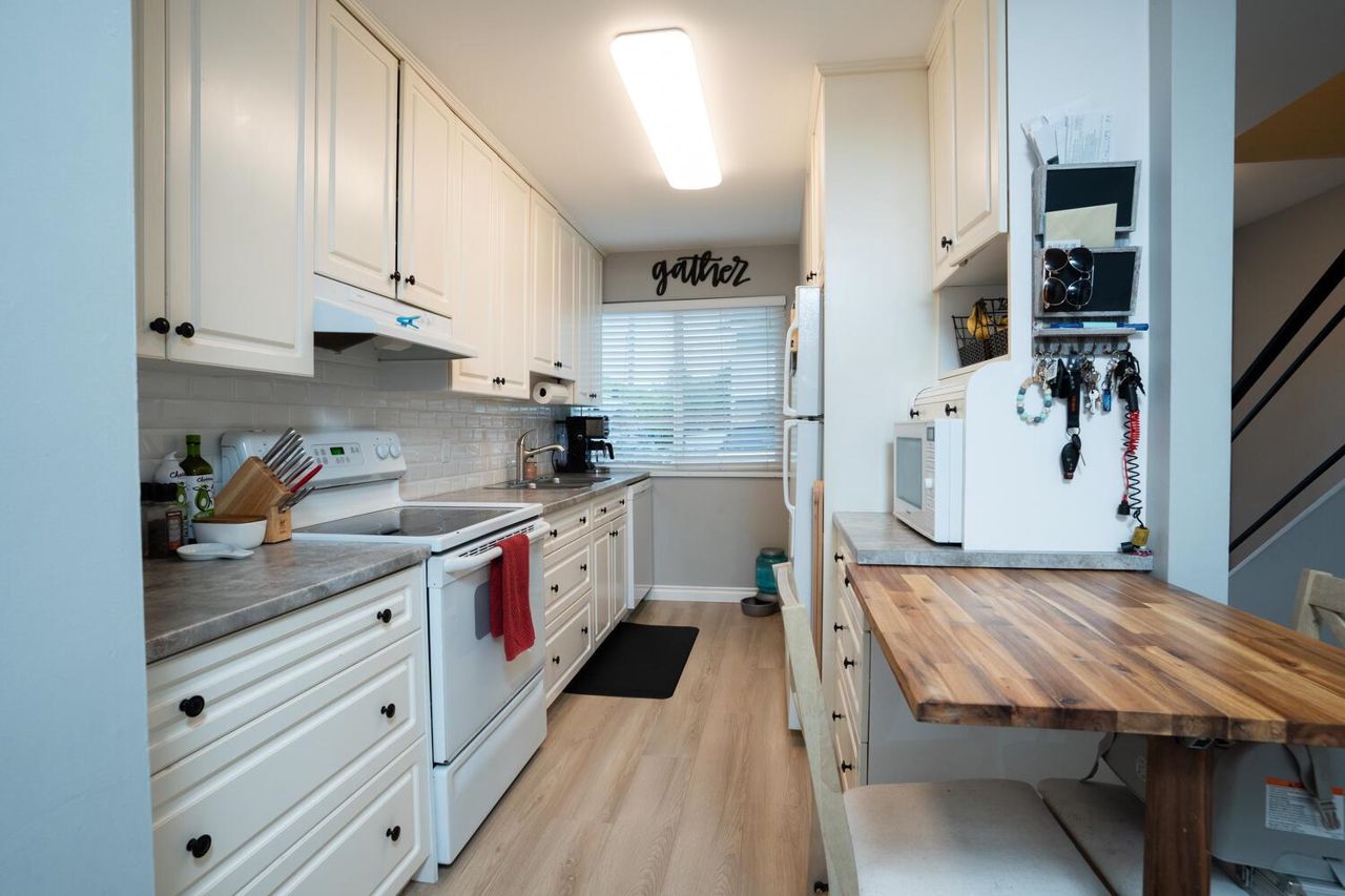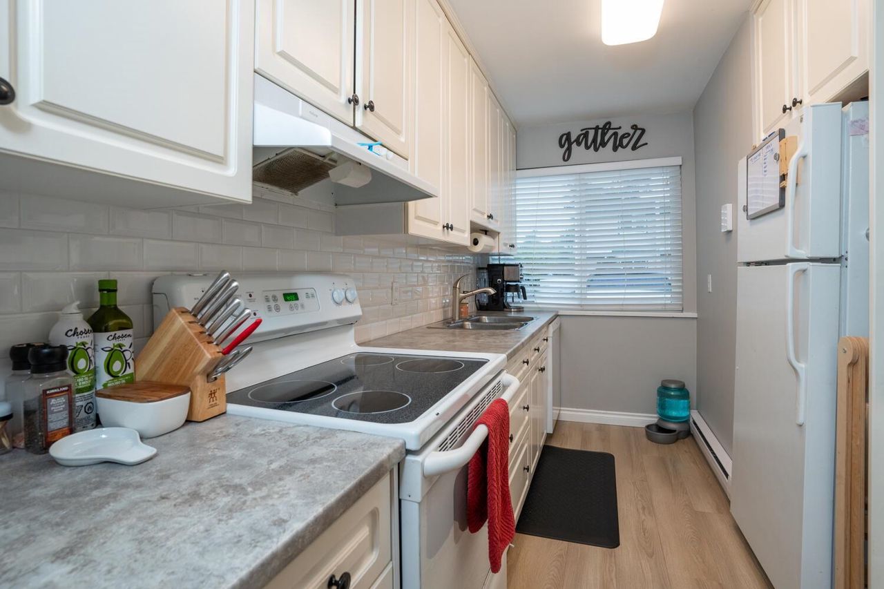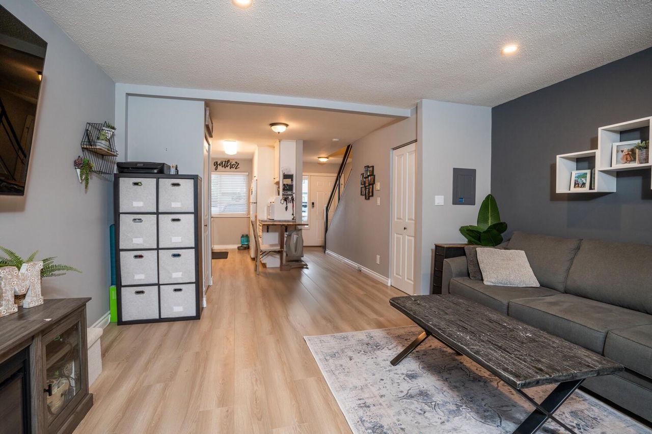 Charming End-Unit Townhome. This two-story townhome features 960 sq. ft. of updated living space in a prime corner location. Enjoy a stylishly updated kitchen, renovated bathroom, new flooring, paint, windows, and doors. The private yard extends onto a playground and green space. With a built-in vacuum system, ample storage, privacy of an end unit with parking right outside your front door, this home offers convenient townhouse living at a condo price. Centrally located near shopping, recreation, and transit, this home is ideal for first-time buyers or downsizers—don’t miss this opportunity! OPEN SUNDAY SEPTEMBER 8TH 2:00 - 4:00