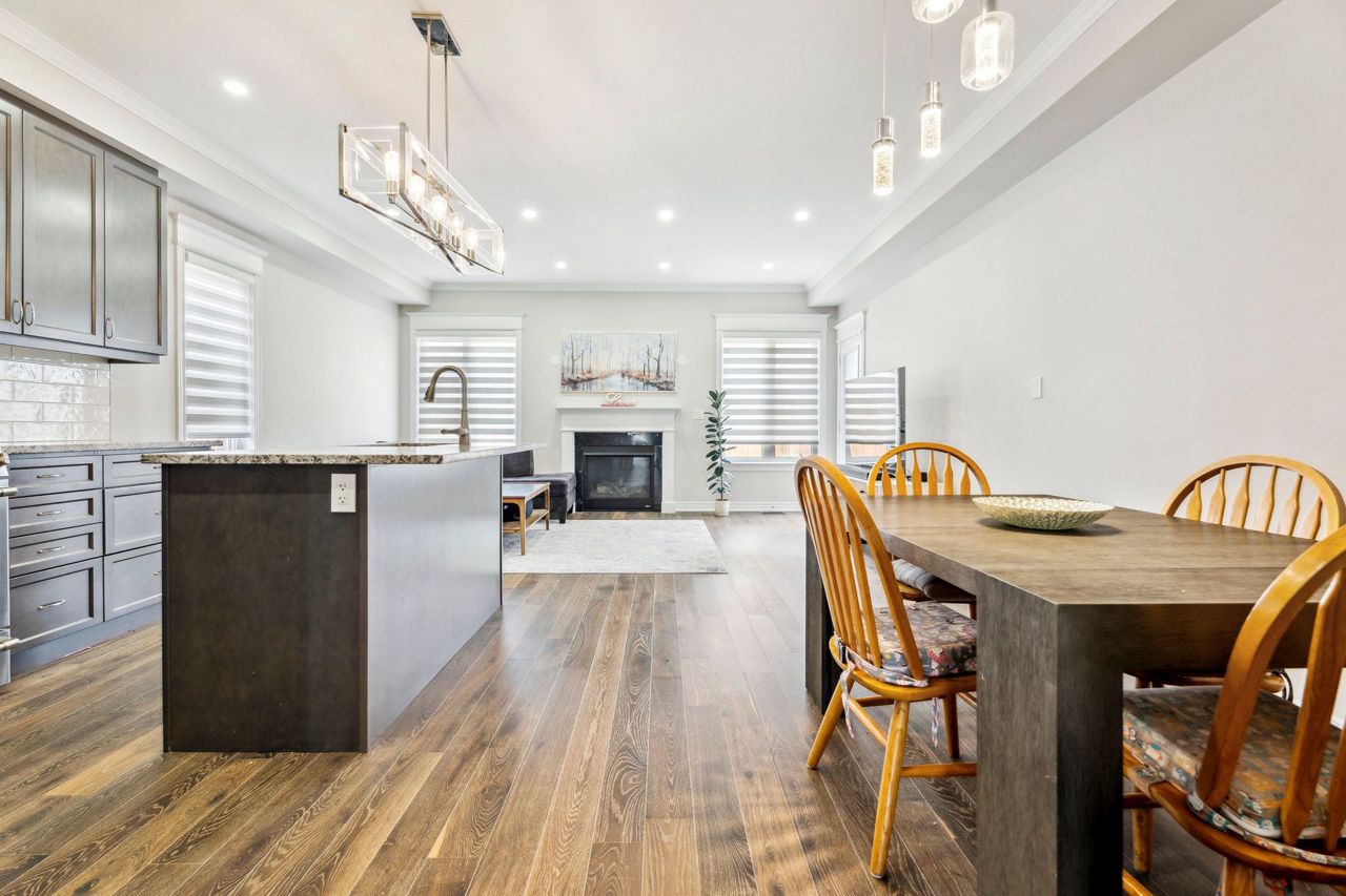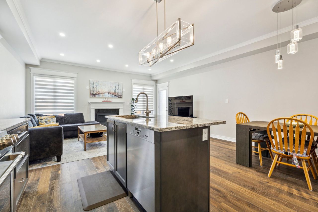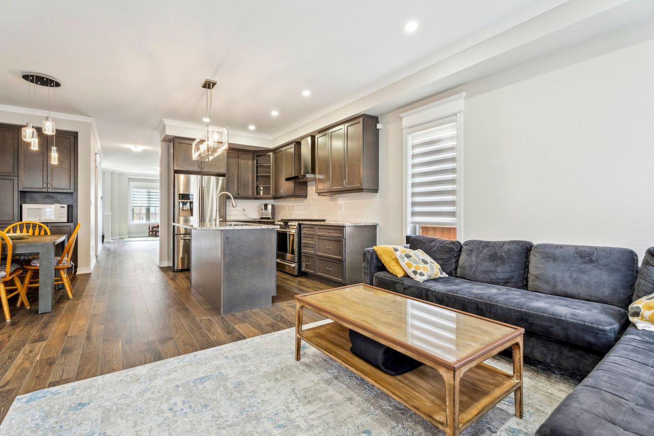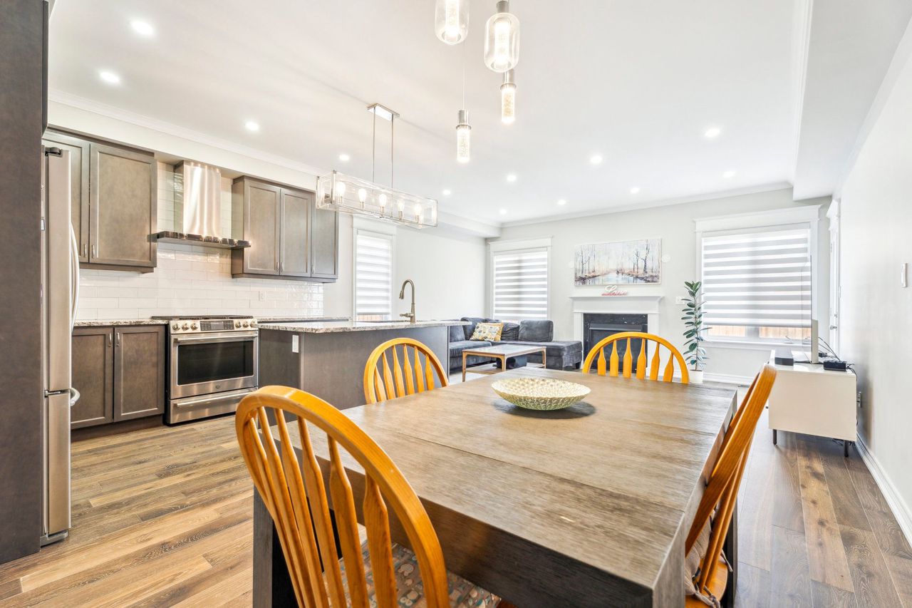 主层采用开放式布局,平滑的天花板与宽大窗户让自然光线充盈整个空间。客厅与餐厅区域流畅衔接,为日常起居和社交娱乐营造出舒适氛围。厨房配备花岗岩台面、不锈钢电器及充裕的储物柜,兼具时尚美感与实用功能。