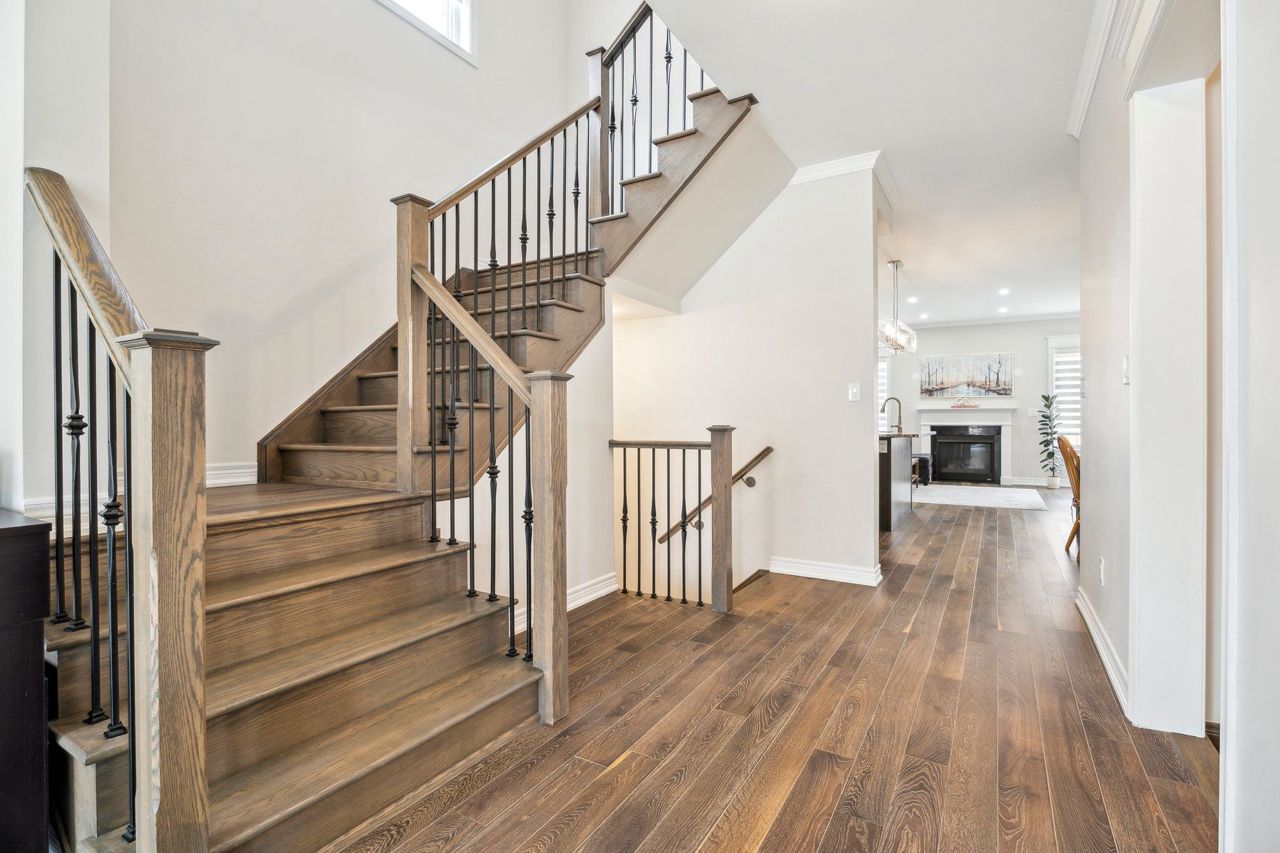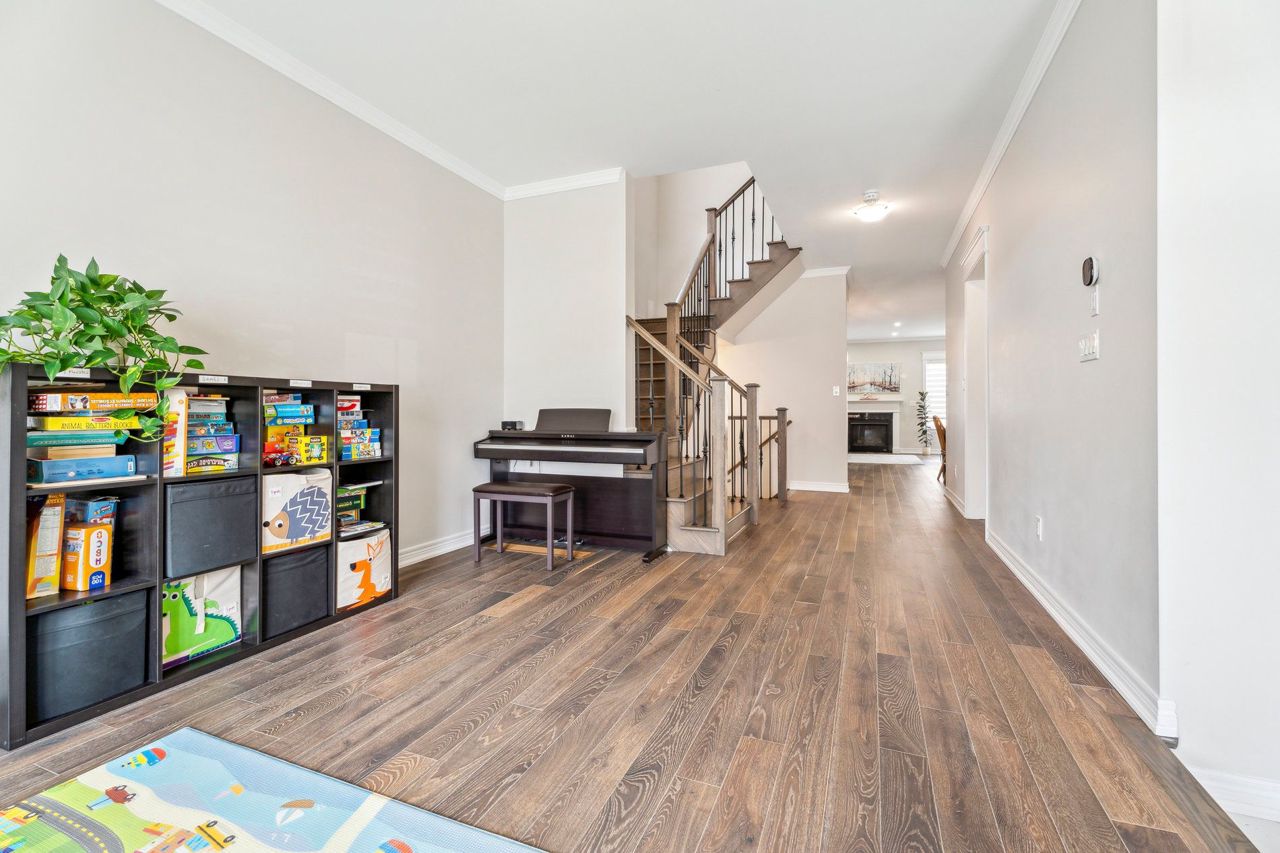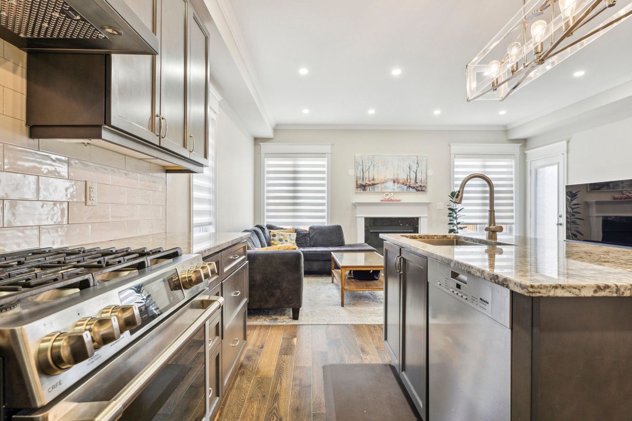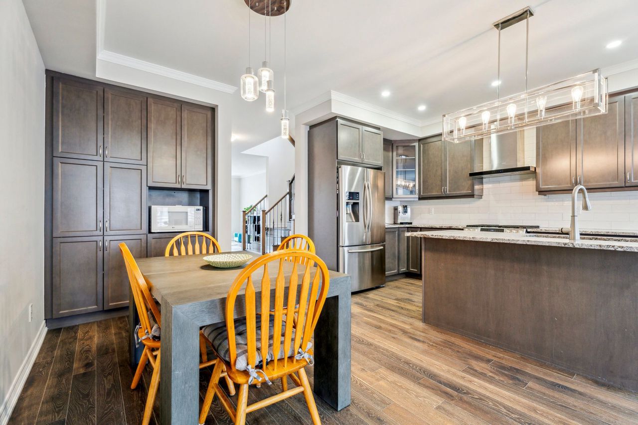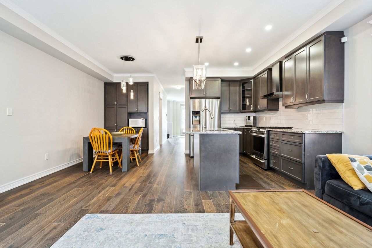 主层采用开放式布局,平滑的天花板与宽大窗户让自然光线充盈整个空间。客厅与餐厅区域流畅衔接,为日常起居和社交娱乐营造出舒适氛围。厨房配备花岗岩台面、不锈钢电器及充裕的储物柜,兼具时尚美感与实用功能。