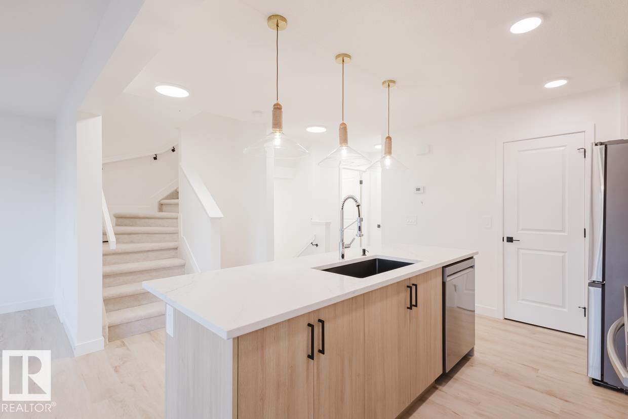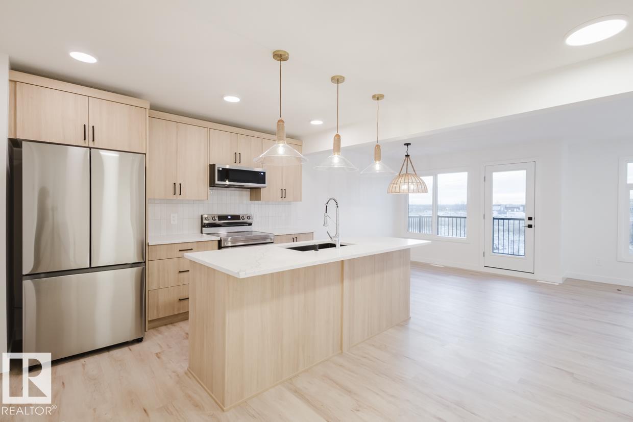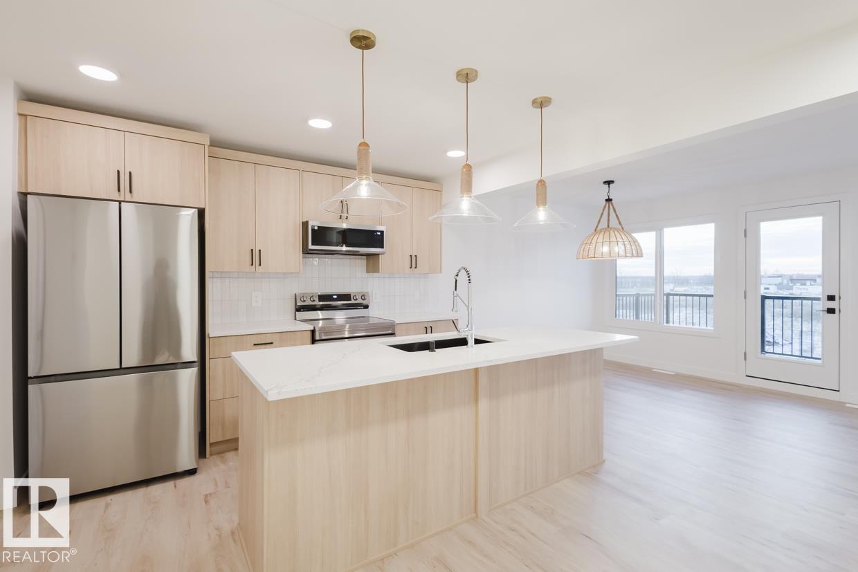 3 BEDROOM & DEN. This stunning condo boasts a spacious, open concept living with modern finishes and comfortable living spaces. The lower level features a convenient single attached garage, a generous storage room and a versatile den, perfect for a home office or extra living space. The main floor offers a half bath, a laundry room, and a walk-in pantry, providing ample storage and practicality. The kitchen is a chef's dream with quartz countertops and a convenient waterline to the fridge. Head out onto the deck with included gas line for those summer BBQ's. Upstairs you'll discover a full 4-piece bathroom, 2 large bedrooms, and a spacious master with a walk-in closet and a luxurious ensuite. This home comes with a generous $2,500 appliance allowance, high-efficiency furnace & triple-pane windows. Don't miss this rare opportunity to own a piece of Michael's Park luxury living. MUST QUALIFY FOR FIRST PLACE PROGRAM. QUICK POSSESSION! Photos may differ from actual property. Appliances NOT included.