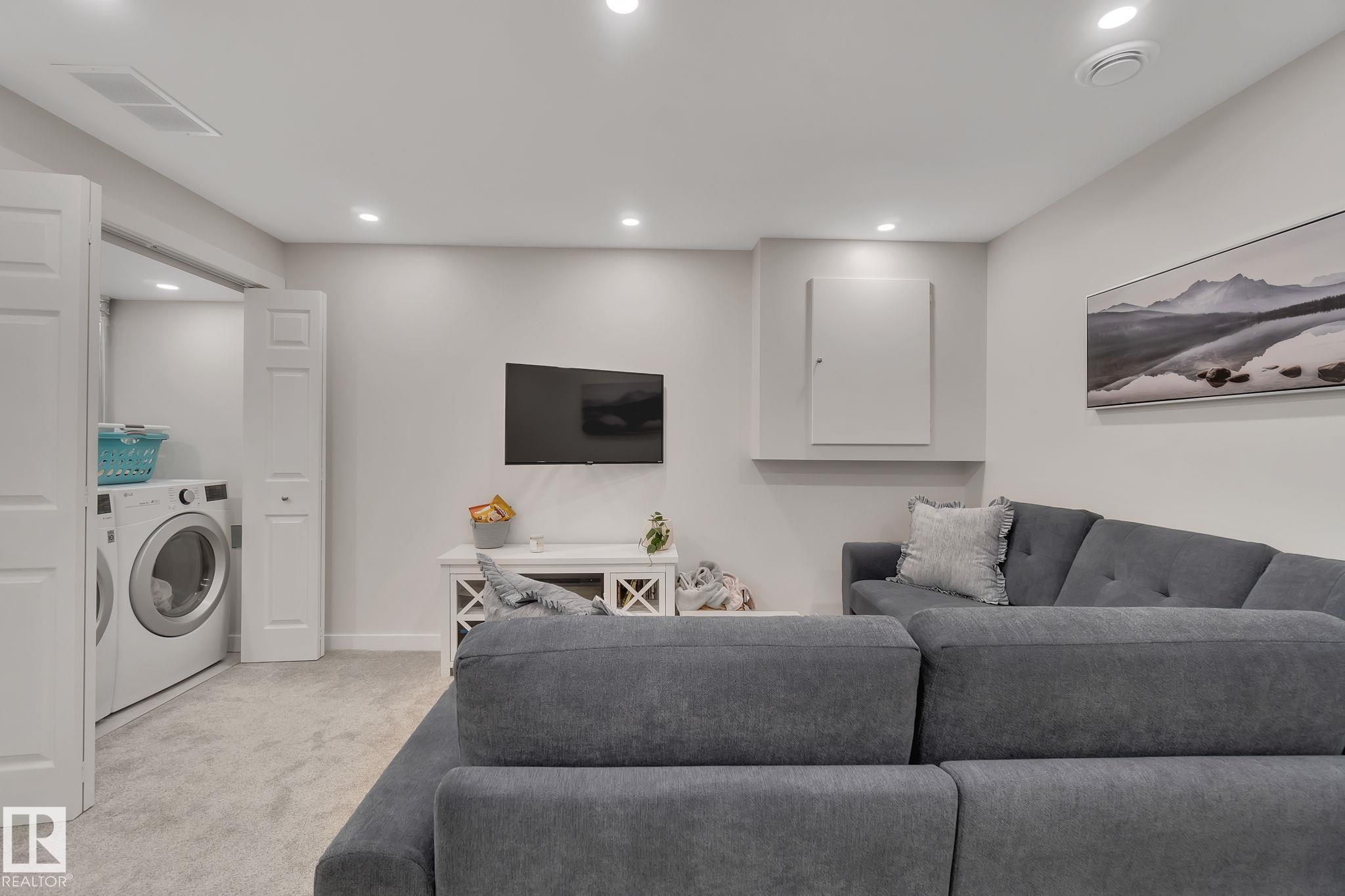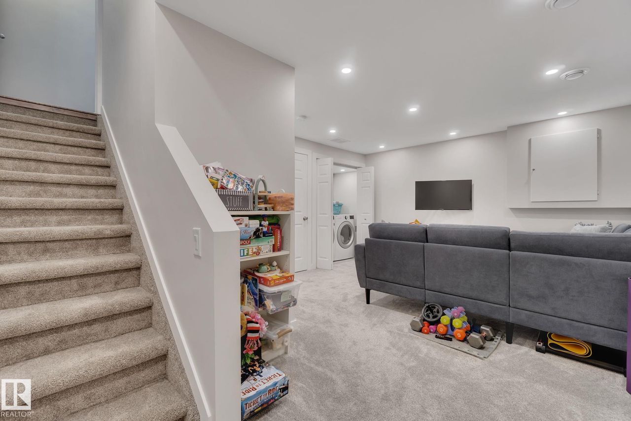 This is the perfect time to move to Lake Summerside. Enjoy a private lake with sandy beach, club house, planned activities, tennis & basketball courts. This lovely duplex home features an open floor plan. The moment you step in, you're greeted by a spacious living room with a gas fireplace overlooking an island kitchen. Plenty of cabinets and a convenient pantry. The dining room is flooded with light from patio doors which lead to a large deck with a gas line for your barbecue. The second floor has a huge master bedroom with full ensuite and walk-in closet; another good sized bedroom, a lovely loft or home office, and a second full bathroom. And if you need more space, the basement is fully finished. It has a media room, laundry area, and a third bedroom with a 4 piece bathroom. Outside is a low maintenance yard and an newer insulated, drywalled, LED lit, 2 car garage. Situated on a tree lined street with easy access to restaurants, shopping, groceries and the Henday. It's move in ready. Are you ready?
