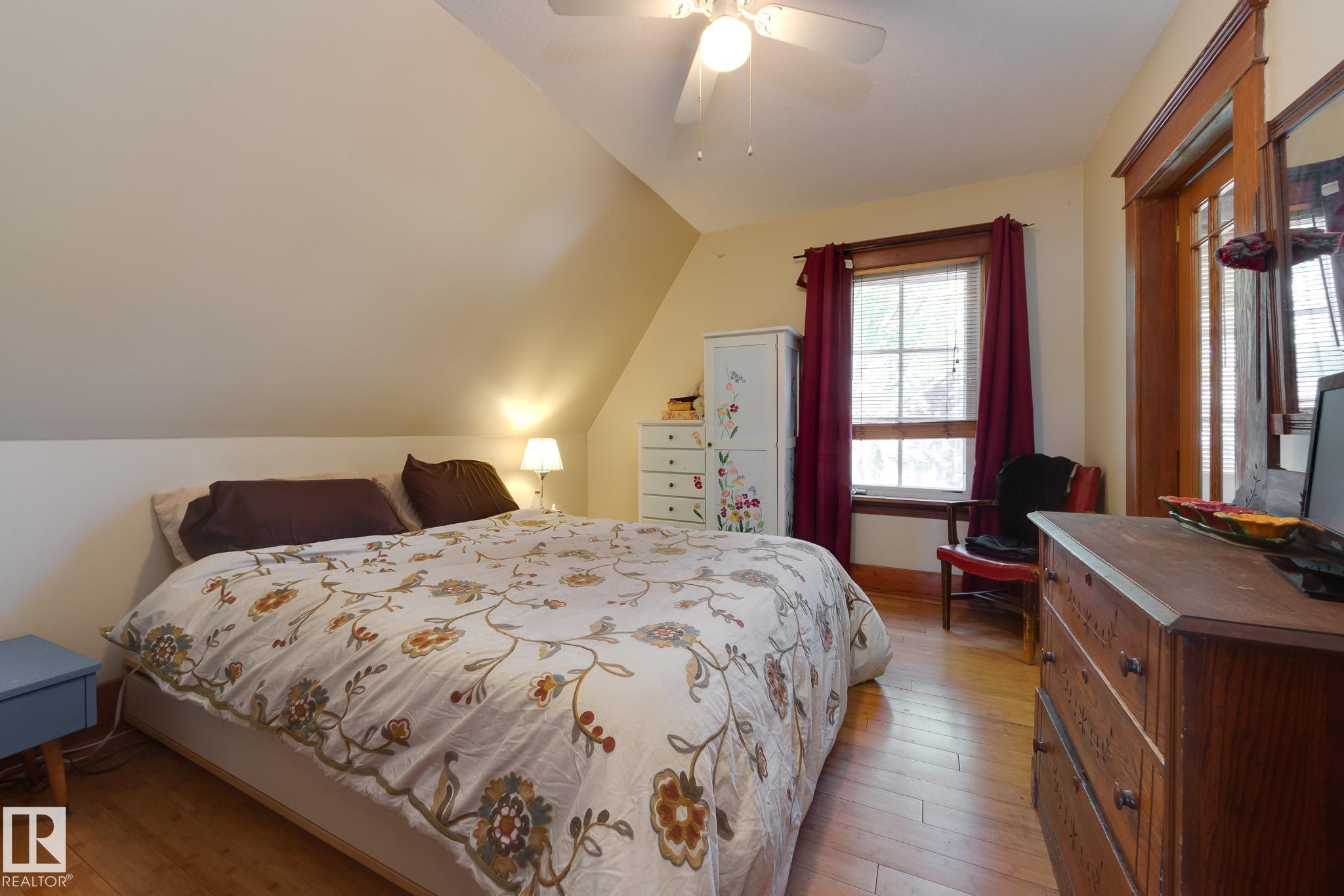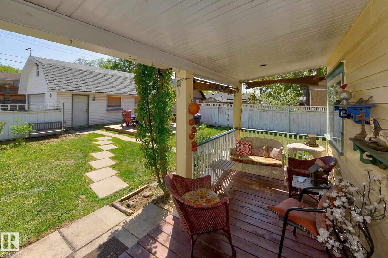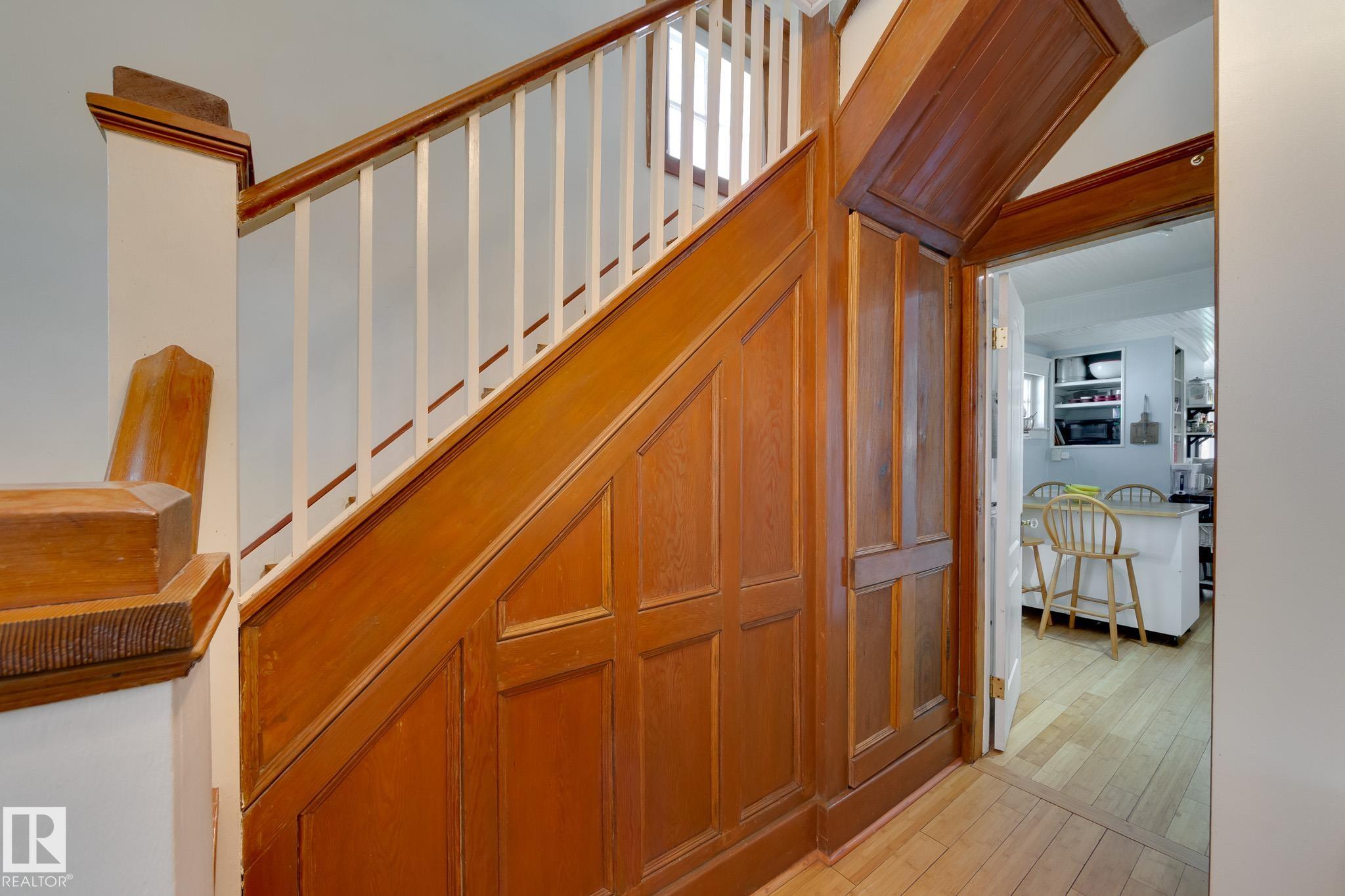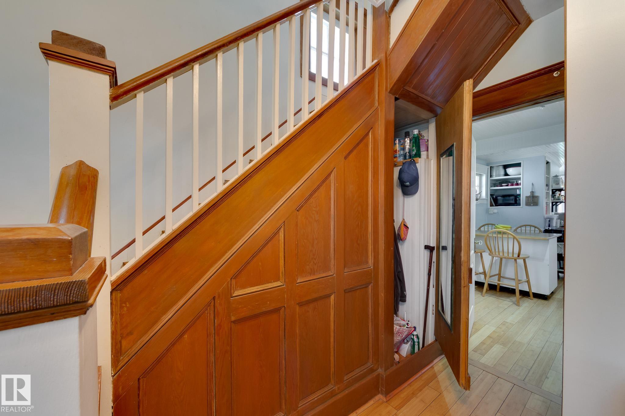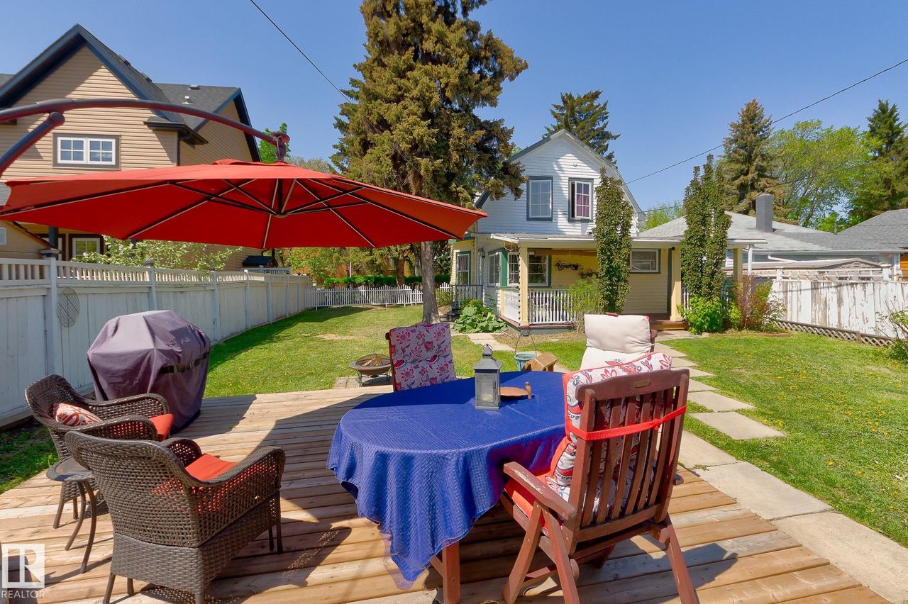 "The Grant McConachie House" a rare and historically iconic 105 oyear old Edmonton property was built in old Dutch styling. Wonderfully preserved- featuring rich Douglas fir woodwork, copper plated heating vents, French doors, beautiful bay windows, clawfoot bathtub, hardwood flooring throughout. Upgrades include NEW Furnace & HWT(2025), kitchen cabinetry, dishwasher, electrical, plumbing, weeping tile, low-E argon casement windows upstairs, exterior doors & locks, heating & vents, newer roof over veranda, shower added to main bath & plumbing upstairs, copper line, period correct steel & chrome faucets, beautiful gas fireplace (oak & tile) heated garage built 1998 (oversized trusses matched to scale with house). Situated on a large 580 square metre lot (50x125) the mature landscaping draws you to enjoy the covered front porch & the delightful spacious covered deck just off the kitchen. Fabulous lot for development down the road or enjoy this treasure for many years to come!