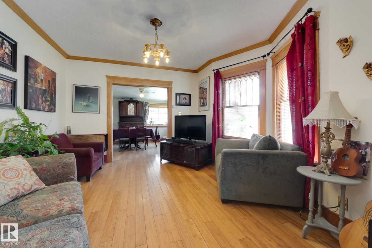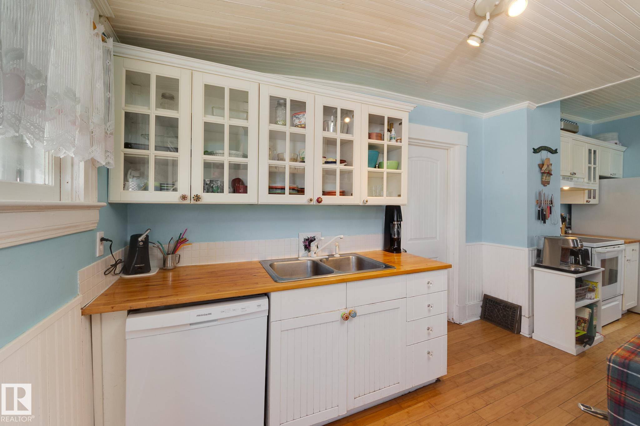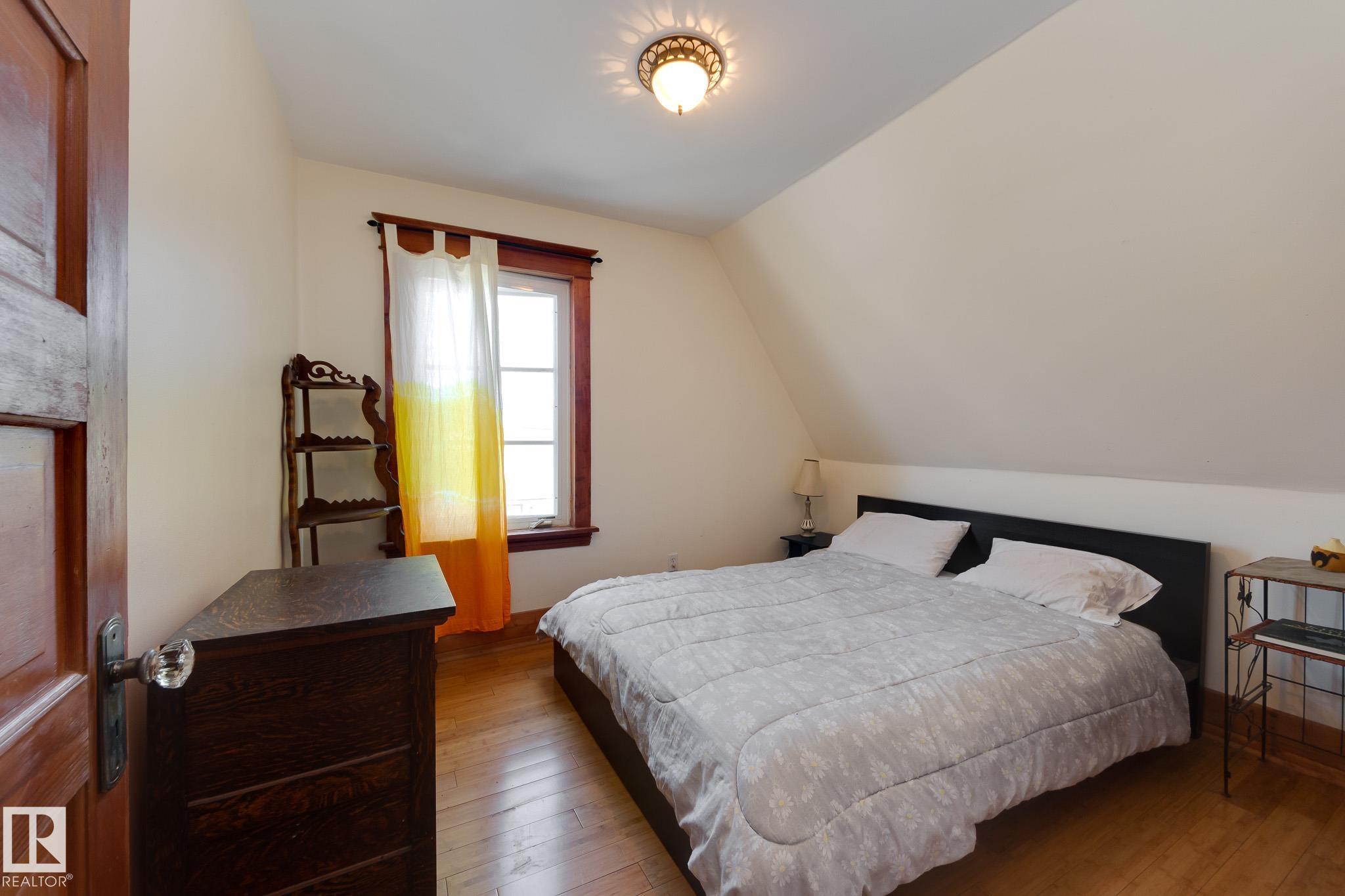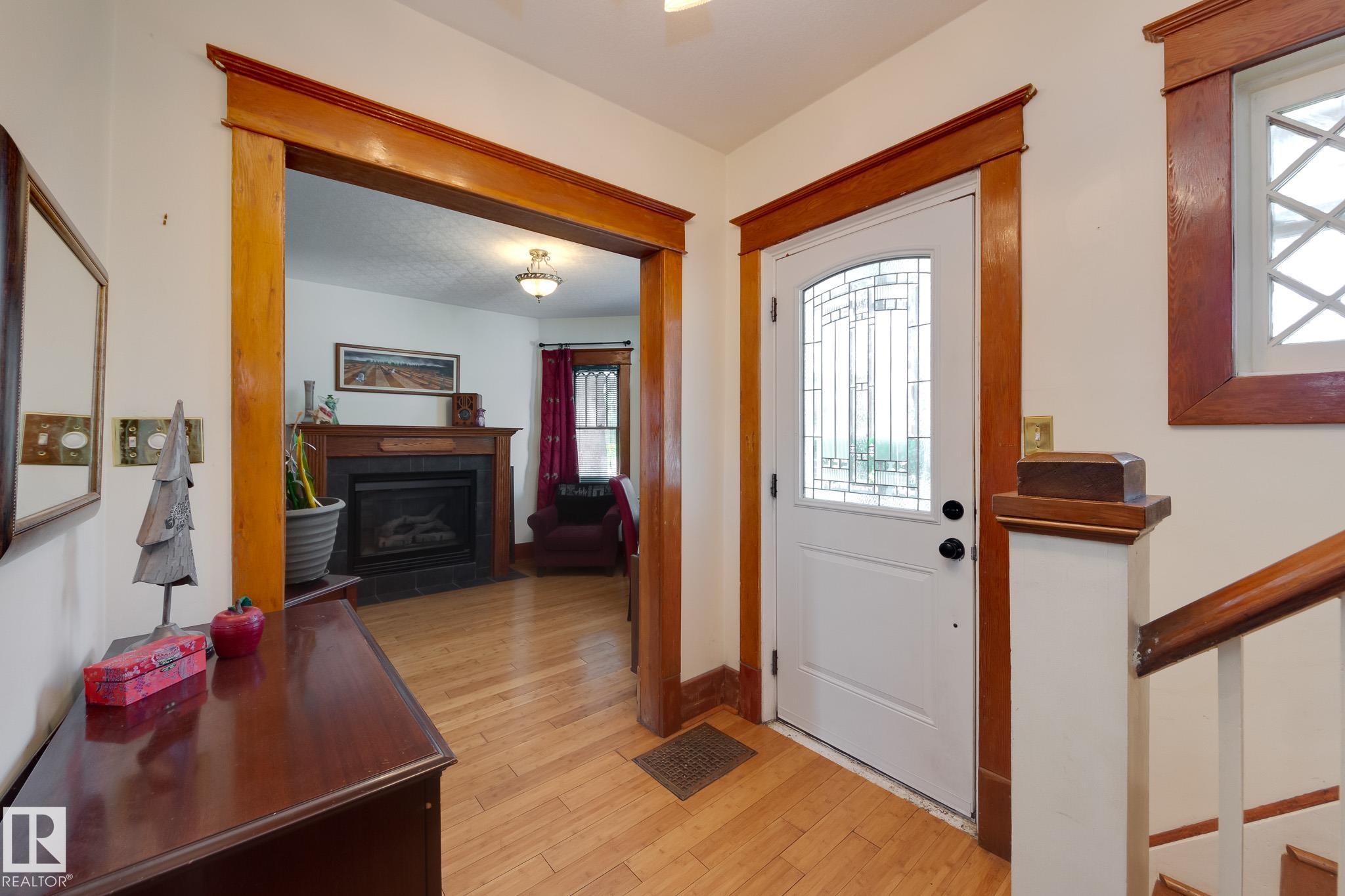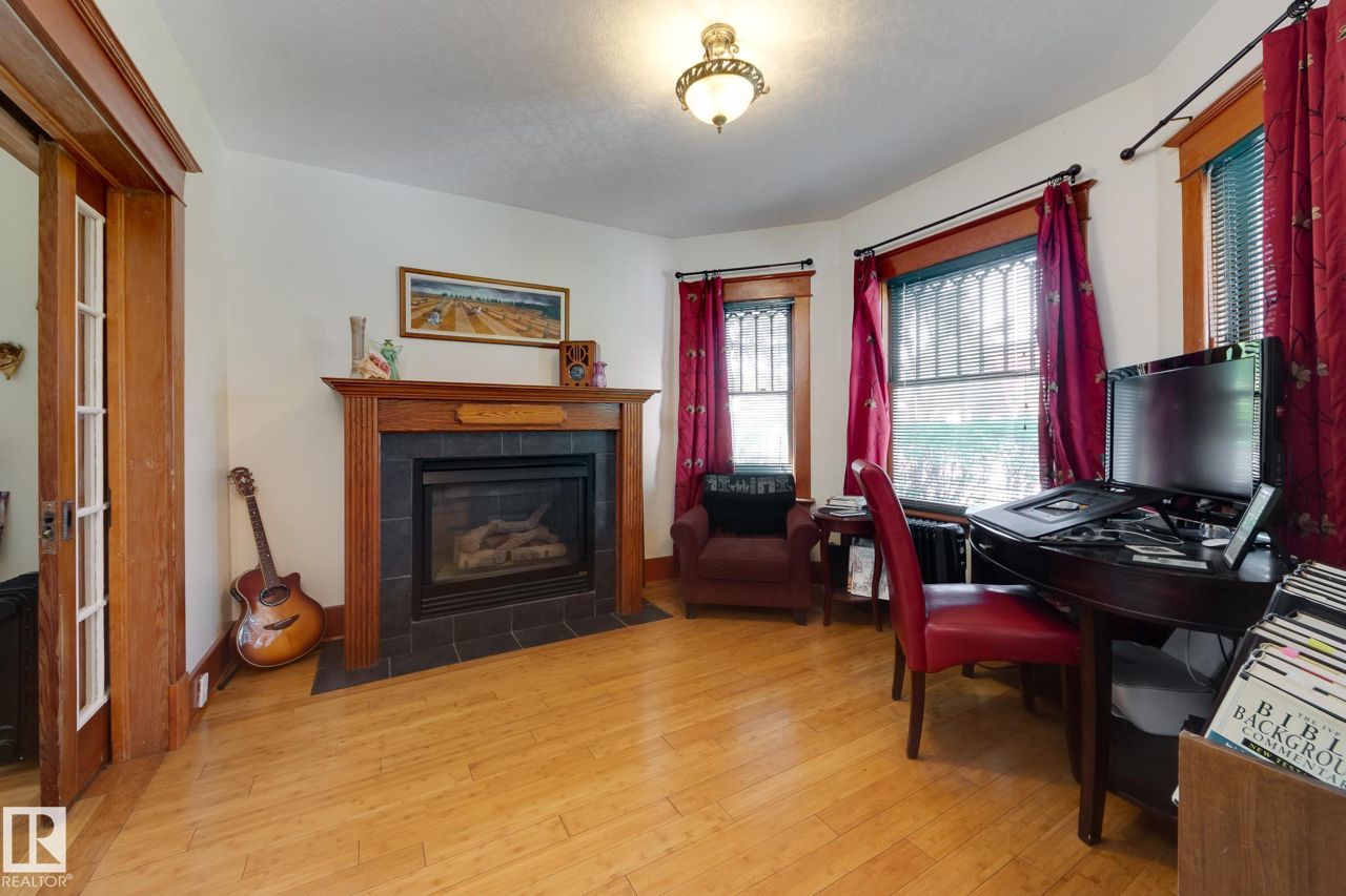 "The Grant McConachie House" a rare and historically iconic 105 oyear old Edmonton property was built in old Dutch styling. Wonderfully preserved- featuring rich Douglas fir woodwork, copper plated heating vents, French doors, beautiful bay windows, clawfoot bathtub, hardwood flooring throughout. Upgrades include NEW Furnace & HWT(2025), kitchen cabinetry, dishwasher, electrical, plumbing, weeping tile, low-E argon casement windows upstairs, exterior doors & locks, heating & vents, newer roof over veranda, shower added to main bath & plumbing upstairs, copper line, period correct steel & chrome faucets, beautiful gas fireplace (oak & tile) heated garage built 1998 (oversized trusses matched to scale with house). Situated on a large 580 square metre lot (50x125) the mature landscaping draws you to enjoy the covered front porch & the delightful spacious covered deck just off the kitchen. Fabulous lot for development down the road or enjoy this treasure for many years to come!