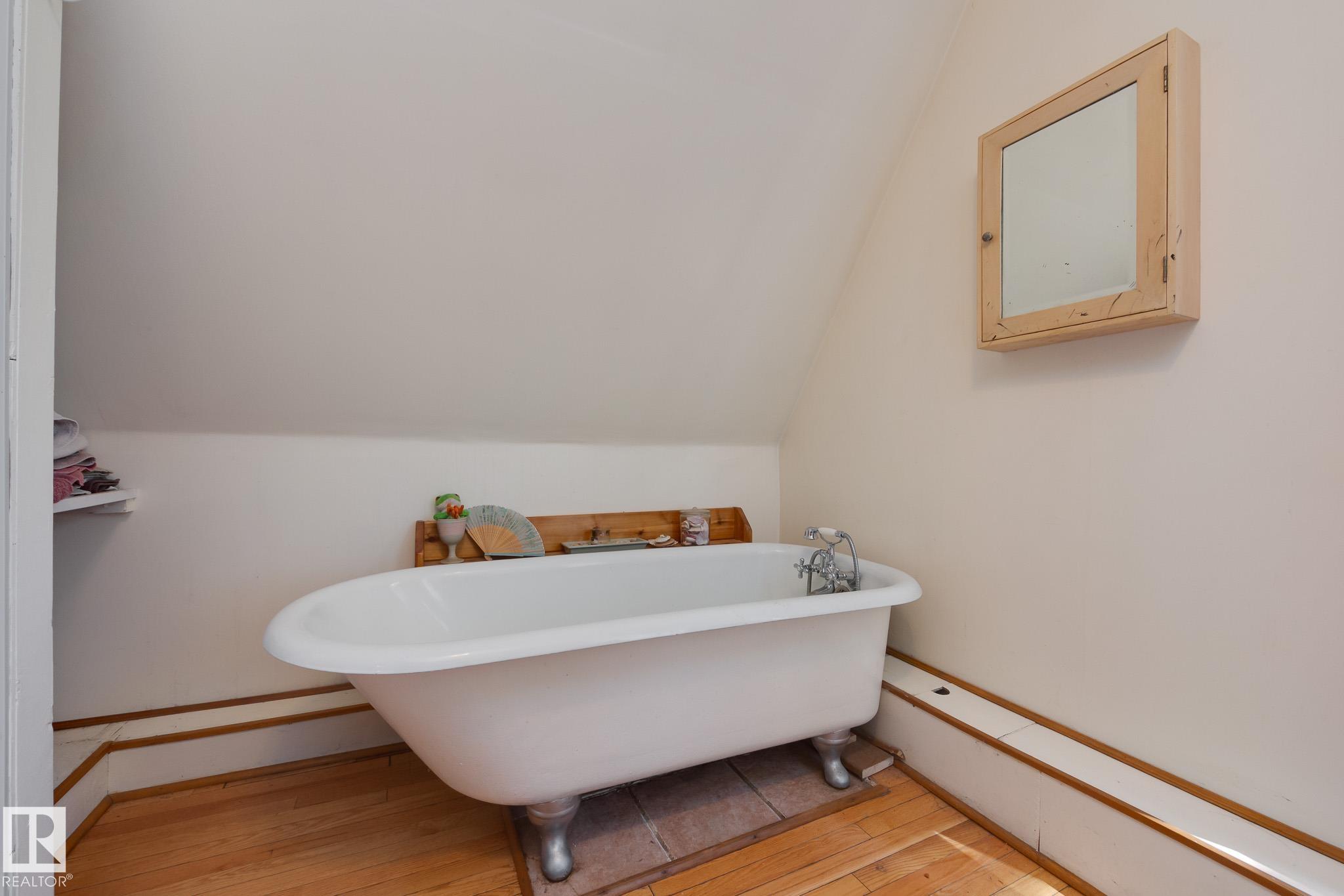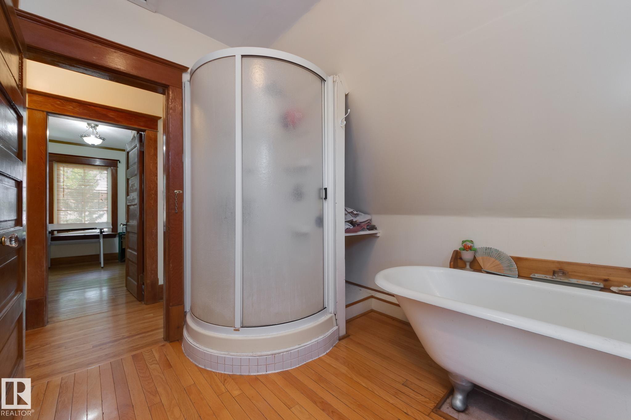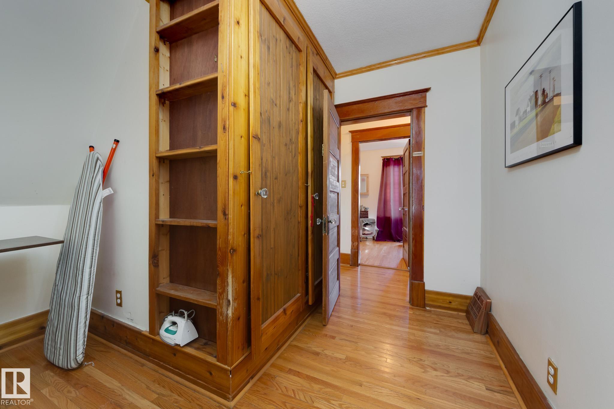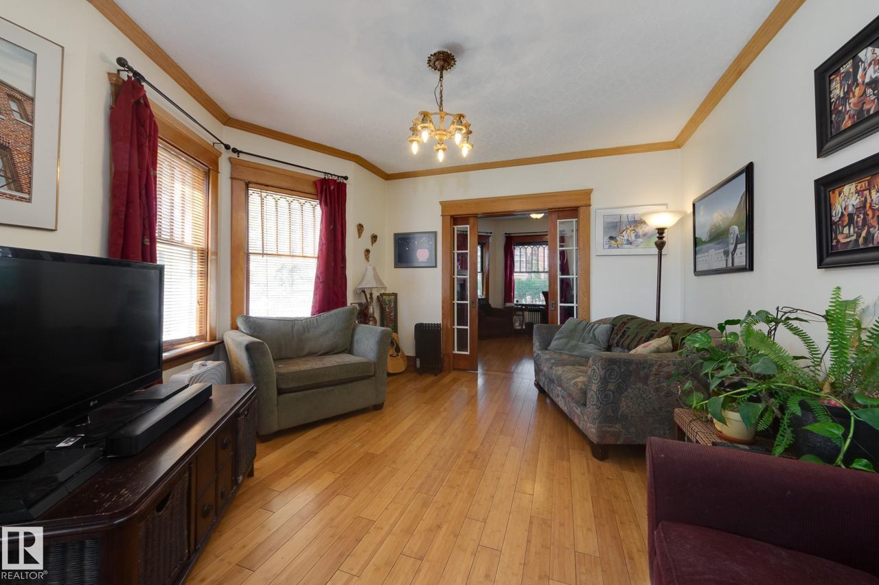 "The Grant McConachie House" a rare and historically iconic 105 oyear old Edmonton property was built in old Dutch styling. Wonderfully preserved- featuring rich Douglas fir woodwork, copper plated heating vents, French doors, beautiful bay windows, clawfoot bathtub, hardwood flooring throughout. Upgrades include NEW Furnace & HWT(2025), kitchen cabinetry, dishwasher, electrical, plumbing, weeping tile, low-E argon casement windows upstairs, exterior doors & locks, heating & vents, newer roof over veranda, shower added to main bath & plumbing upstairs, copper line, period correct steel & chrome faucets, beautiful gas fireplace (oak & tile) heated garage built 1998 (oversized trusses matched to scale with house). Situated on a large 580 square metre lot (50x125) the mature landscaping draws you to enjoy the covered front porch & the delightful spacious covered deck just off the kitchen. Fabulous lot for development down the road or enjoy this treasure for many years to come!