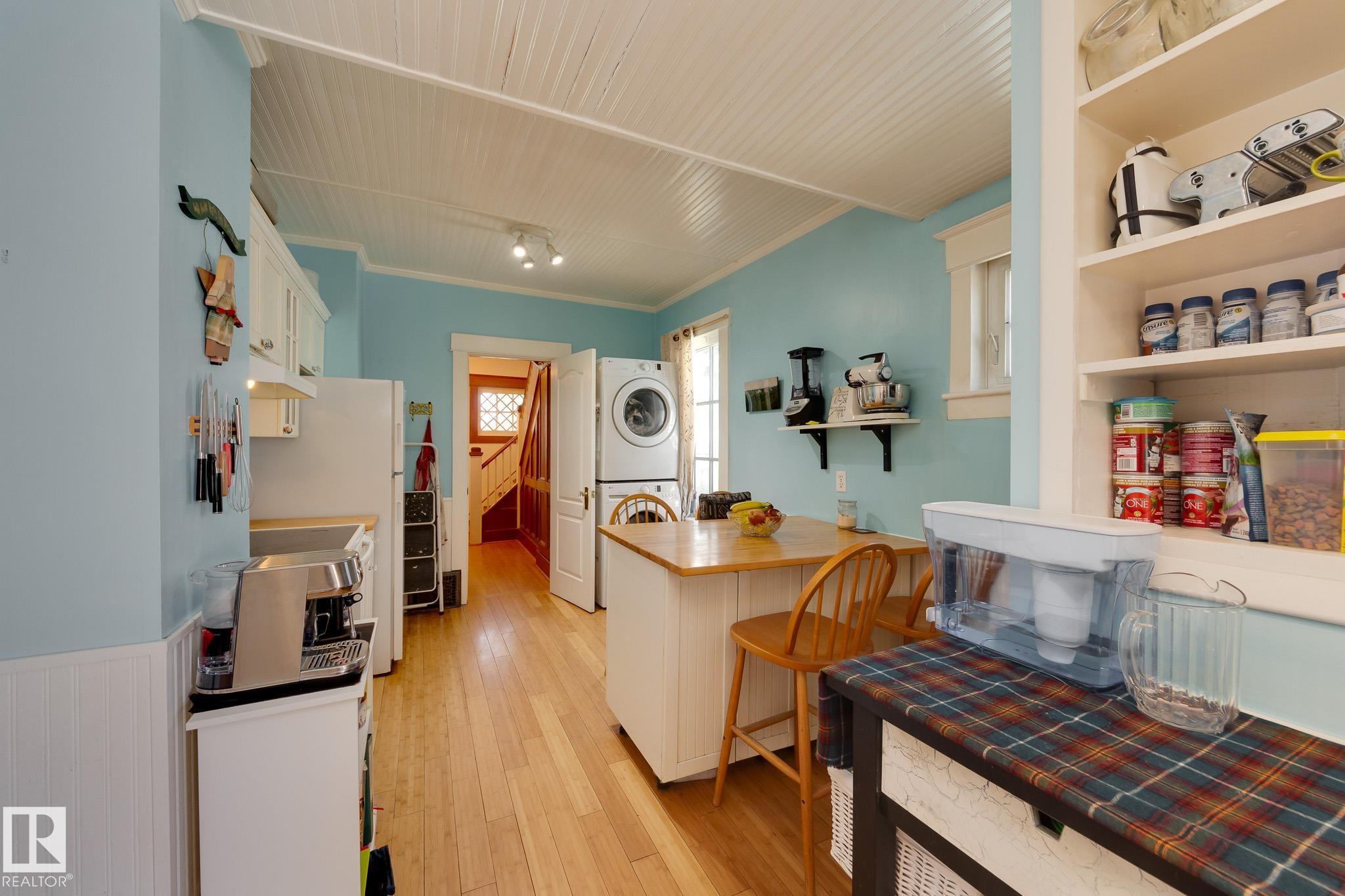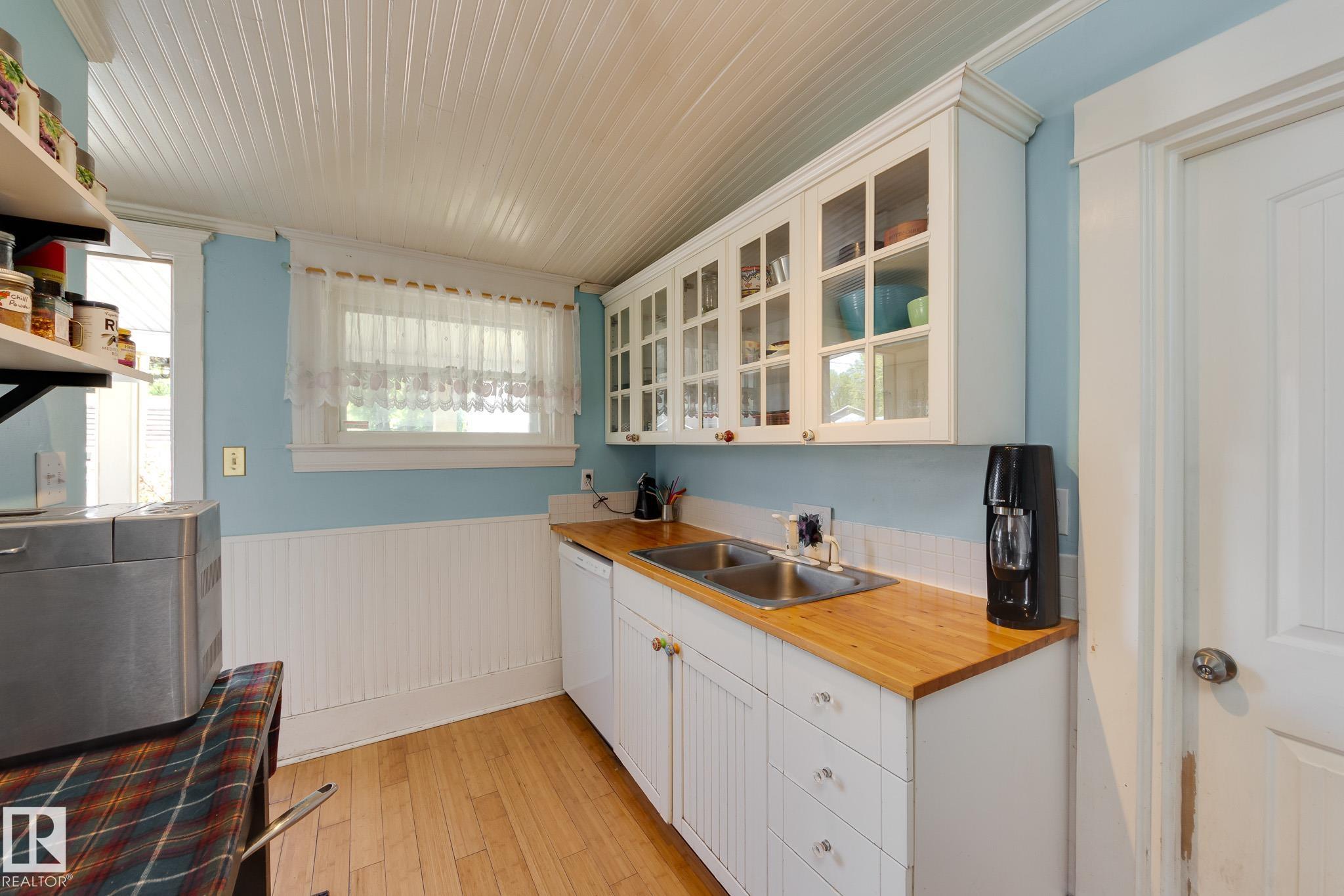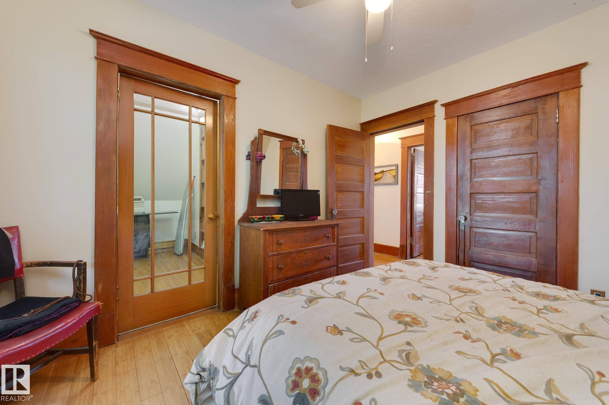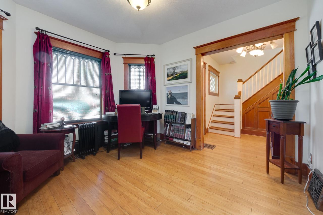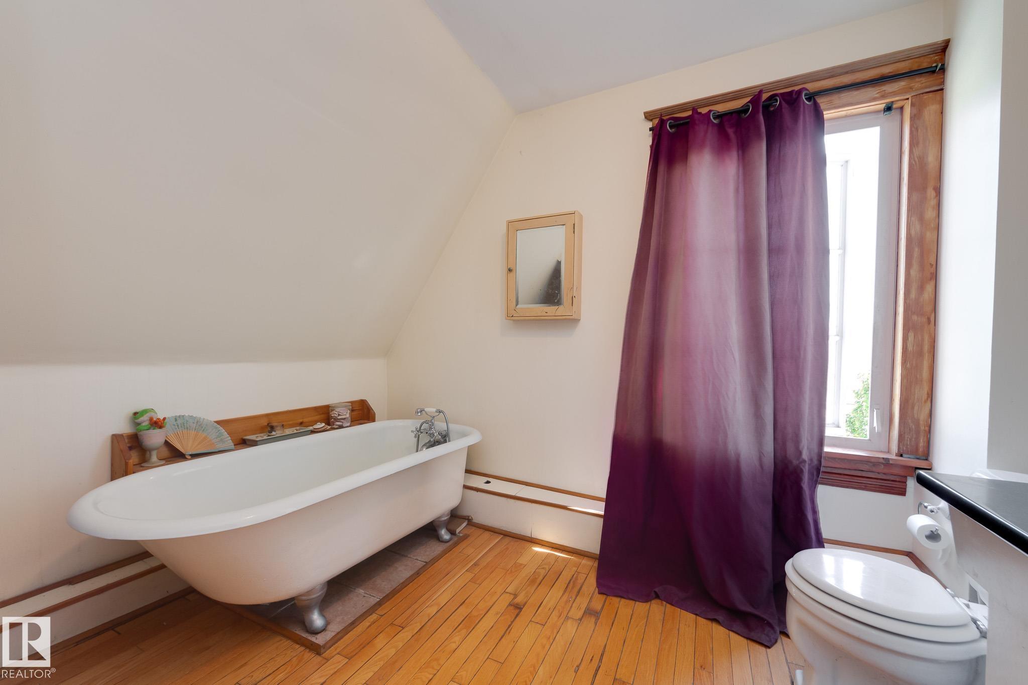 "The Grant McConachie House" a rare and historically iconic 105 oyear old Edmonton property was built in old Dutch styling. Wonderfully preserved- featuring rich Douglas fir woodwork, copper plated heating vents, French doors, beautiful bay windows, clawfoot bathtub, hardwood flooring throughout. Upgrades include NEW Furnace & HWT(2025), kitchen cabinetry, dishwasher, electrical, plumbing, weeping tile, low-E argon casement windows upstairs, exterior doors & locks, heating & vents, newer roof over veranda, shower added to main bath & plumbing upstairs, copper line, period correct steel & chrome faucets, beautiful gas fireplace (oak & tile) heated garage built 1998 (oversized trusses matched to scale with house). Situated on a large 580 square metre lot (50x125) the mature landscaping draws you to enjoy the covered front porch & the delightful spacious covered deck just off the kitchen. Fabulous lot for development down the road or enjoy this treasure for many years to come!