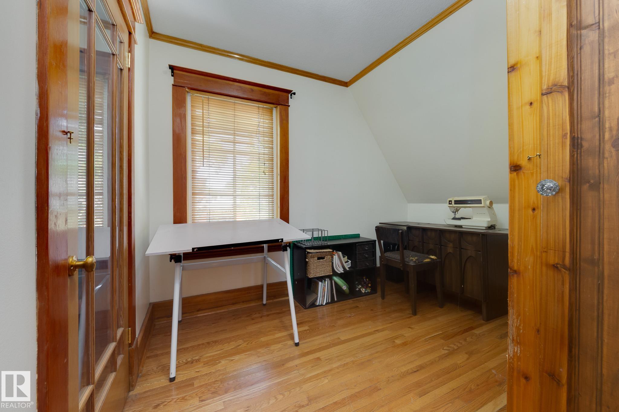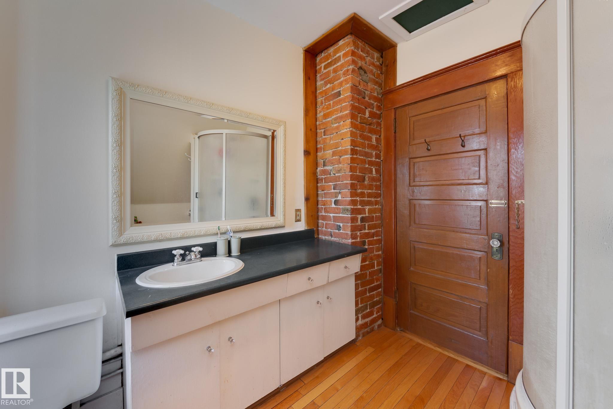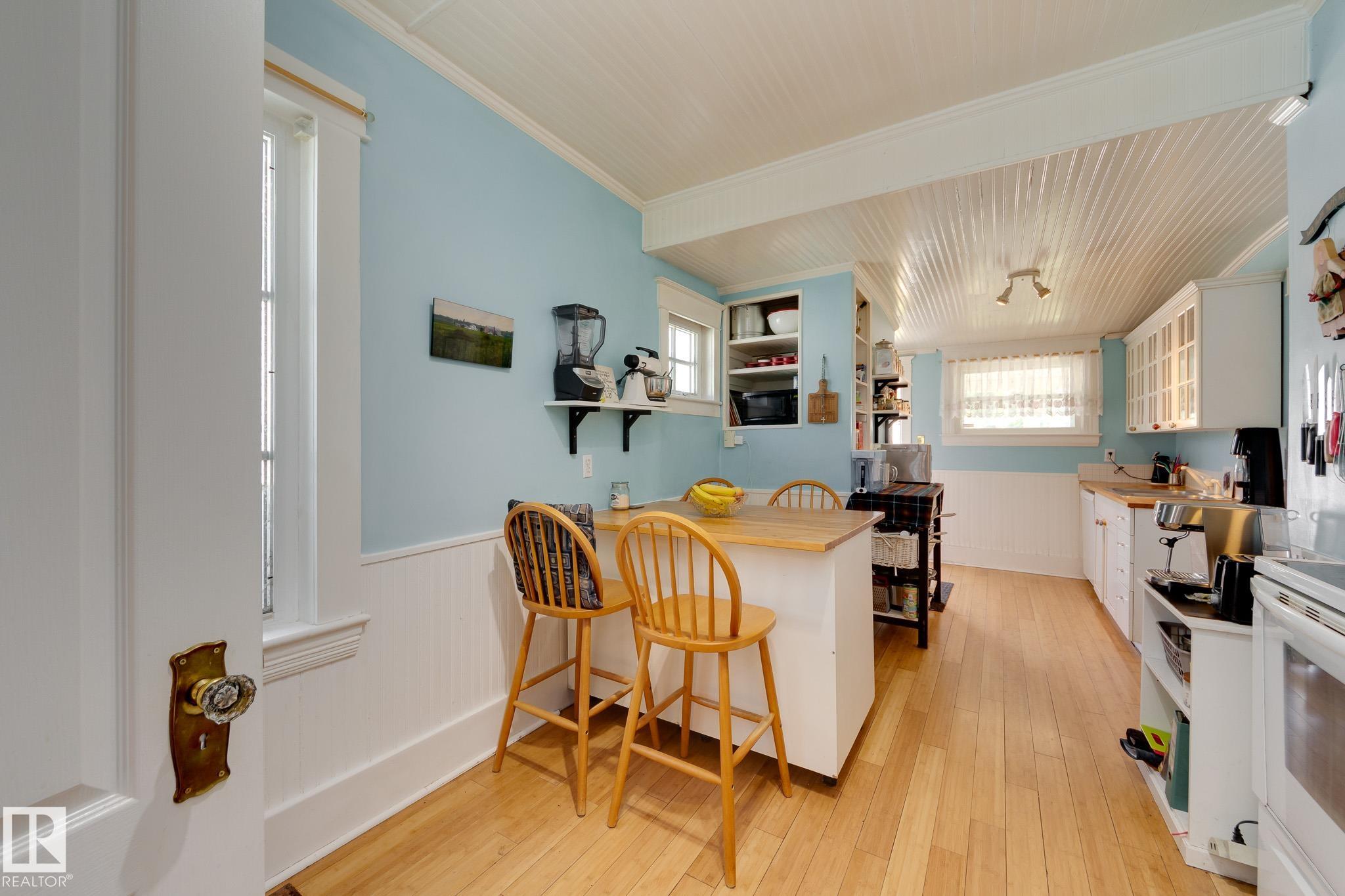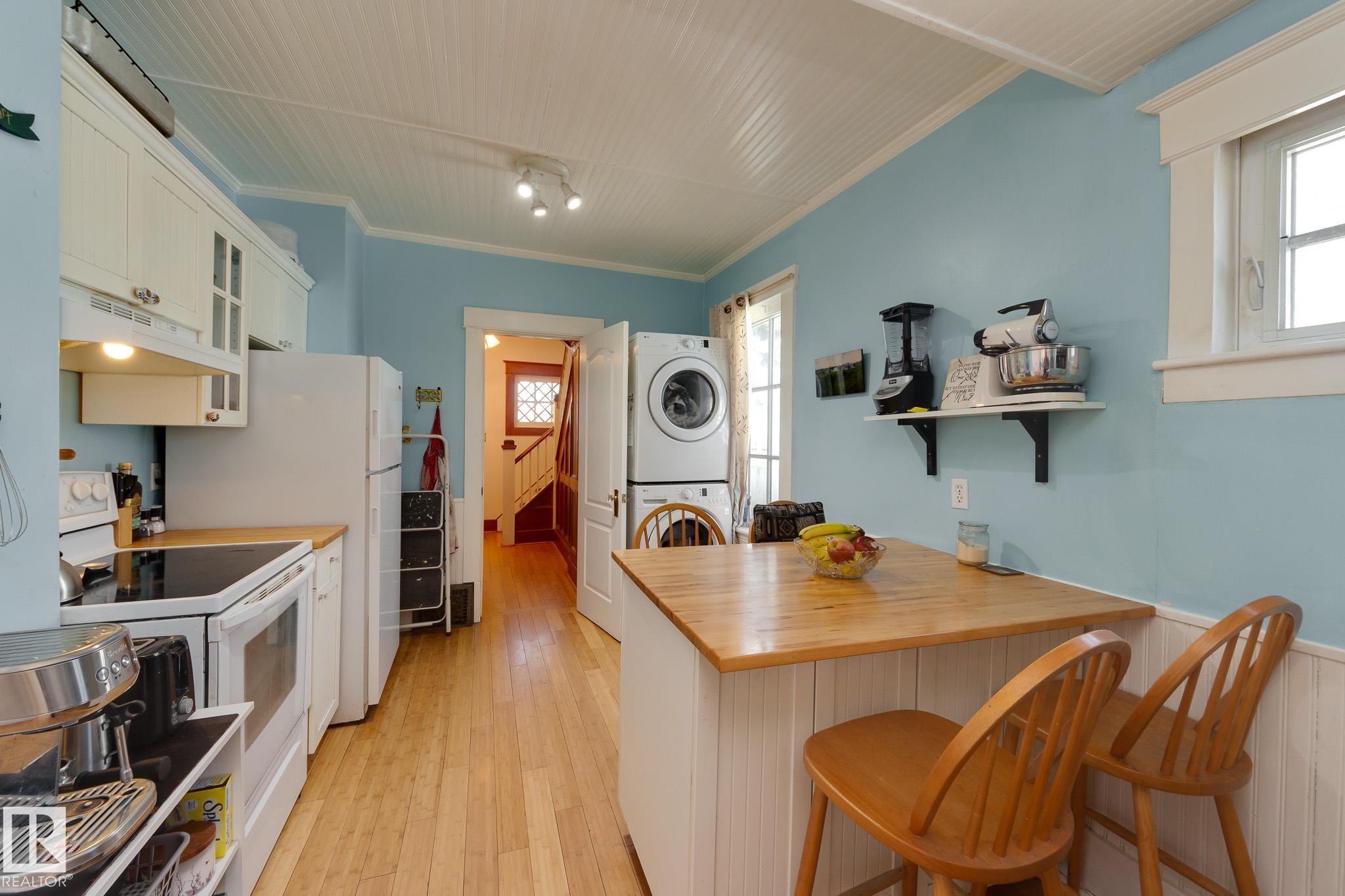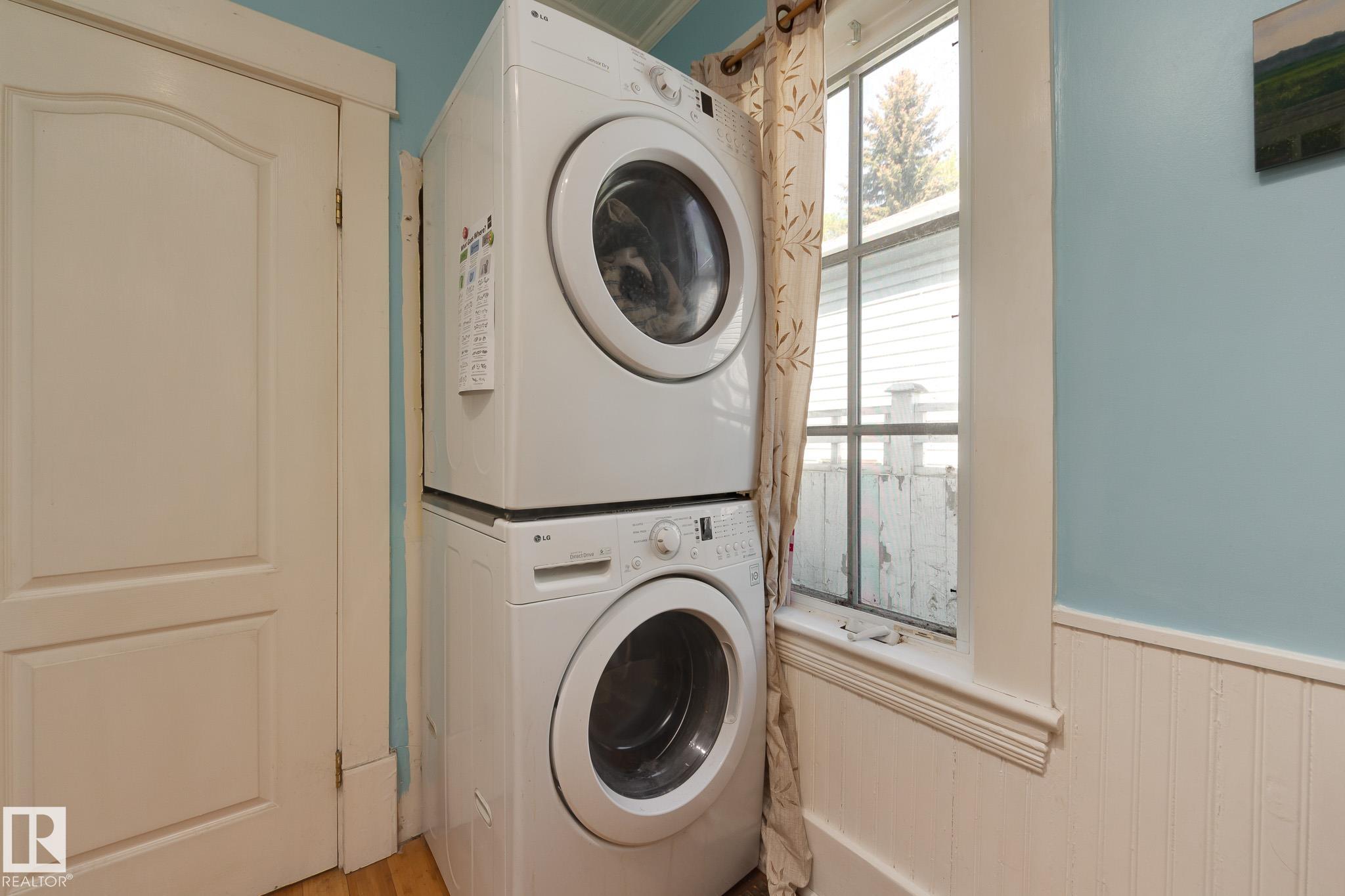 "The Grant McConachie House" a rare and historically iconic 105 oyear old Edmonton property was built in old Dutch styling. Wonderfully preserved- featuring rich Douglas fir woodwork, copper plated heating vents, French doors, beautiful bay windows, clawfoot bathtub, hardwood flooring throughout. Upgrades include NEW Furnace & HWT(2025), kitchen cabinetry, dishwasher, electrical, plumbing, weeping tile, low-E argon casement windows upstairs, exterior doors & locks, heating & vents, newer roof over veranda, shower added to main bath & plumbing upstairs, copper line, period correct steel & chrome faucets, beautiful gas fireplace (oak & tile) heated garage built 1998 (oversized trusses matched to scale with house). Situated on a large 580 square metre lot (50x125) the mature landscaping draws you to enjoy the covered front porch & the delightful spacious covered deck just off the kitchen. Fabulous lot for development down the road or enjoy this treasure for many years to come!