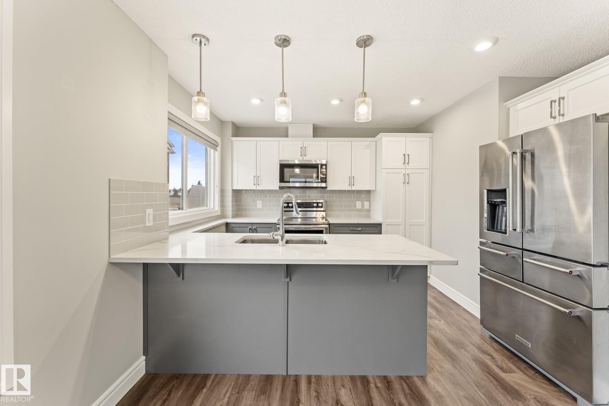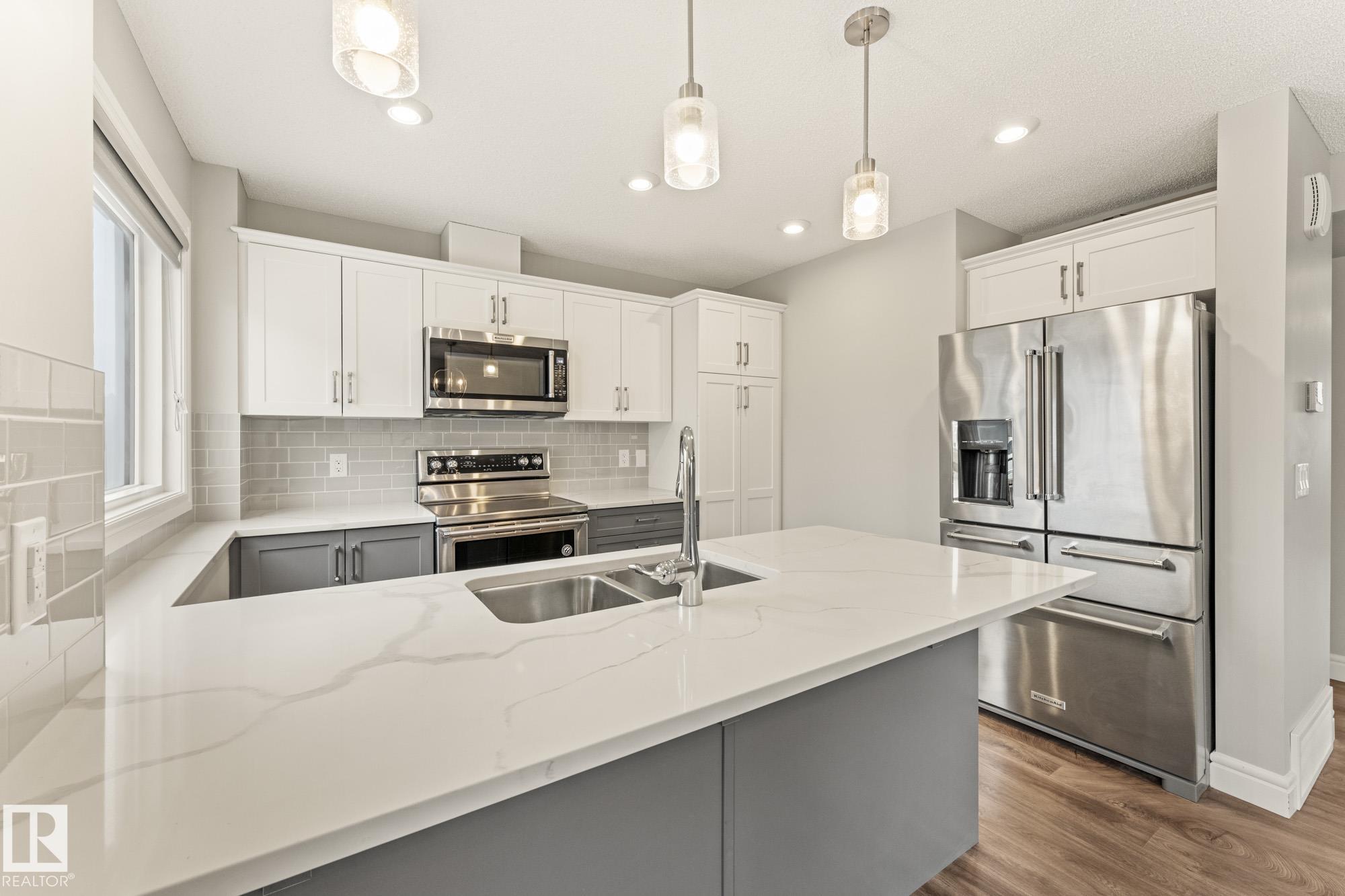 **BEST LOCATION RIVERBEND AREA**Welcome to this gorgeous Showhome like three-storey home Corner Unit with double attached garage in desirable neighbourhood of Bulyea Heights! This home features high-end finishings, Large windows on all 3 sides of property, Upgraded lighting package, Upgraded Quartz countertops **throughout** and ample amounts of natural light. The living room is spacious and perfect to entertain! Large balcony w natural gas BBQ line. The kitchen is over the top with white quartz countertops, Large Island, two tone cabinets & over $10,000 KitchenAid Stainless Steel Appliance Package. Primary bedroom on upper level features walk-in closet and 3-piece ensuite. Upper level also features two additional good sized bedrooms, 4-piece Bath and main bathroom with quartz, and laundry! Custom High quality blinds have been installed. Property is in 10/10 Condition
